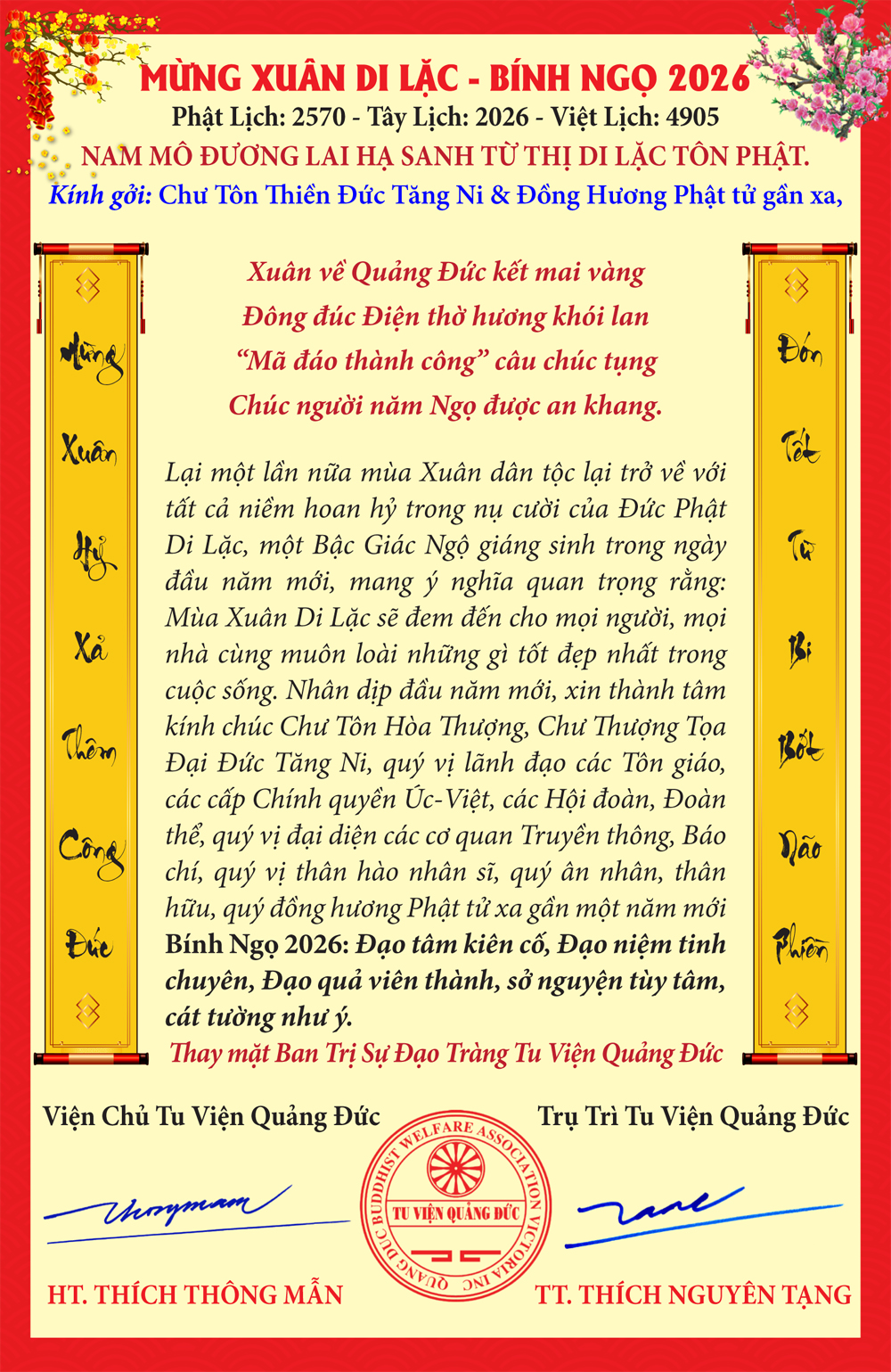 Thiệp Xuân Bính Ngọ 2026 của Tu Viện Quảng Đức, Melbourne, Australia