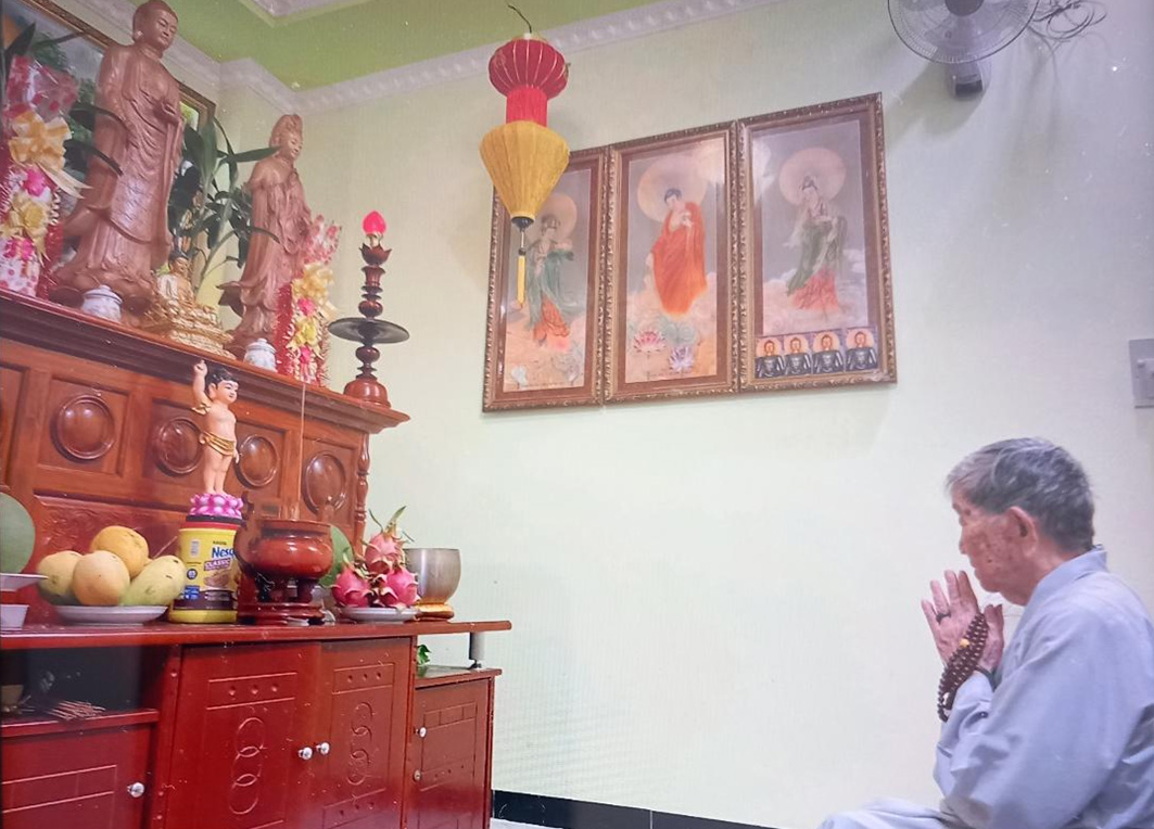 Mẹ ngồi yên niệm Phật