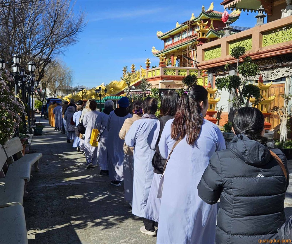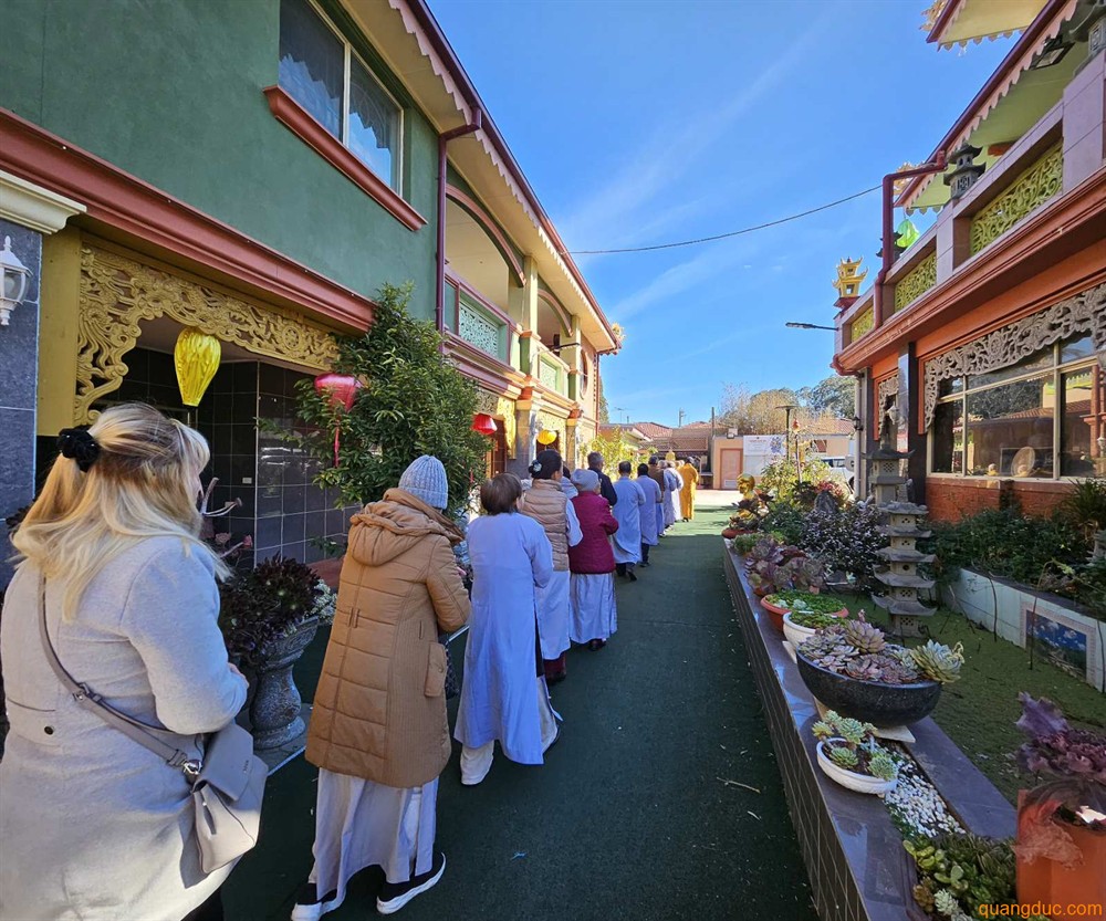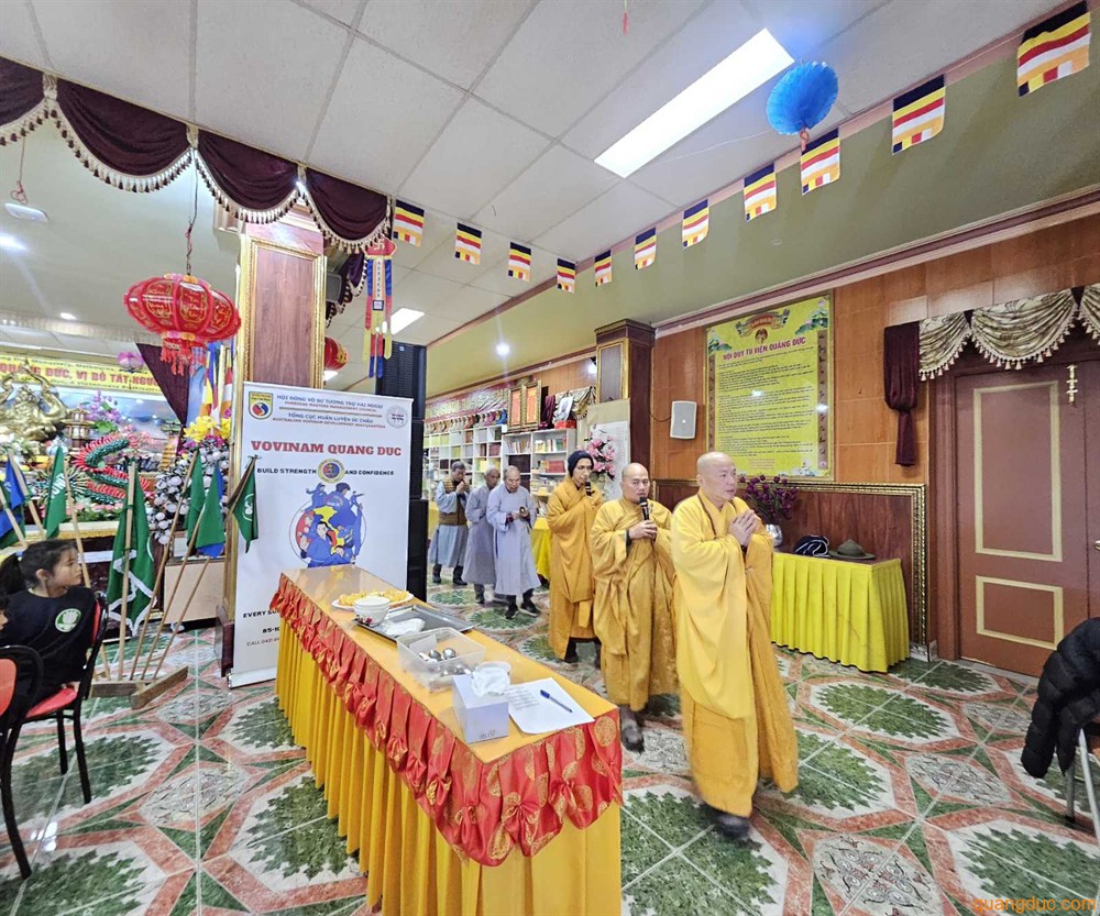 Quang Duc Monastery Lunar New Year Program 2026 ✻ Sunday, 08 February 2026: (21st day of the 12th Lunar Month) 11:00 am: Year-End Thanksgiving Ceremony and Raising of the New Year Pole; Prayers for Peace and Well-being; Offering to Ancestral Spirits. Marigold flowers and pure vegetarian food will be available at the Monastery. (For vegetarian food orders, please contact: Ms. Nguyên Như – 0451 603 248; Ms. Quảng Hạnh – 0431 179 568) ✻ Monday, 16 February 2026: (29th day of the Lunar Year) 11:00 am: Midday Offering to the Buddha; Offering to Enlightened Spirits and Ancestors. 5:00 pm: Offering Ceremony for Wandering Spirits. 8:00 pm: Year-End Repentance Ceremony. 9:30 pm: Lunar New Year Cultural Performance. 11:00 pm: New Year’s Eve Ceremony – Welcoming the Year of the Horse 2026. ✻ Tuesday, 17 February 2026: (1st Day of the Lunar New Year) 11:00 am: Midday Offering to the Buddha; Prayers for National Peace and Prosperity; Celebration of Maitreya Buddha’s Day; Devotees r