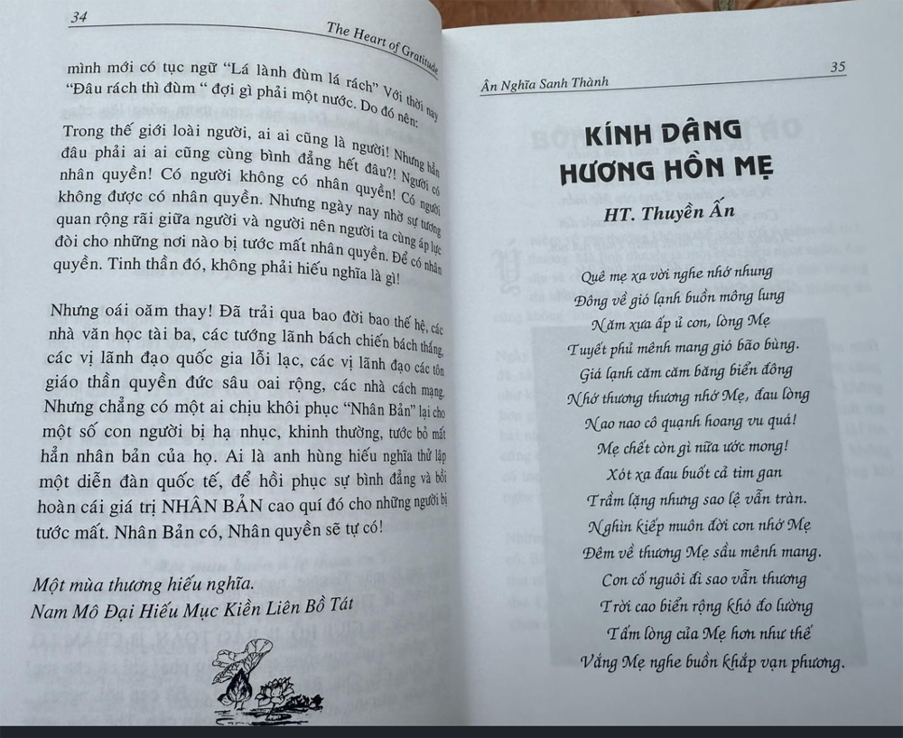 Chỉ là cái cảnh “lá vàng xa cành mẹ”, vậy mà nó lại gây cho con người một cảm giác chạnh lòng! Khi đôi tay nâng đọc quyển Hiếu Kinh, Báo Phụ Mẫu Trọng Ân, Vu Lan Bồn Kinh... Khi nghe Ngài A Nan hỏi Phật: “Bạch Đức Thế Tôn! Khi Phật Niết bàn rồi chúng con biết thờ ai?