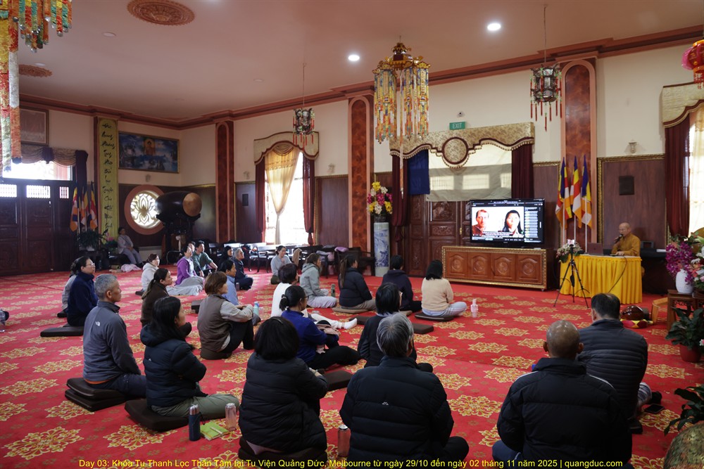 - Day 03: Khóa Tu Thanh Lọc Thân Tâm năm 2025 do TT Thích Tâm Thành hướng dẫn tại Tu Viện Quảng Đức, Melbourne từ ngày 29/10 đến ngày 02 tháng 11 năm 2025
