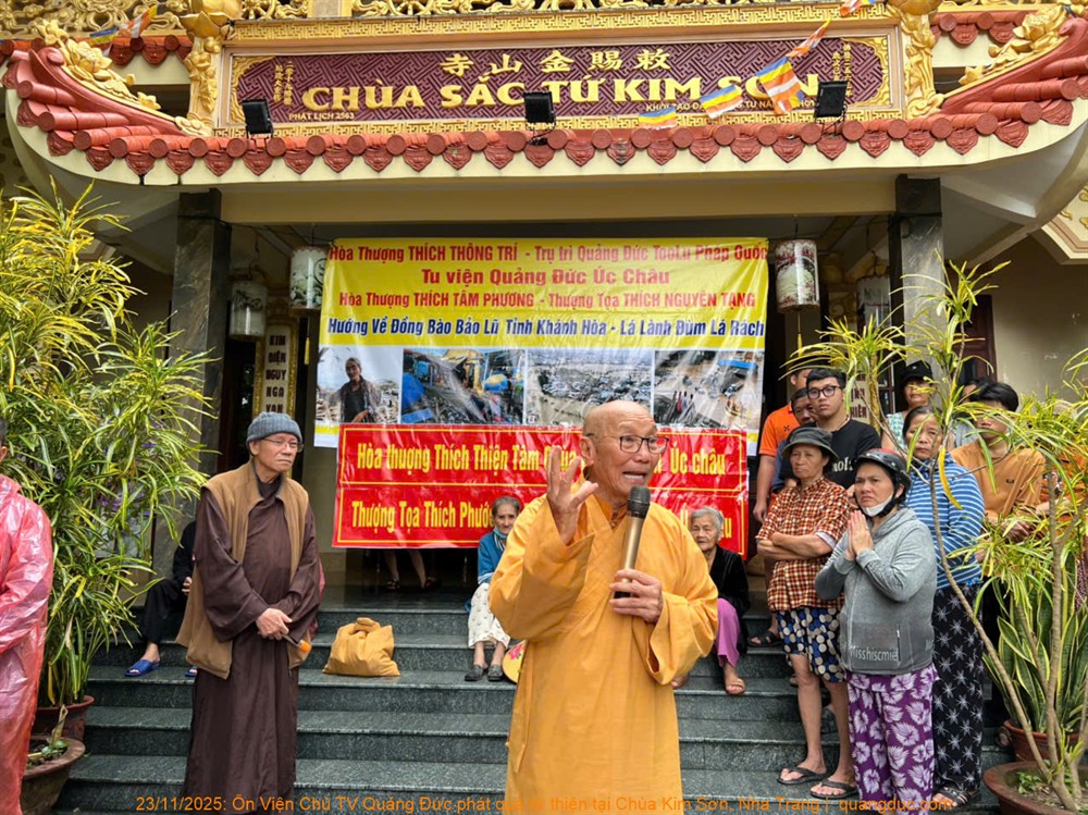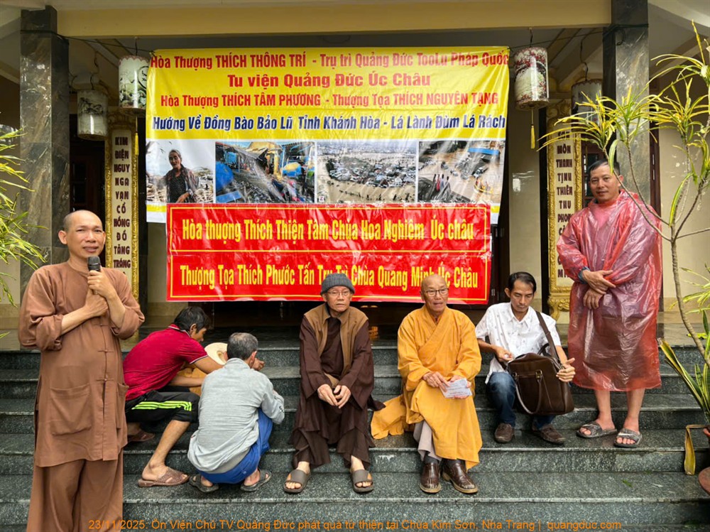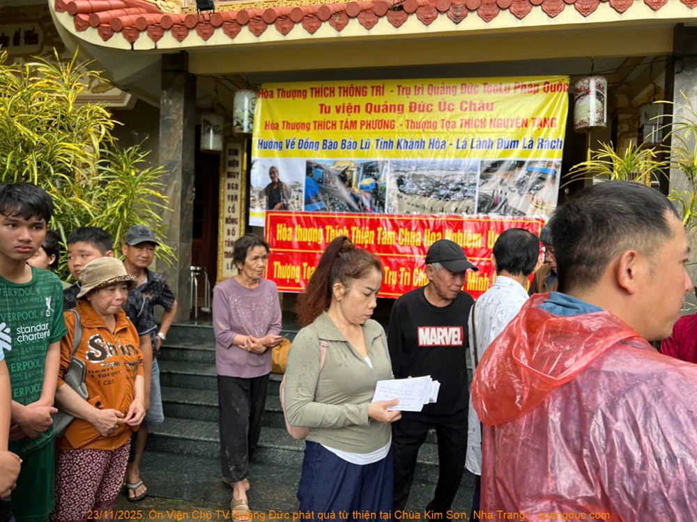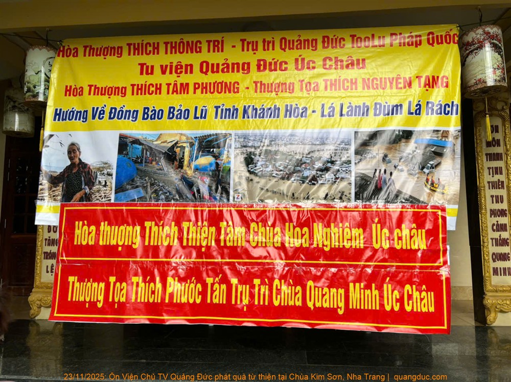 Theo kế hoạch, trong hai ngày 24–25/11/2025, dưới sự hướng dẫn của nhị vị Hòa Thượng Thích Thông Mẫn và Hòa Thượng Thích Thiện Tâm (trụ trì Chùa Hoa Nghiêm, Melbourne – Úc Châu), Đoàn Cứu Trợ Từ Thiện Úc Châu sẽ tiếp tục trao gửi hơn 2.500 phần quà, với tổng giá trị gần 2 tỷ đồng Việt Nam, đến các gia đình đang đối mặt với mất mát và khó khăn sau đợt thiên tai kinh hoàng tại Nha Trang, Khánh Hòa.