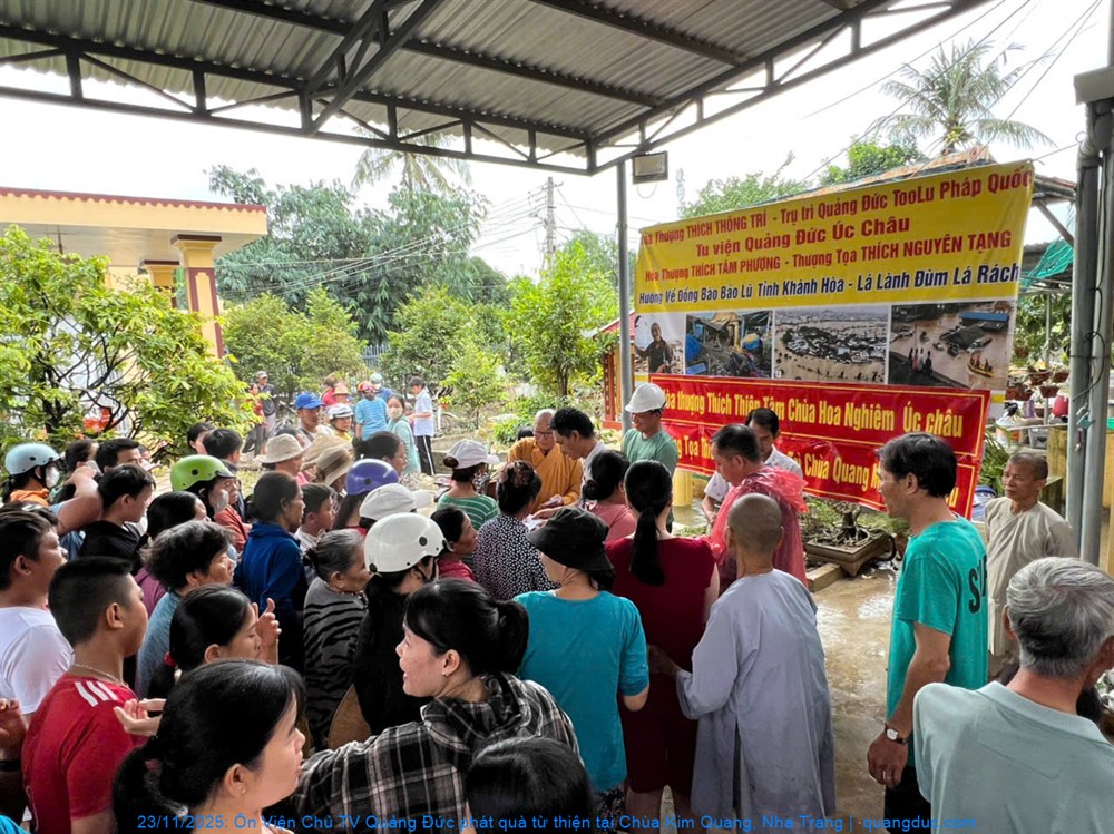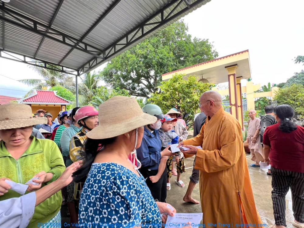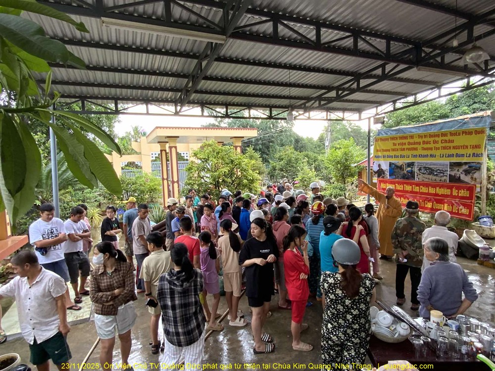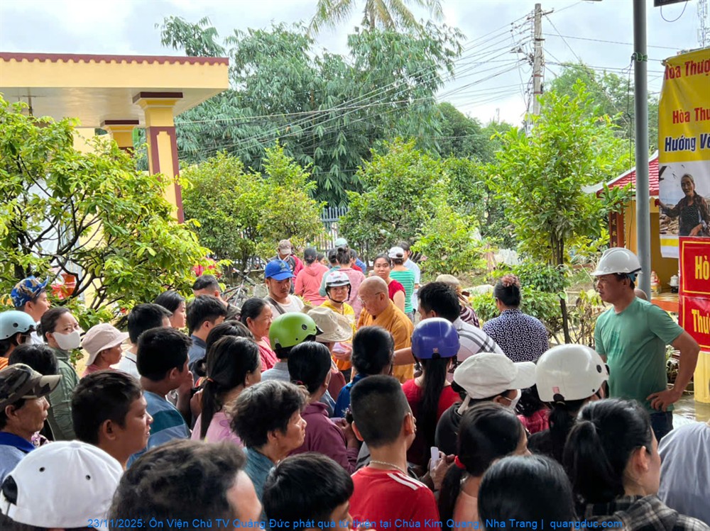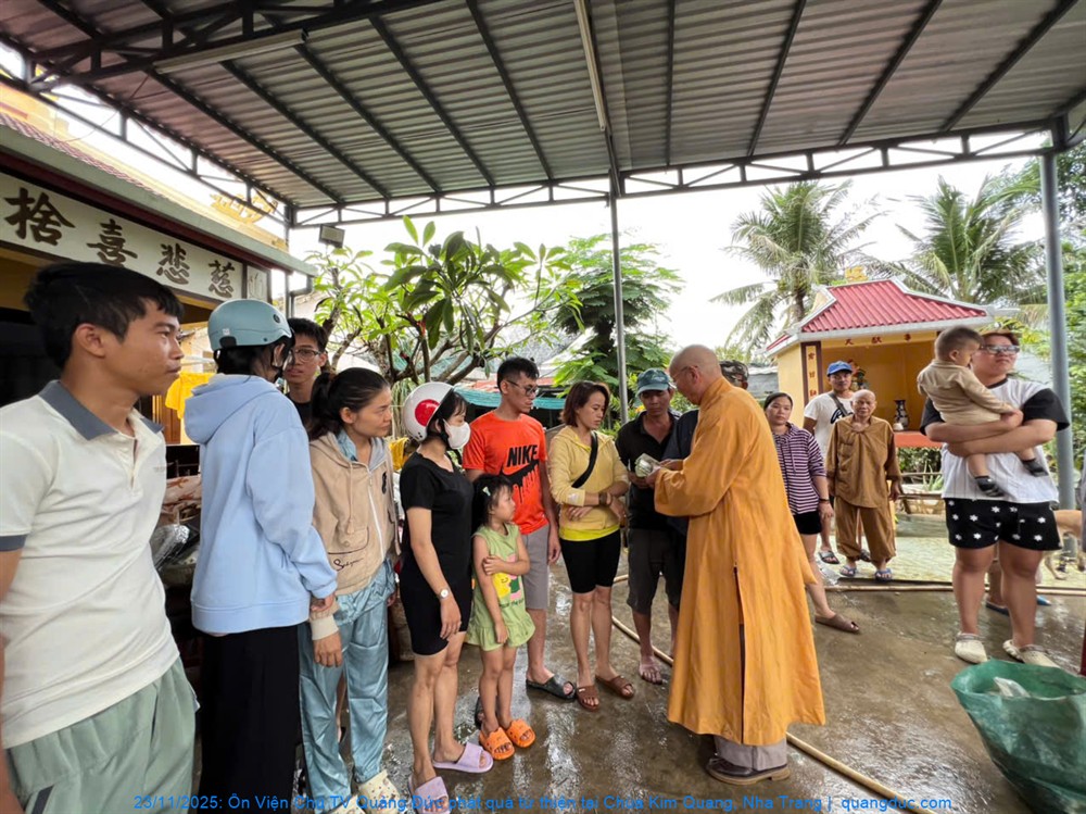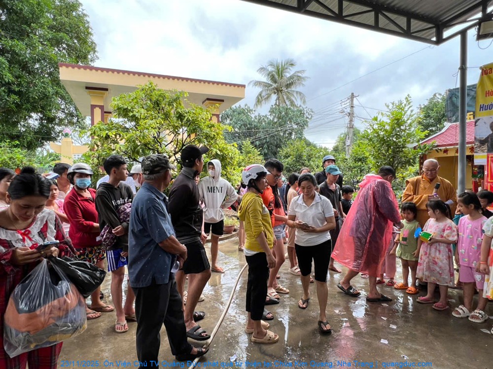Sáng nay Chủ Nhật 23/11/2025, tại Chùa Kim Quang, thôn Thủy Tú, Nha Trang, dưới sự hỗ trợ của Ni Sư Thích Nữ Diệu Hoàng – trụ trì bổn tự, cùng chính quyền địa phương, Đoàn Cứu Trợ đã trao tặng 300 phần quà đến bà con. Những phần quà tuy giản dị nhưng thiết thực, góp phần xoa dịu phần nào những khó khăn trước mắt của các hộ dân bị thiệt hại.