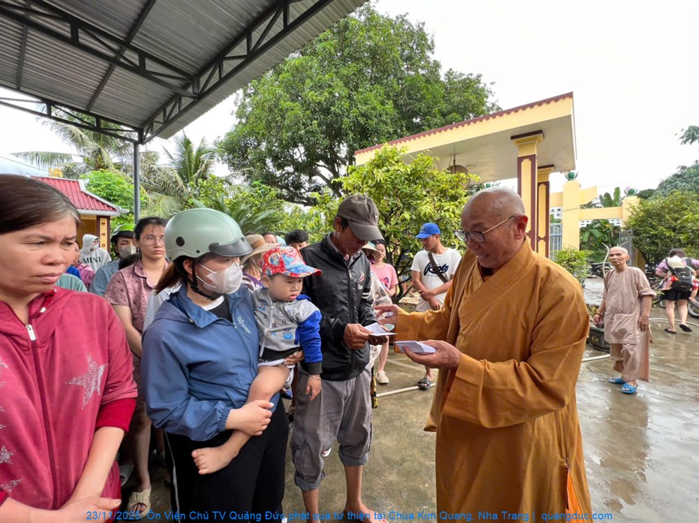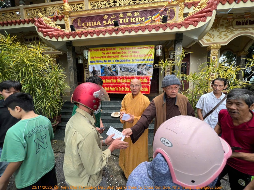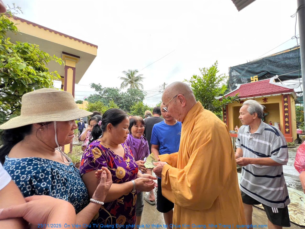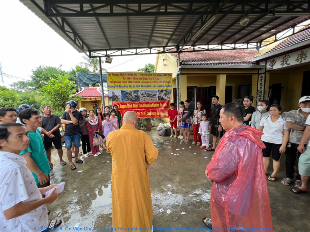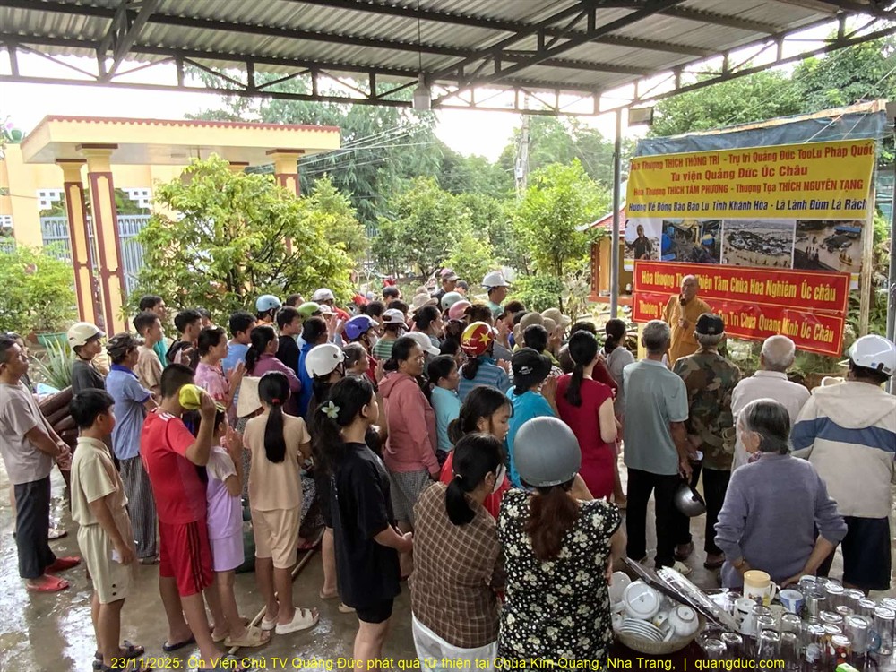 Sáng nay Chủ Nhật 23/11/2025, tại Chùa Kim Quang, thôn Thủy Tú, Nha Trang, dưới sự hỗ trợ của Ni Sư Thích Nữ Diệu Hoàng – trụ trì bổn tự, cùng chính quyền địa phương, Đoàn Cứu Trợ đã trao tặng 300 phần quà đến bà con. Những phần quà tuy giản dị nhưng thiết thực, góp phần xoa dịu phần nào những khó khăn trước mắt của các hộ dân bị thiệt hại.