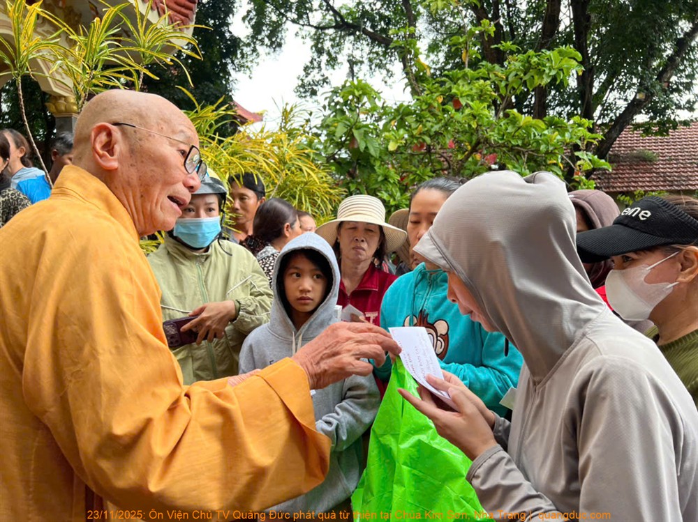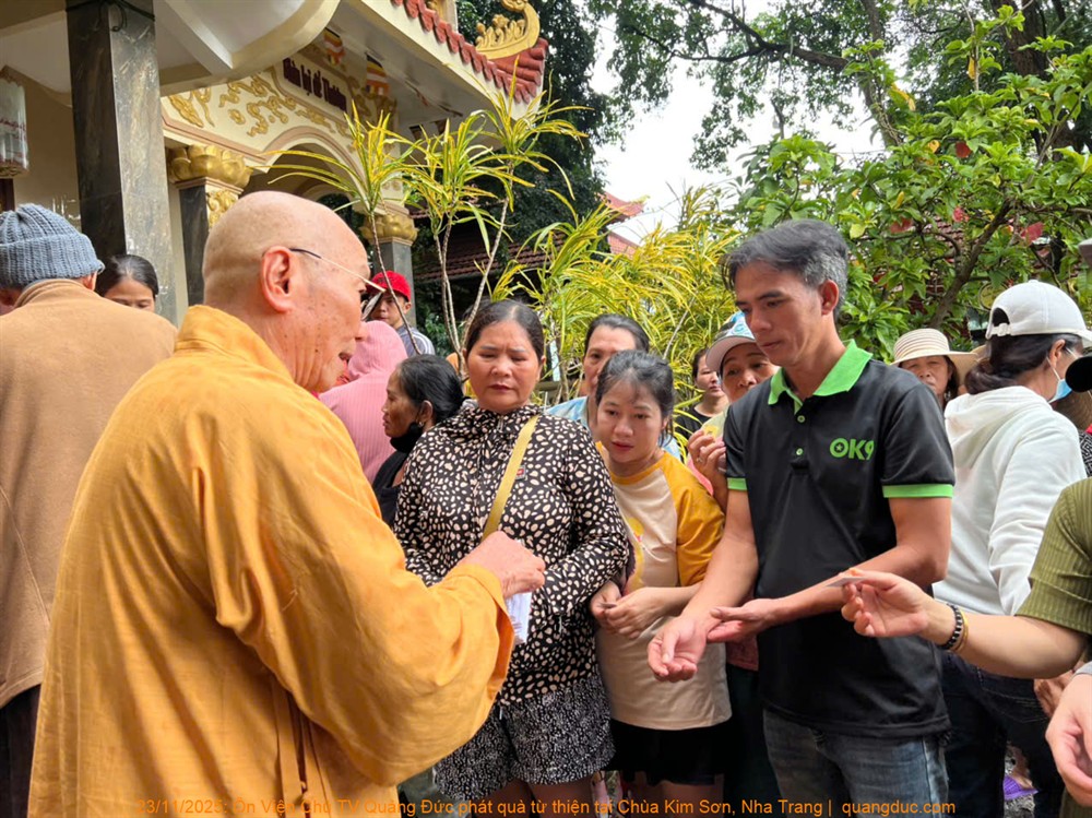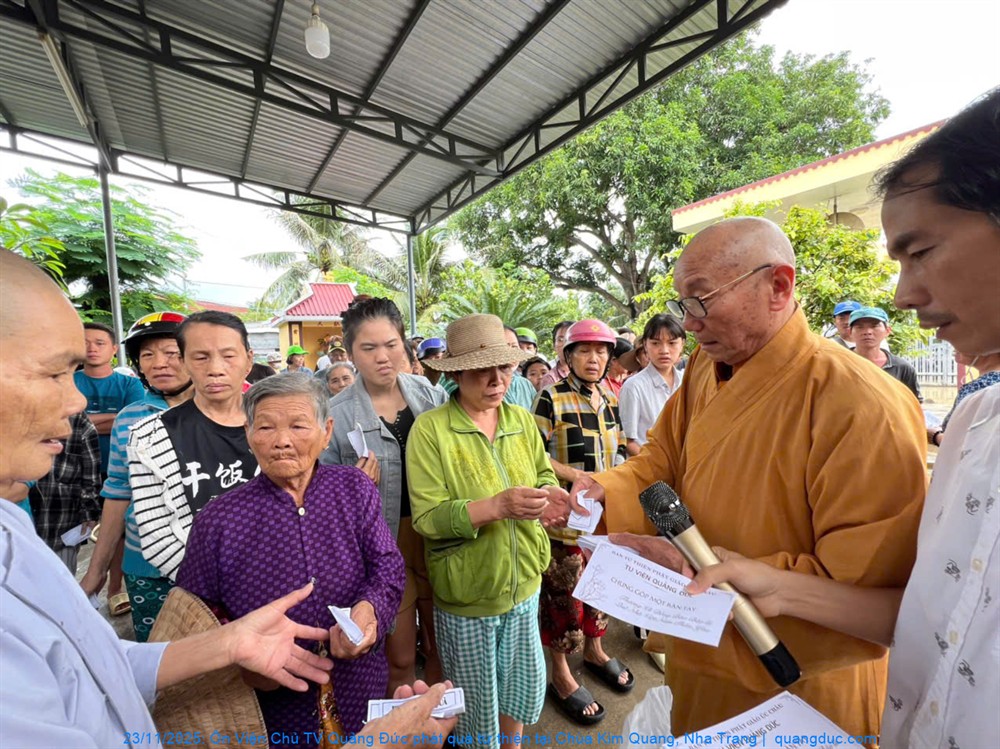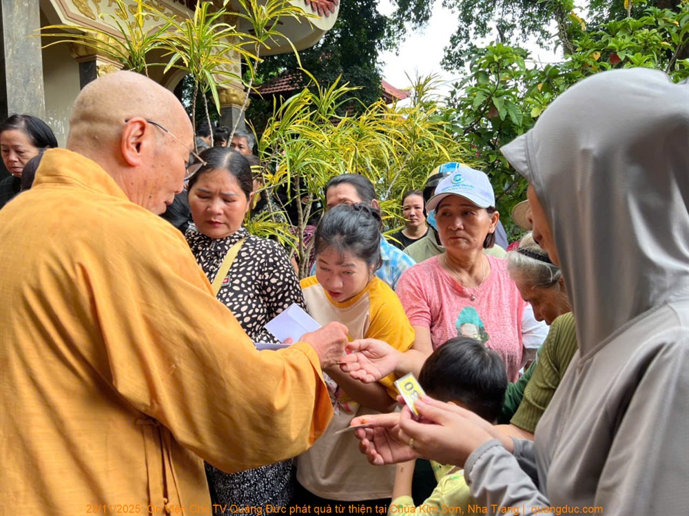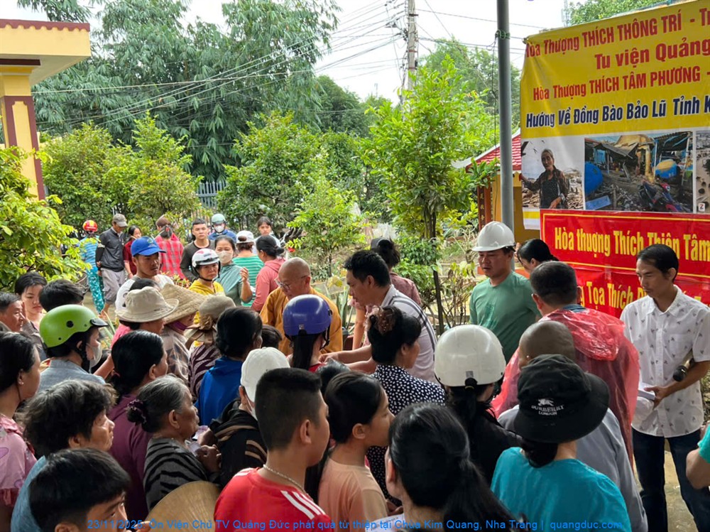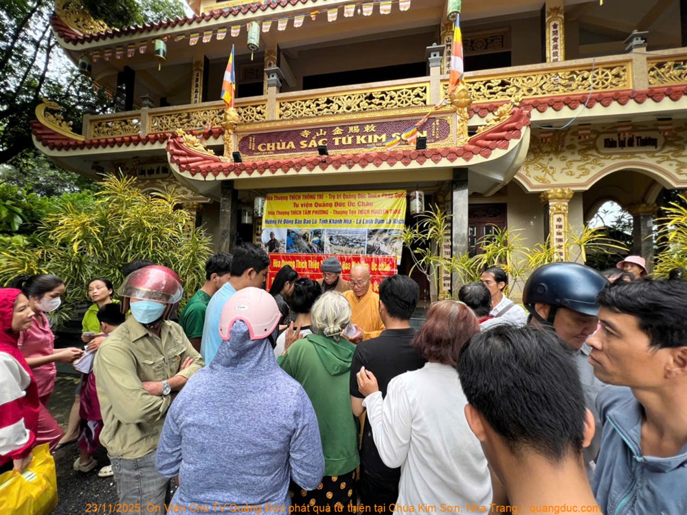 Sáng nay Chủ Nhật 23/11/2025, tại Chùa Kim Quang, thôn Thủy Tú, Nha Trang, dưới sự hỗ trợ của Ni Sư Thích Nữ Diệu Hoàng – trụ trì bổn tự, cùng chính quyền địa phương, Đoàn Cứu Trợ đã trao tặng 300 phần quà đến bà con. Những phần quà tuy giản dị nhưng thiết thực, góp phần xoa dịu phần nào những khó khăn trước mắt của các hộ dân bị thiệt hại.