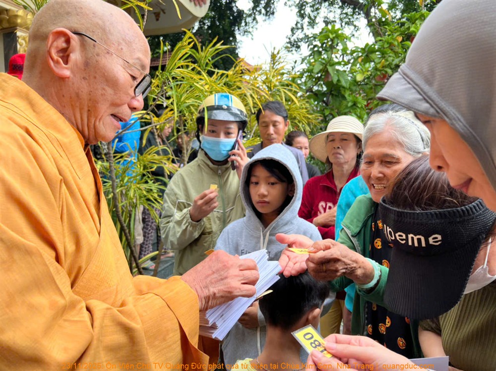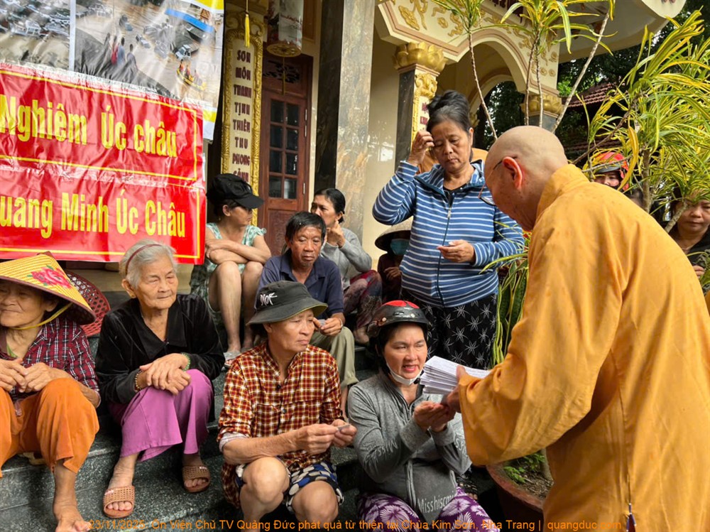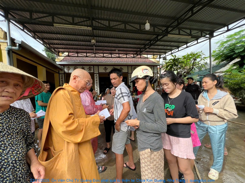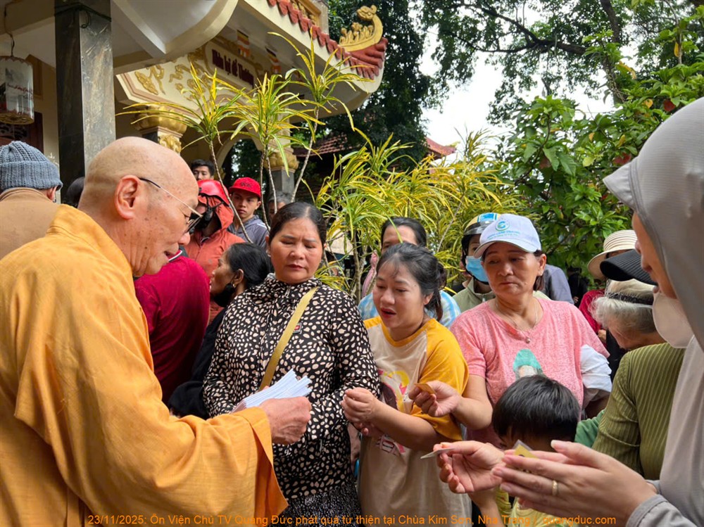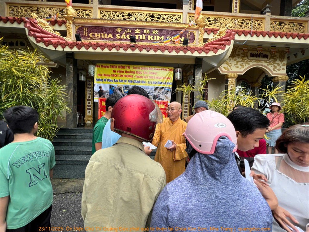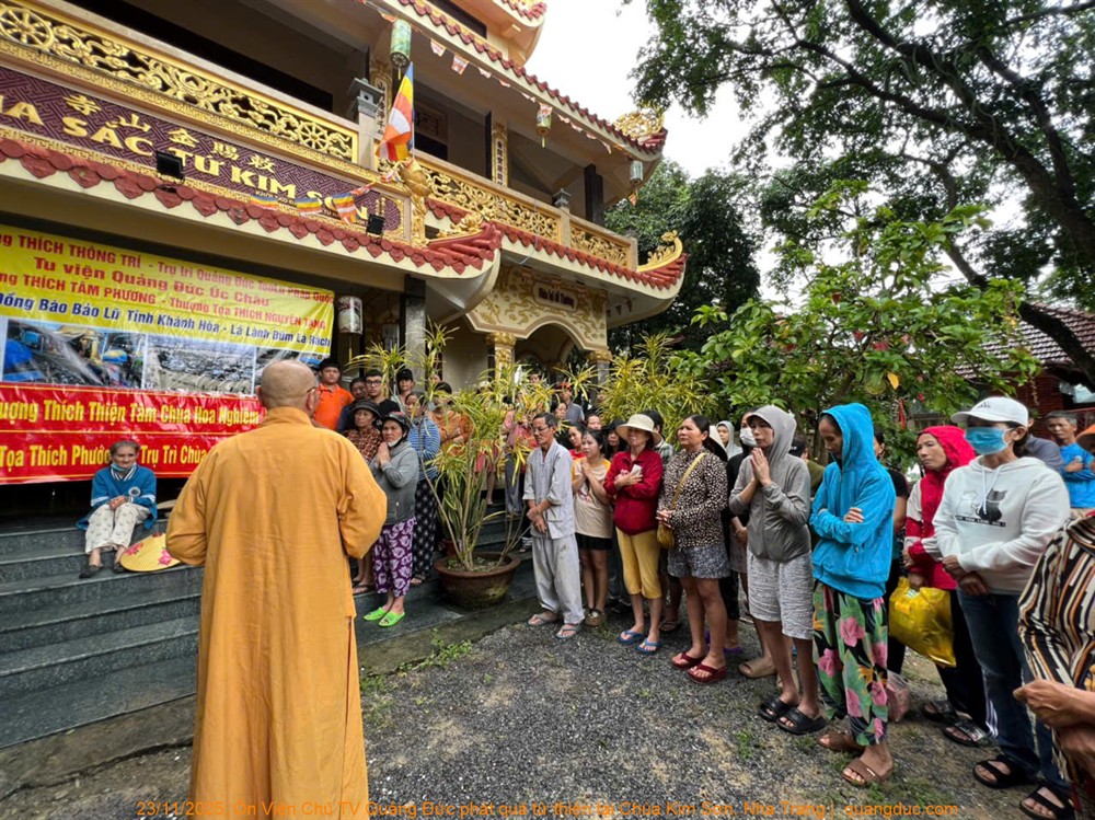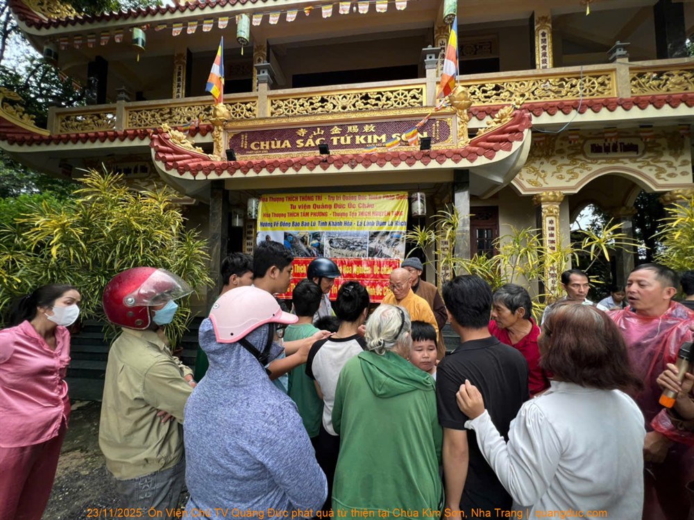 Ngay sau đó, Đoàn tiếp tục đến Chùa Sắc Tứ Kim Sơn, thôn Ngọc Hội, xã Vĩnh Ngọc (do Hòa Thượng Thích Nguyên Minh trụ trì) để trao thêm 300 phần quà đến đồng bào đang oằn mình vượt qua hậu quả nặng nề của bão lũ.