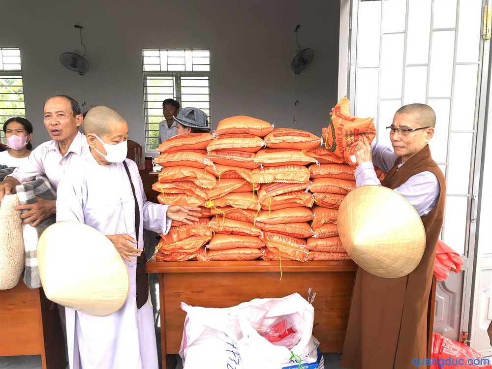 Những phần quà tuy không lớn nhưng chứa đựng tấm lòng của chư Ni và Phật tử gần xa, mong chia sẻ phần nào khó khăn trước mắt, giúp bà con sớm vượt qua mất mát, tái lập sinh hoạt đời sống bình thường.