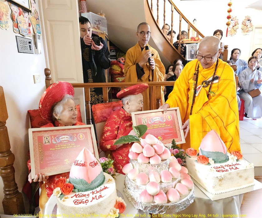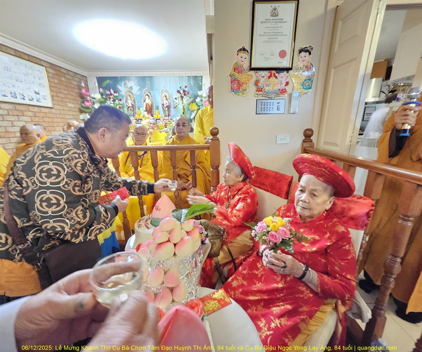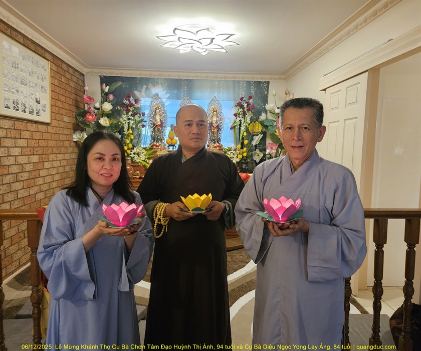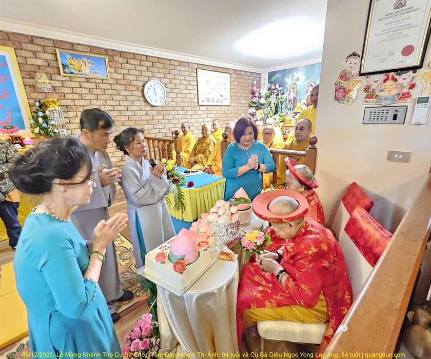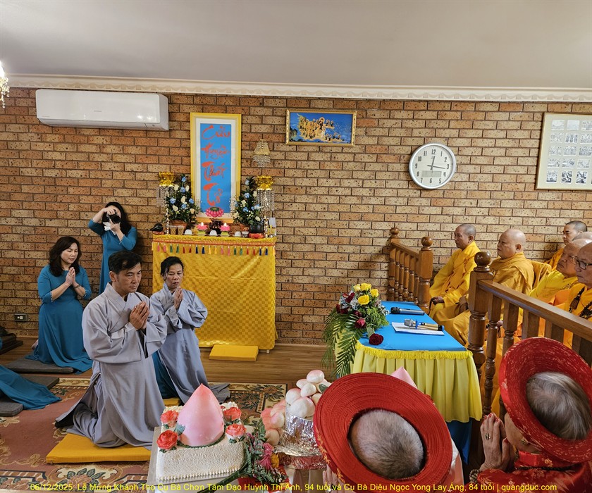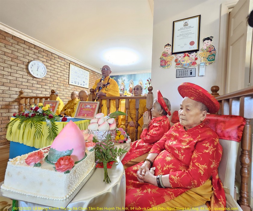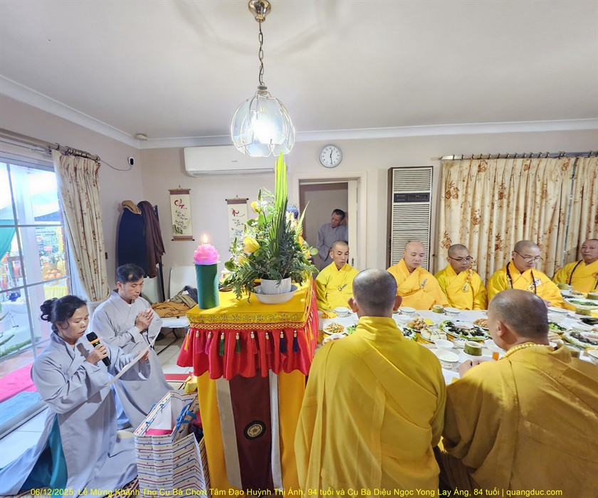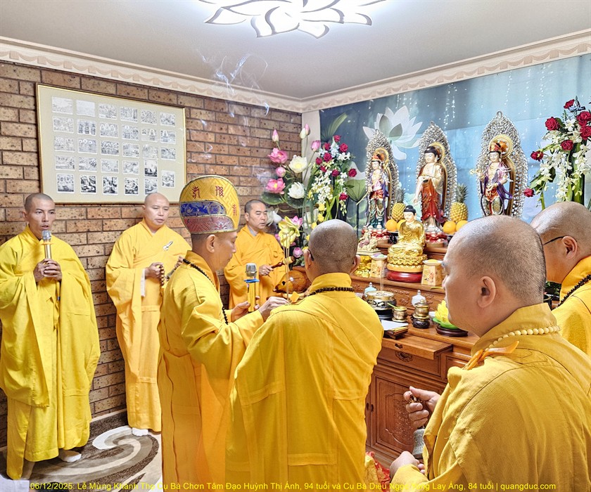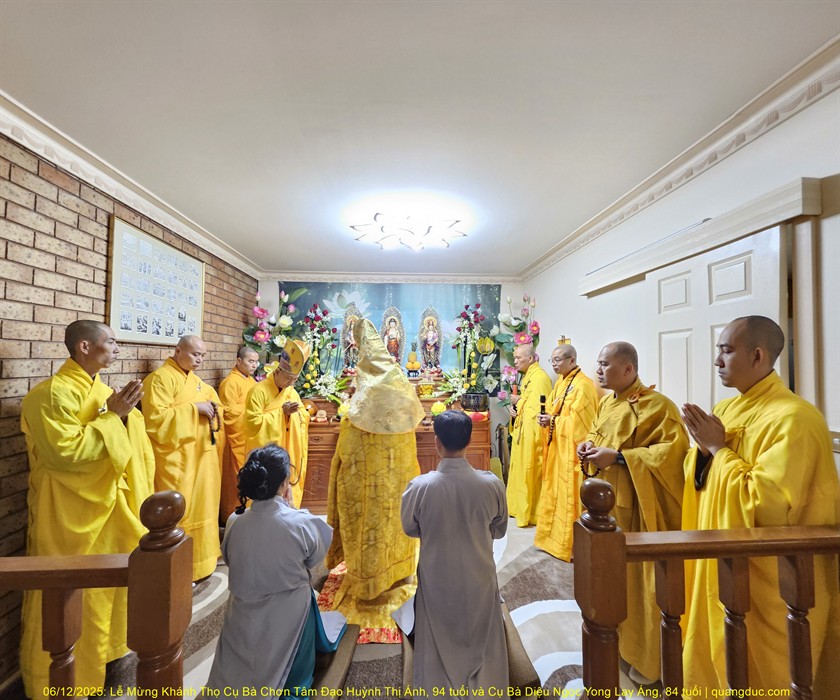Trong không khí trang nghiêm, thanh tịnh và thấm đượm đạo vị, tại tư gia 11 Tyrone Crt, Avondale Heights, gia đình Phật tử Nguyên Cảnh – Diệu Hoàng đã long trọng tổ chức Lễ Khánh Thọ Nhị Vị Từ Mẫu: