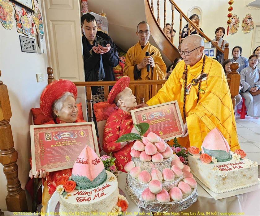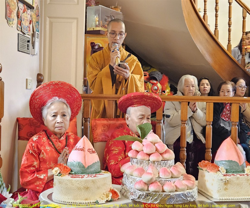 Trong không gian ấm áp đạo tình, hai cụ được chúc thọ với lời cầu nguyện: