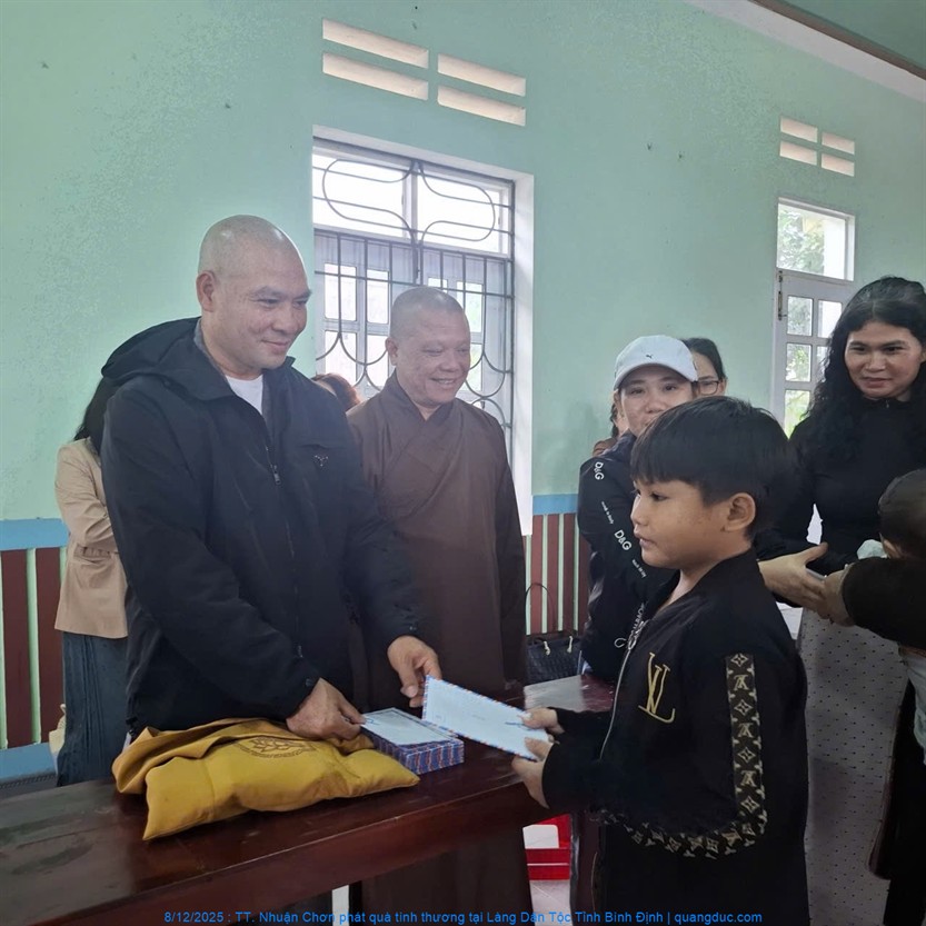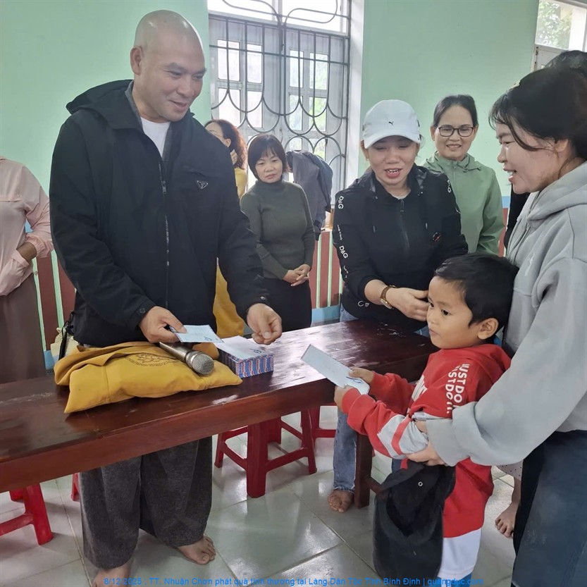 08/12/2025, TT. Nhuận Chơn phát quà tình thương tại Làng Dân Tộc tỉnh Bình Định