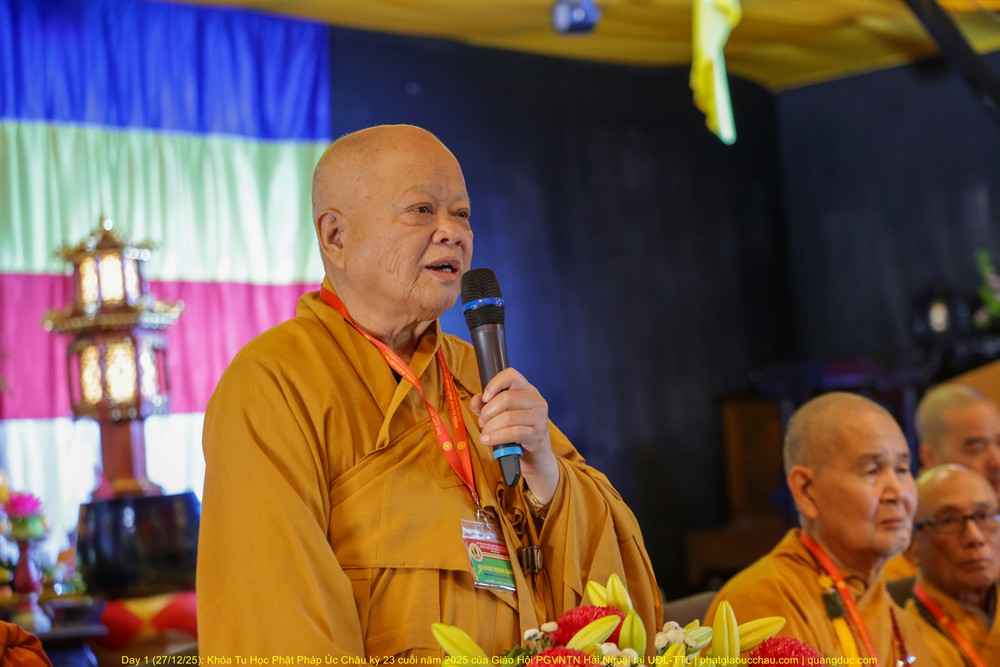Chúng ta thật sự có đủ phước duyên thù thắng khi được Chư Tôn Hòa Thượng, những bậc Thầy khả kính, từ bi quang lâm chứng minh, trực tiếp giảng dạy, chia sẻ kinh nghiệm tu tập và hướng dẫn phương pháp hành trì đúng đắn. Đây là điều vô cùng quý báu, bởi giáo pháp chỉ thật sự sống động khi được ứng dụng trong đời sống hằng ngày…” (xem thêm Diễn văn khai mạc)