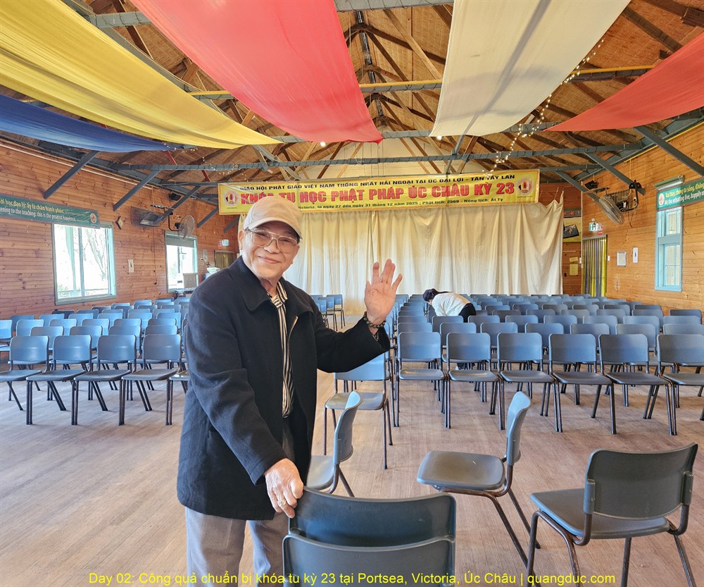 Trong hai ngày 24–25/12/2025, trong không khí trang nghiêm và đầy đạo tình, chư Tôn Đức và quý Phật tử đã tích cực tham gia công tác chuẩn bị cho Khóa Tu Học Phật Pháp Úc Châu kỳ 23, do Giáo Hội PGVNTN Hải Ngoại tại UĐL–TTL tổ chức vào dịp cuối năm 2025.