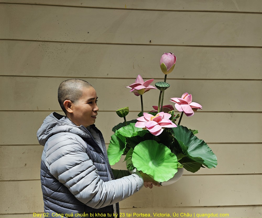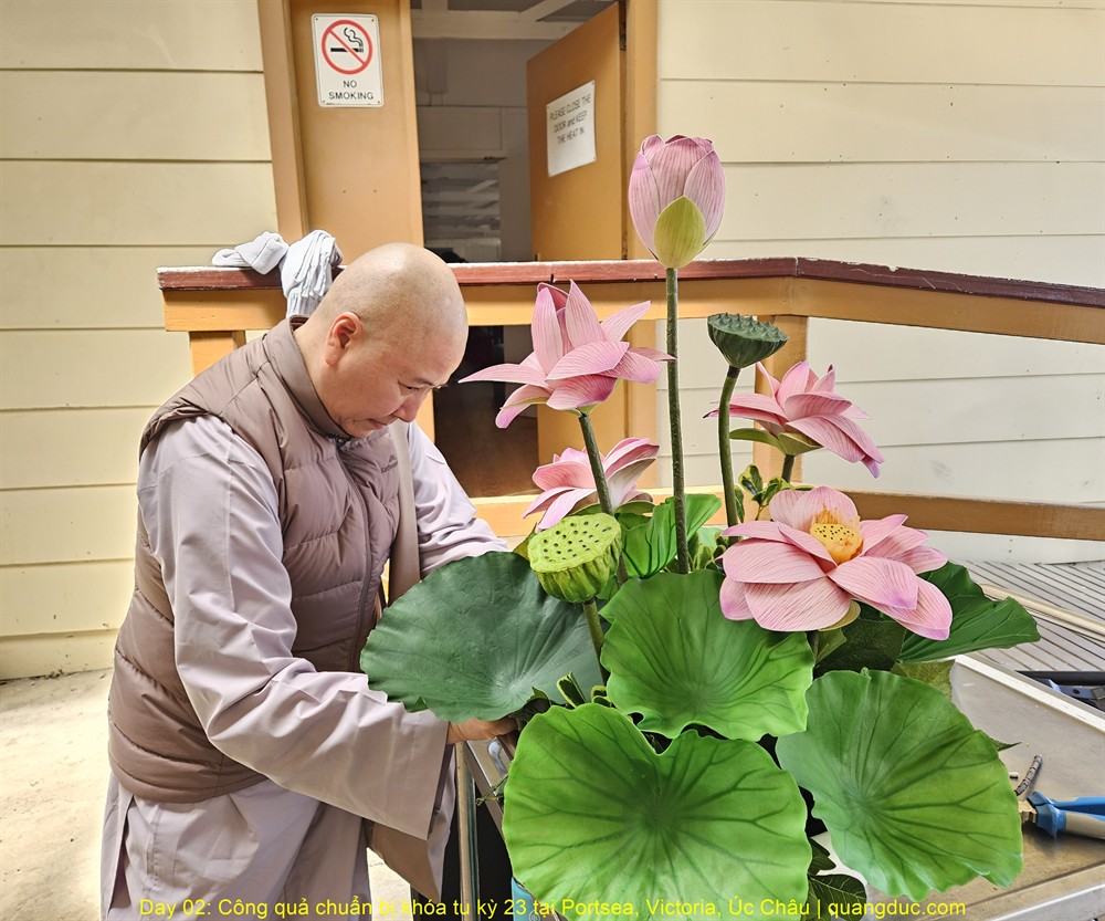 Từ công tác thiết trí đạo tràng, trang hoàng, sắp xếp vật dụng, cho đến các khâu hậu cần cần thiết, tất cả đều được thực hiện với tâm niệm hộ trì Tam Bảo, tạo duyên lành cho năm ngày tu học sắp tới được diễn ra trang nghiêm, an lành và viên mãn.