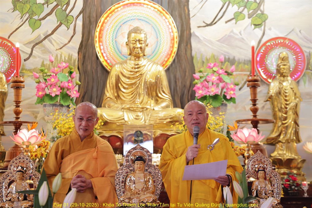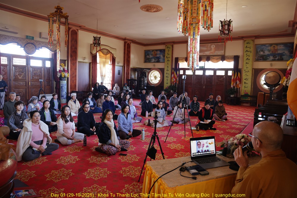 - Day 01: Khóa Tu Thanh Lọc Thân Tâm năm 2025 do TT Thích Tâm Thành hướng dẫn tại Tu Viện Quảng Đức, Melbourne từ ngày 29/10 đến ngày 02 tháng 11 năm 2025