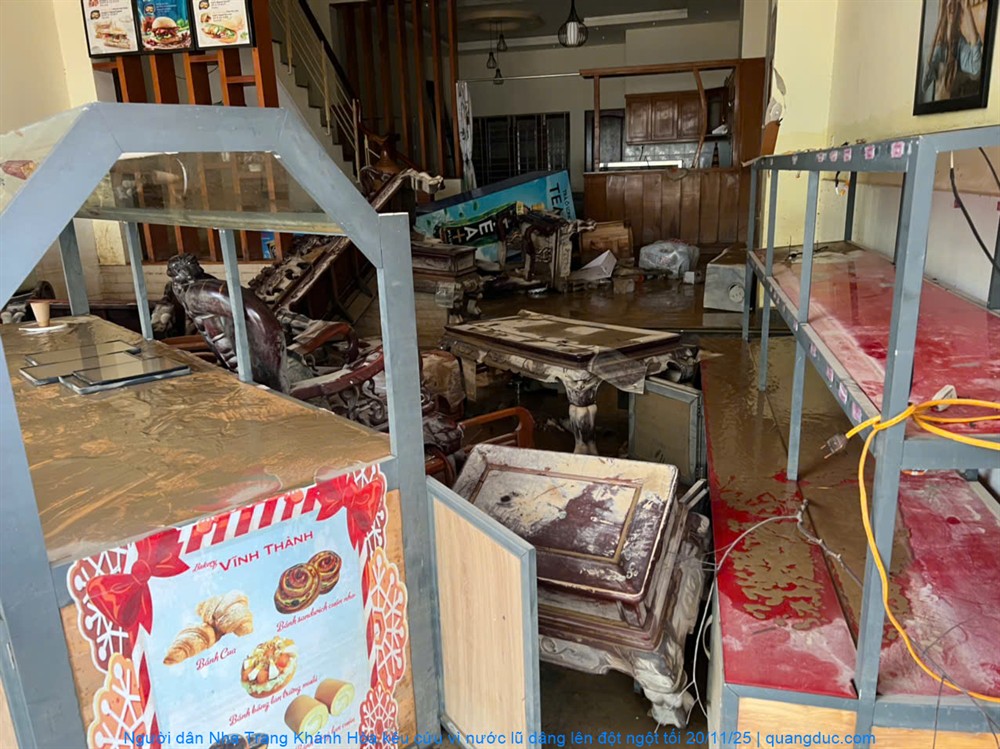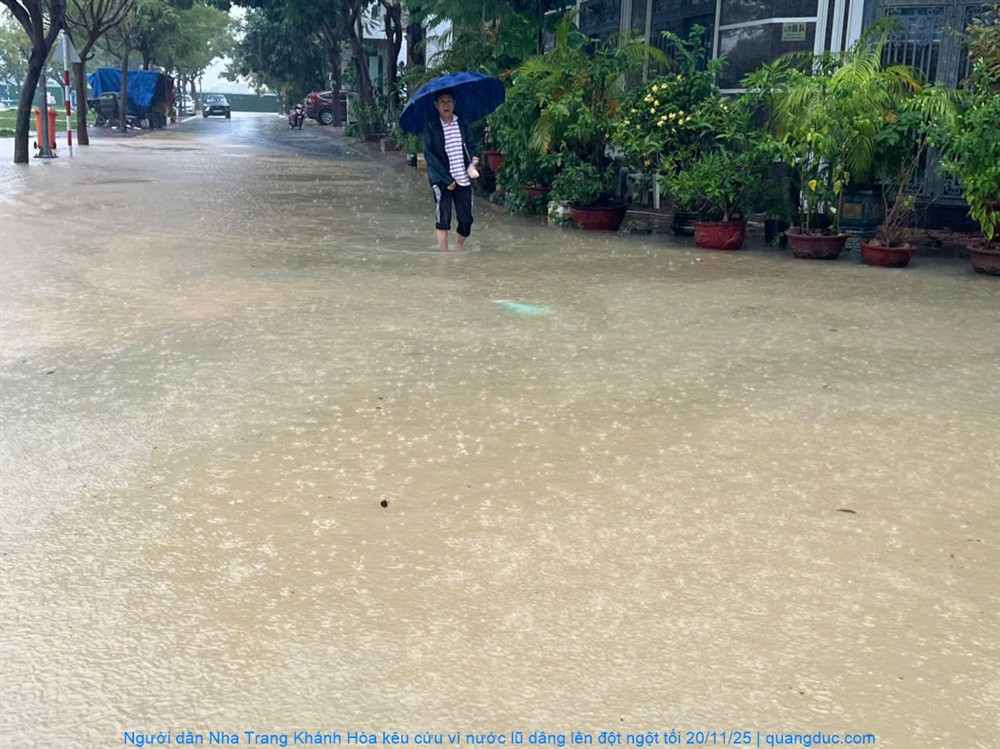 Từ lúc 9 giờ tối 20/11, dòng nước lũ từ thượng nguồn đổ về dữ dội, khiến sông Cái Nha Trang dâng cao đột ngột, tràn qua các khu dân cư và gây nên một trận lũ quét nghiêm trọng, hàng trăm ngàn ngôi bị ngập từ hai mét cho đến mái tôn, tất cả người dân đều không kịp trở tay; tài sản, lương thực, xe máy, xe hơi, vật dụng sinh hoạt bị cuốn trôi; người già, trẻ em và các hộ nghèo hiện đang rất khốn đốn, cần sự hỗ trợ khẩn cấp.