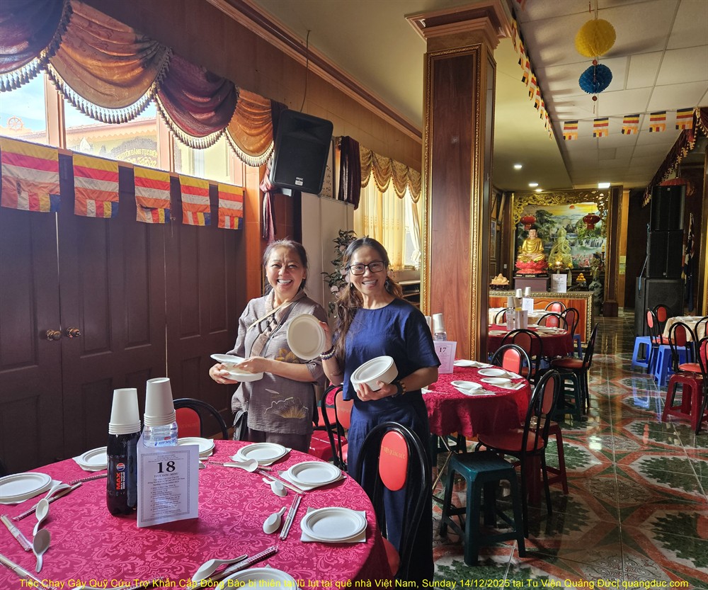 - Phật tử công quả Tiệc Chay Gây Quỹ Cứu Trợ Khẩn Cấp Đồng Bào bị thiên tại lũ lụt tại quê nhà Việt Nam, Sunday 14/12/2025 tại Tu Viện Quảng Đức