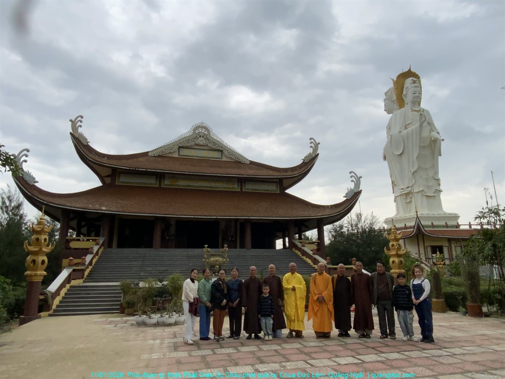 Ngày 11/01/2026, vào 9 giờ sáng, đoàn đến chùa Đức Lâm, xã Long Phụng (Đức Lợi – Đức Phổ cũ), tỉnh Quảng Ngãi, do Thượng Tọa Thích Hạnh Nhân trụ trì. Ngôi chùa tọa lạc đối diện biển Đức Lợi, khung cảnh khoáng đạt và thanh bình.