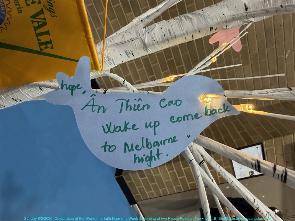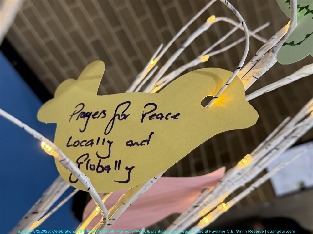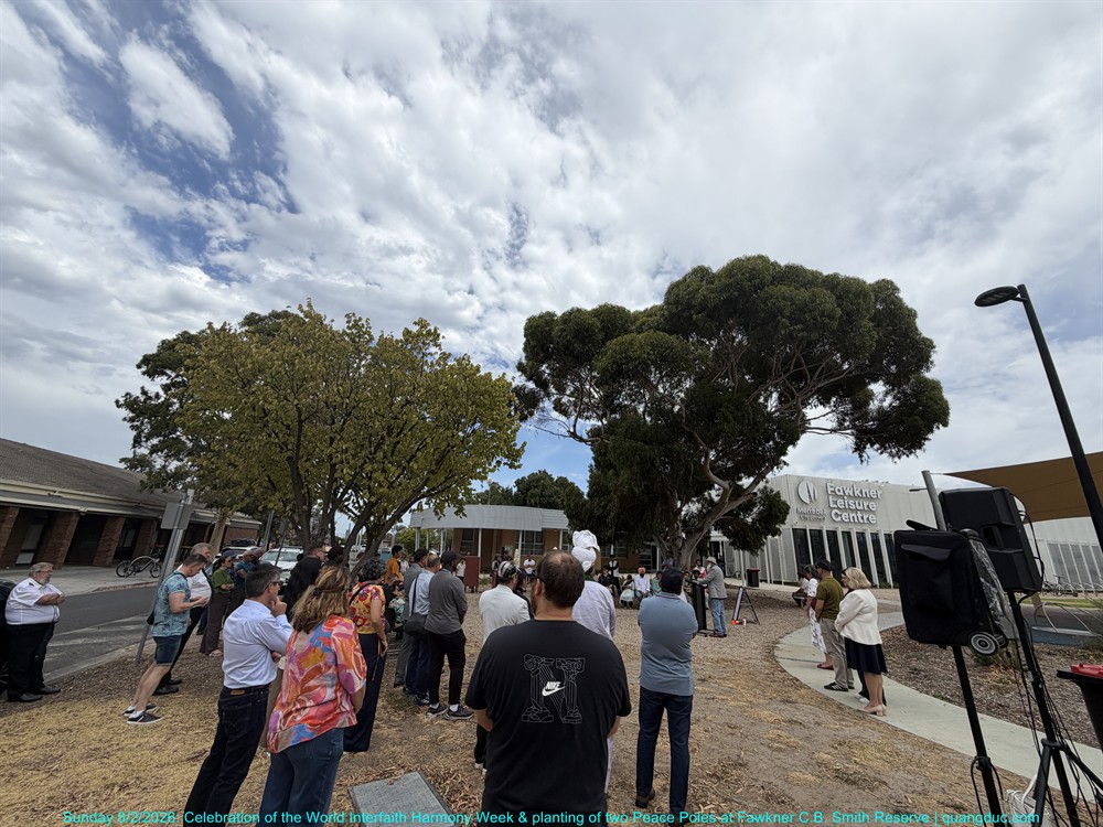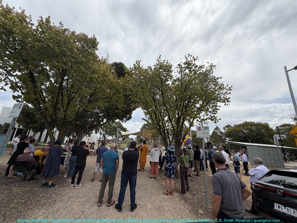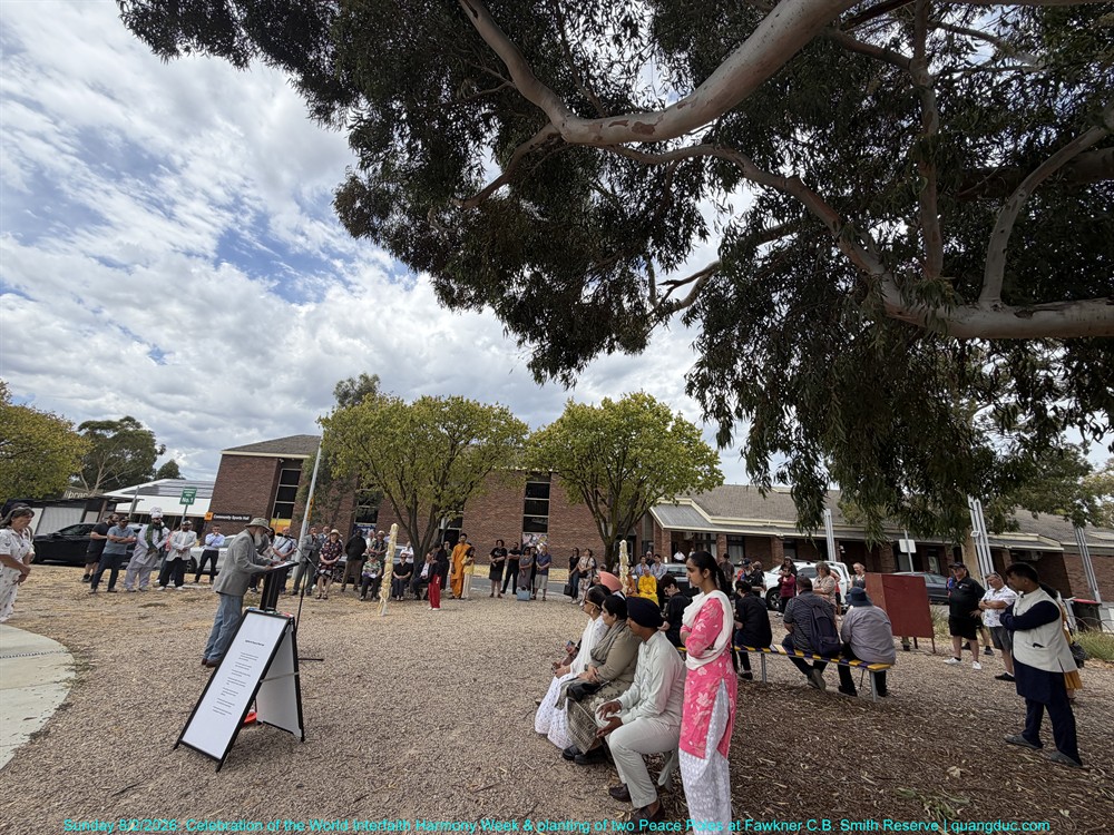 Chiều Chủ Nhật, ngày 8 tháng 2 năm 2026, từ 2:00pm đến 3:30pm, tại Công viên Fawkner C.B. Smith, Mạng Lưới Liên Tôn Merri-bek đã long trọng tổ chức Lễ Kỷ Niệm Tuần Lễ Hòa Hợp Liên Tôn Thế Giới, kết hợp với Lễ Trồng Hai Cột Hòa Bình (Peace Poles), trong bầu không khí trang nghiêm, ấm áp và đầy ý nghĩa.