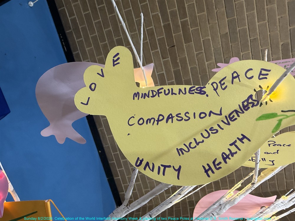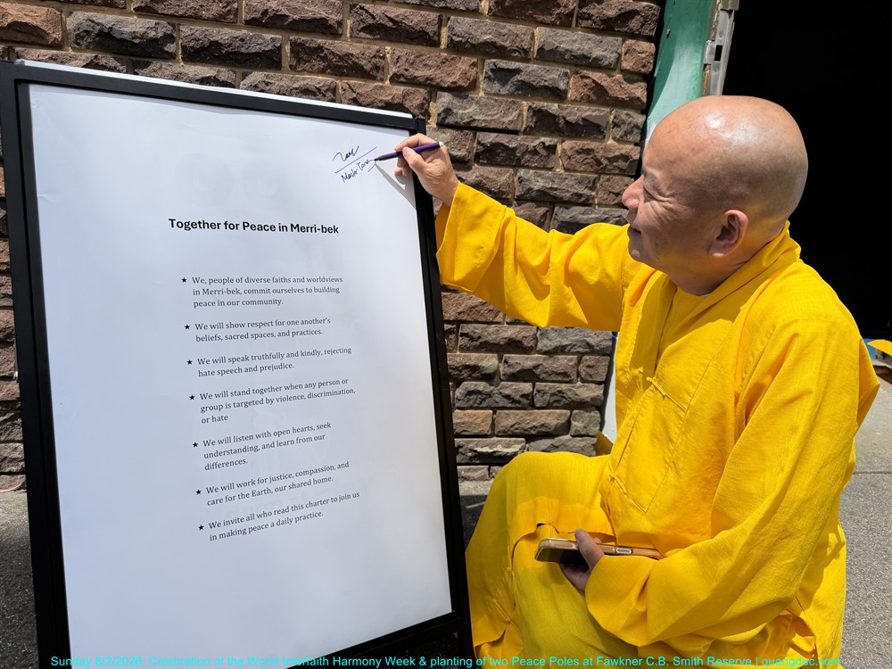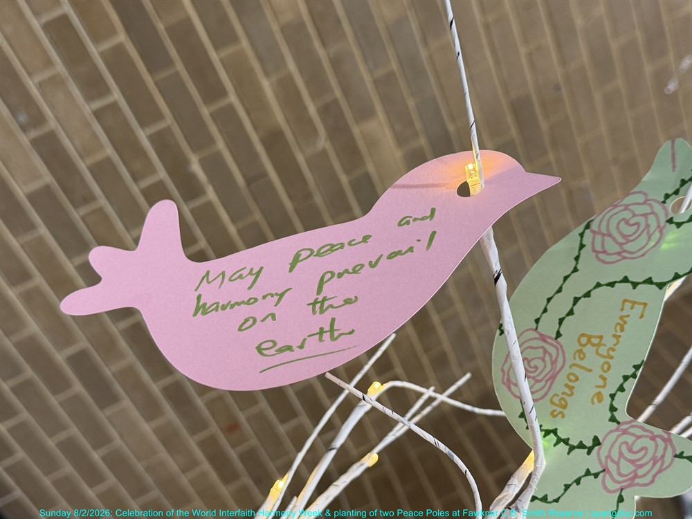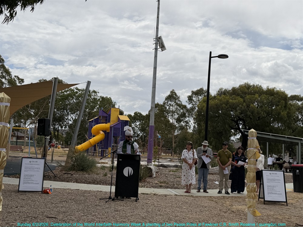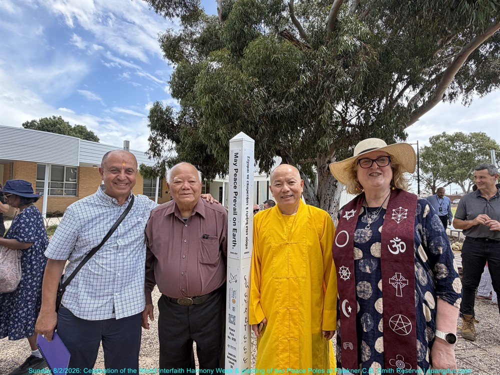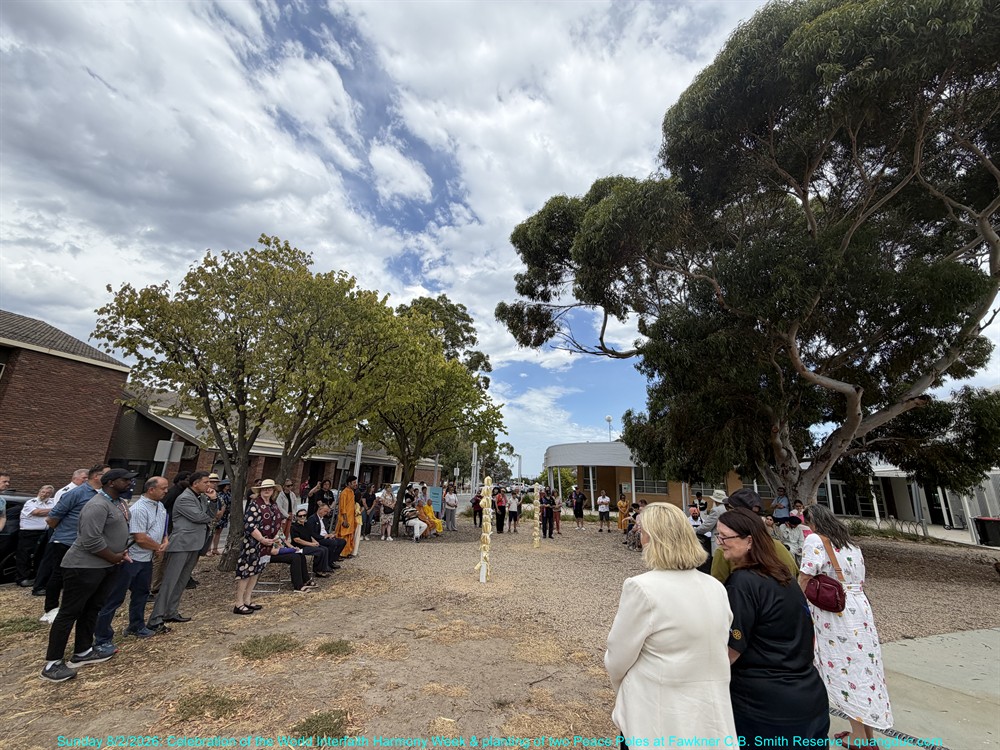 On Sunday afternoon, 8 February 2026, from 2:00pm to 3:30pm, at Fawkner C.B. Smith Reserve, the Merri-bek Interfaith Network solemnly held the Celebration of the World Interfaith Harmony Week, combined with the Planting of Two Peace Poles, in an atmosphere that was dignified, warm, and deeply meaningful.