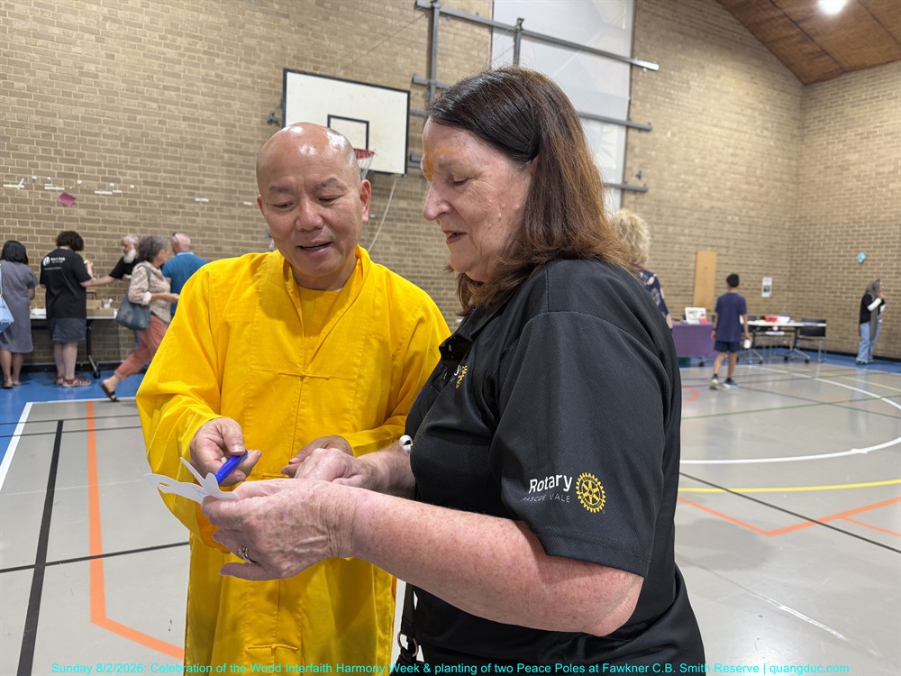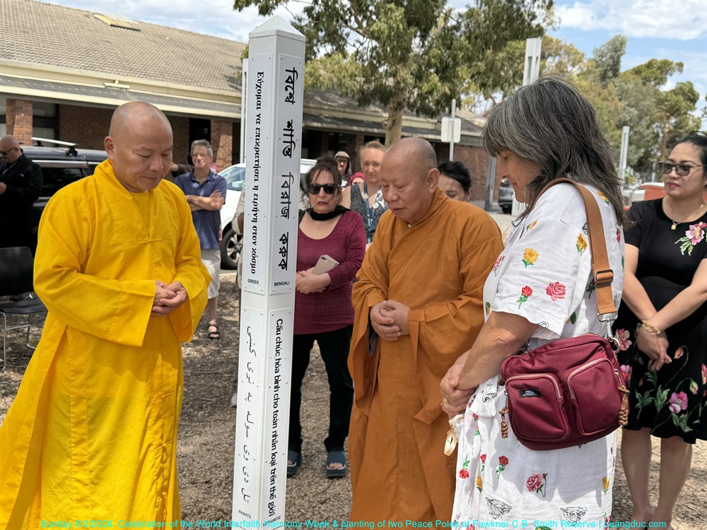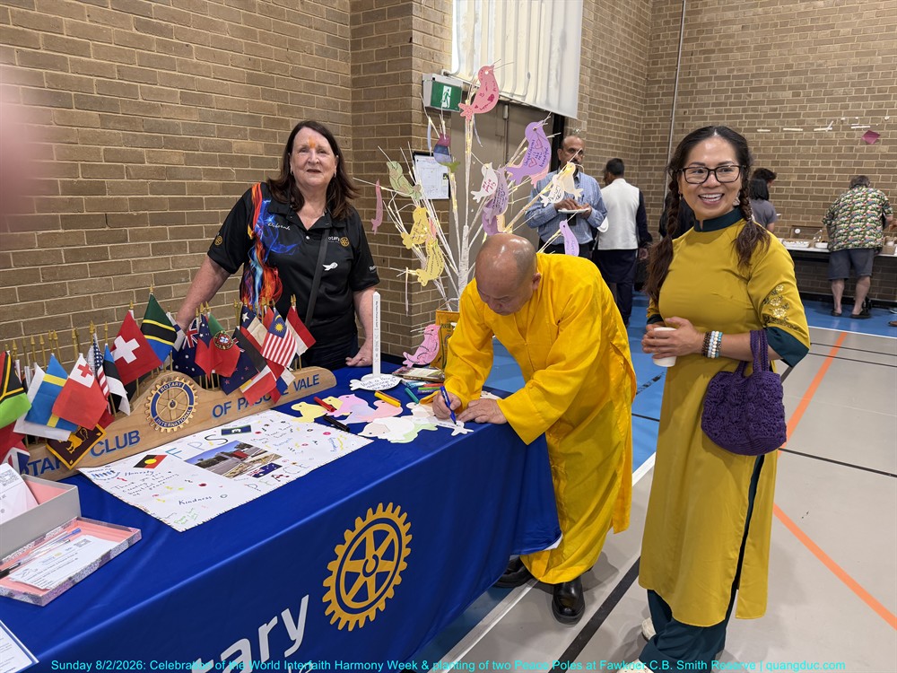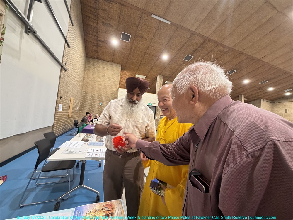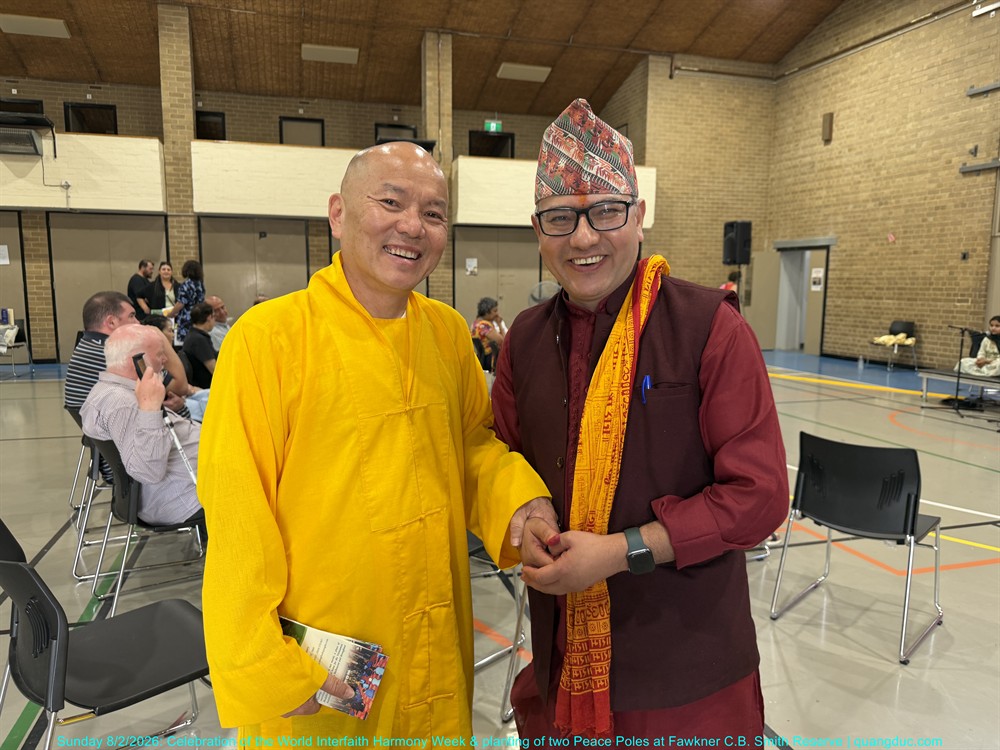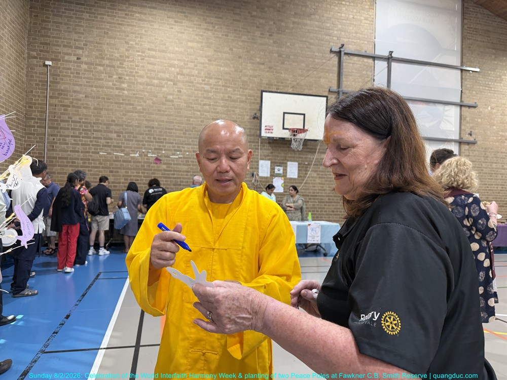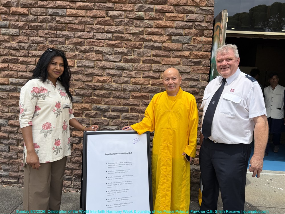 The ceremony was honoured by the presence of Most Venerable Thich Minh Ba (Giac Sanh Pagoda, Saigon, Vietnam), Senior Venerable Abbot Thich Nguyen Tang together with the teachers of Quang Duc Vietnamese Language School, leaders of various faith traditions, representatives of religious communities as Syed Waqar Hussein – Islam, Trish Jannu – Baha’i, Rev Ron Rosinsky – Uniting, Hidayet Ceylan – Alevi, Yogesh Bhatt – Hindu, Milan Gyawali – Hindu, Rev Canon Farag Hanna - Anglican, Jenne Perlstein – Jewish, Recep Aktepe and Osman Koc – ICMG Brunswick, Gurdeep Singh Matharoo and Jasvir Kaur– Sikh, Rev Mecka – Anglican, Charmaine Thomas Daborn – Brunswick Baptist, Jason Simmonds – Salvation Army, Ms Sayanti Bhatta, Social Cohesion Officer of Merri-bek City Council and many distinguished guests and local residents of the City of Merri-bek.