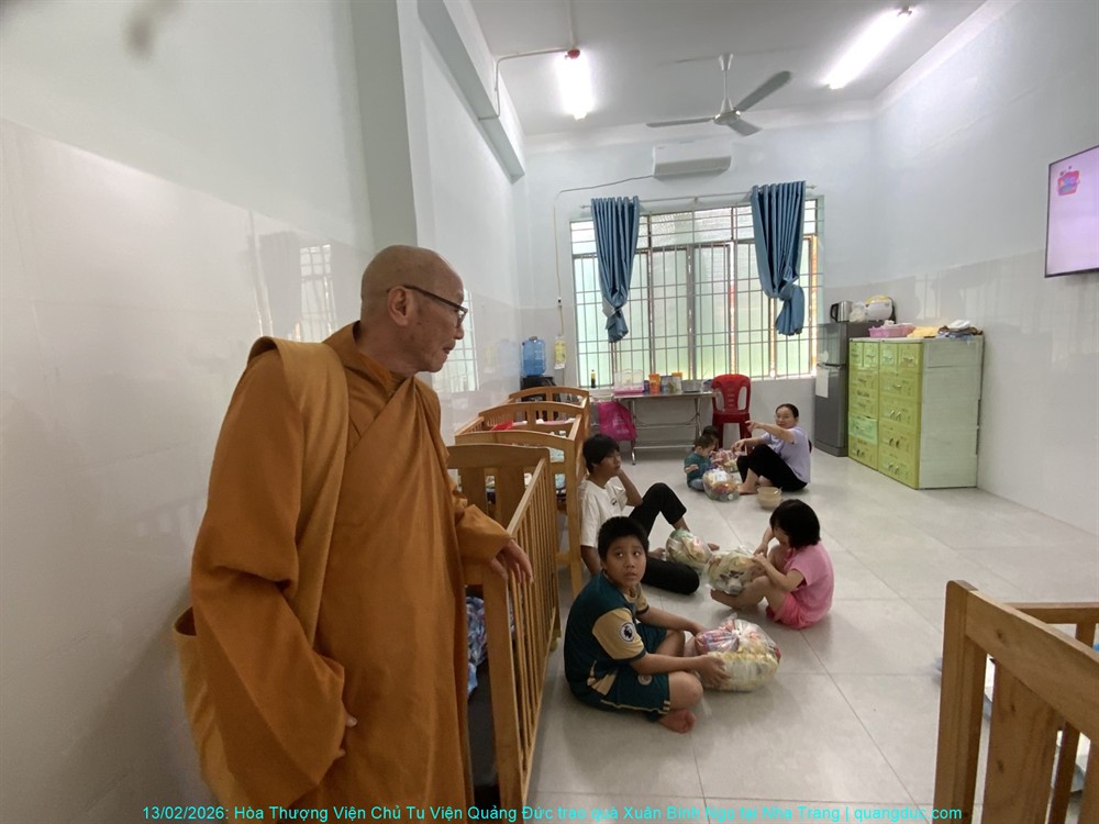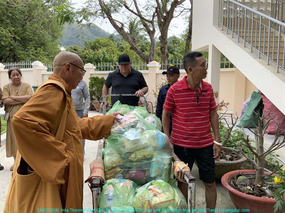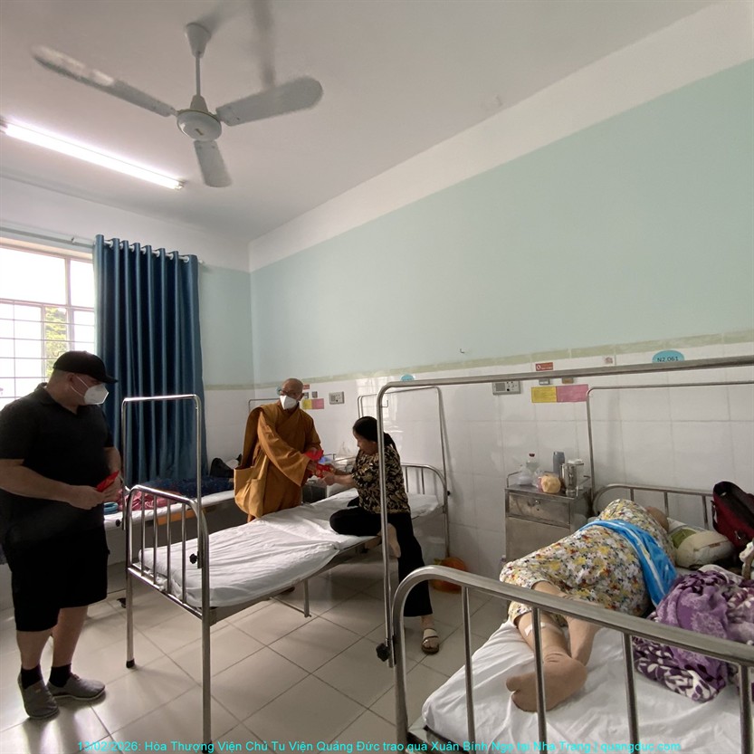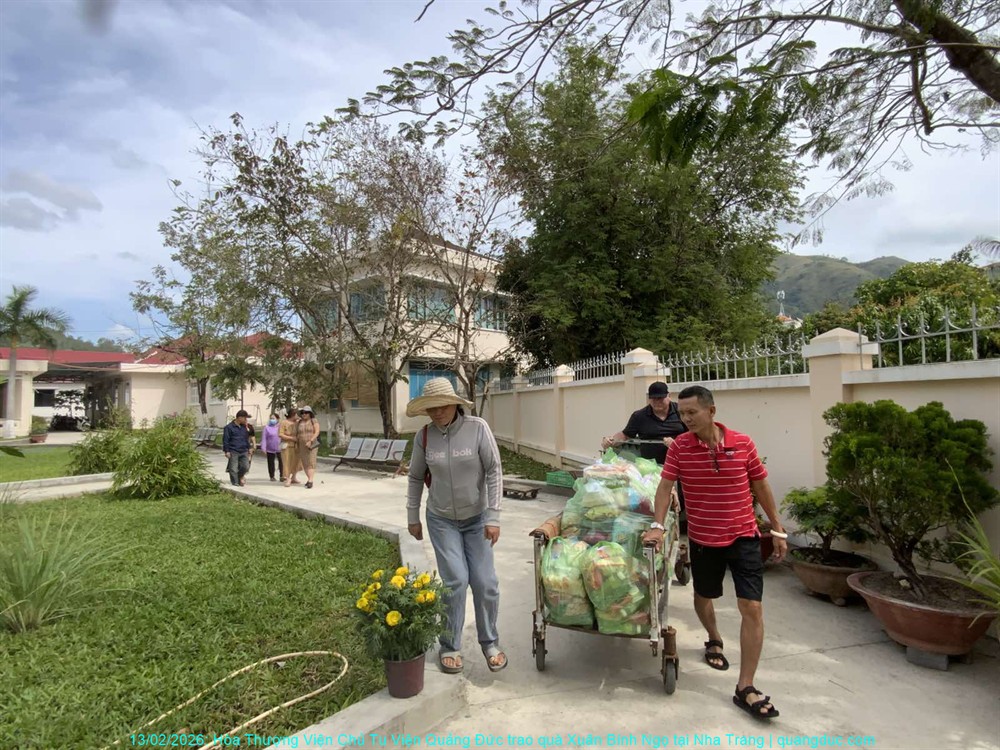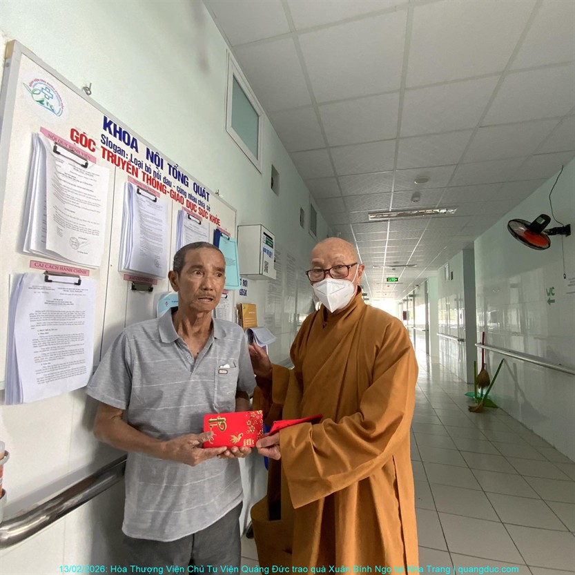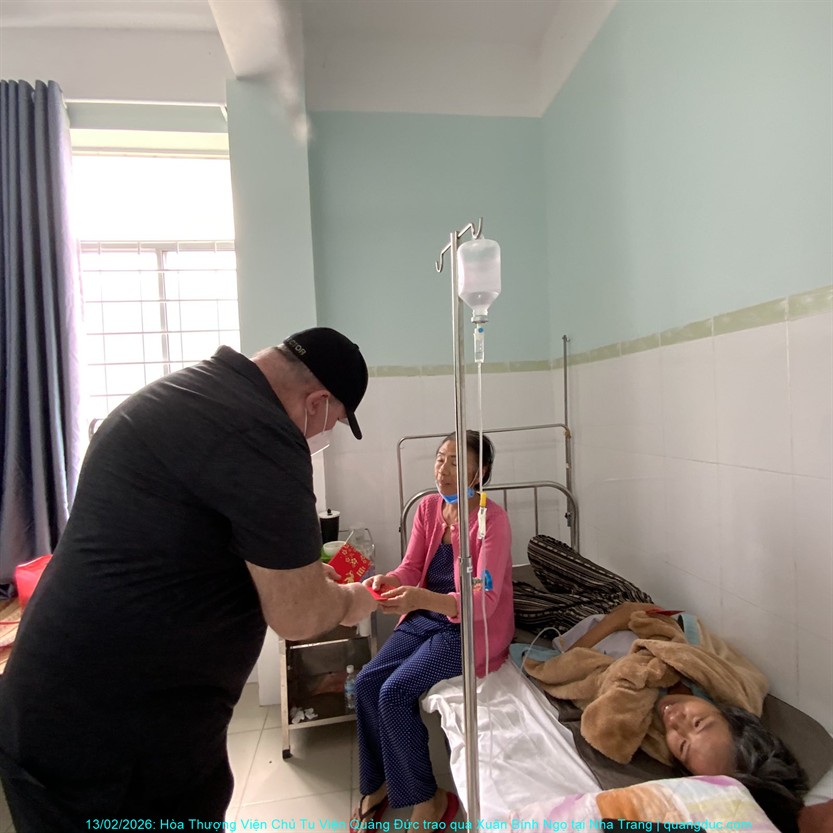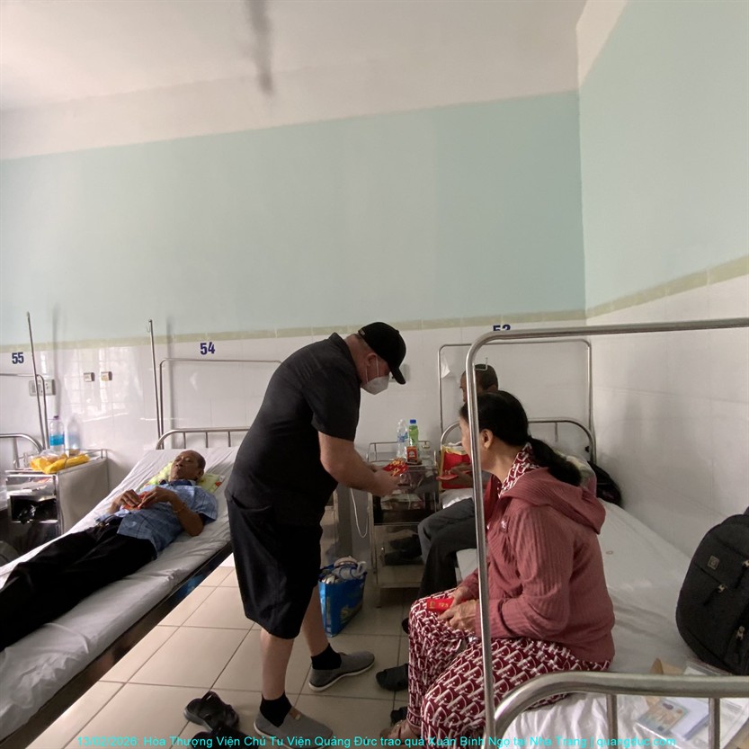 Hôm nay, ngày 26 tháng Tết (13/2/2026), Hòa Thượng Viện Chủ Tu Viện Quảng Đức, Hòa Thượng Thích Thông Mẫn, đã thân lâm Bệnh viện Ung Bướu tỉnh Khánh Hòa để thăm hỏi và trao tặng 100 phần quà Xuân đến các bệnh nhân cùng thân nhân đang ngày đêm túc trực chăm sóc. Mỗi phần quà tuy đơn sơ gồm bánh và 200.000 đồng tiền mặt, nhưng chất chứa trong đó là tấm lòng sẻ chia và lời chúc an lành đầu năm mới. Giữa những ngày giáp Tết, khi nỗi lo bệnh tật còn nặng trĩu, sự hiện diện ân cần của Hòa Thượng cùng những món quà nghĩa tình đã phần nào sưởi ấm lòng người, mang đến niềm động viên và hy vọng.