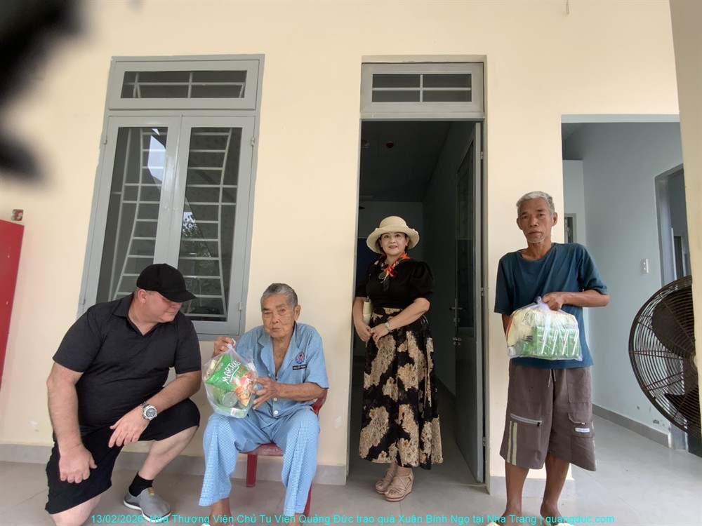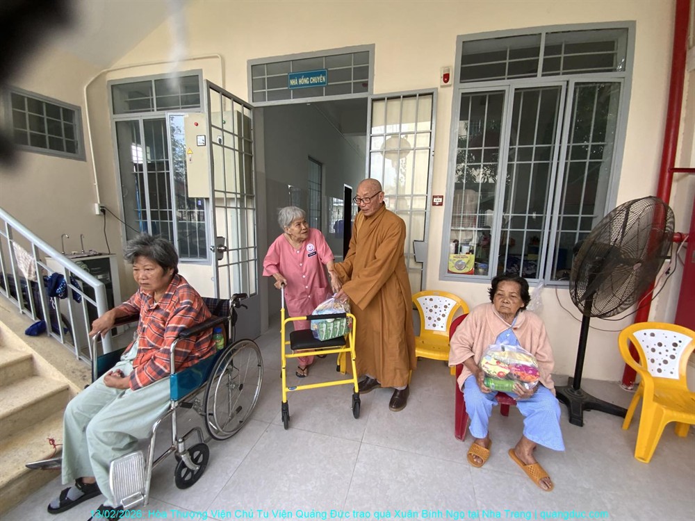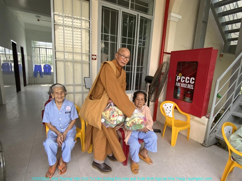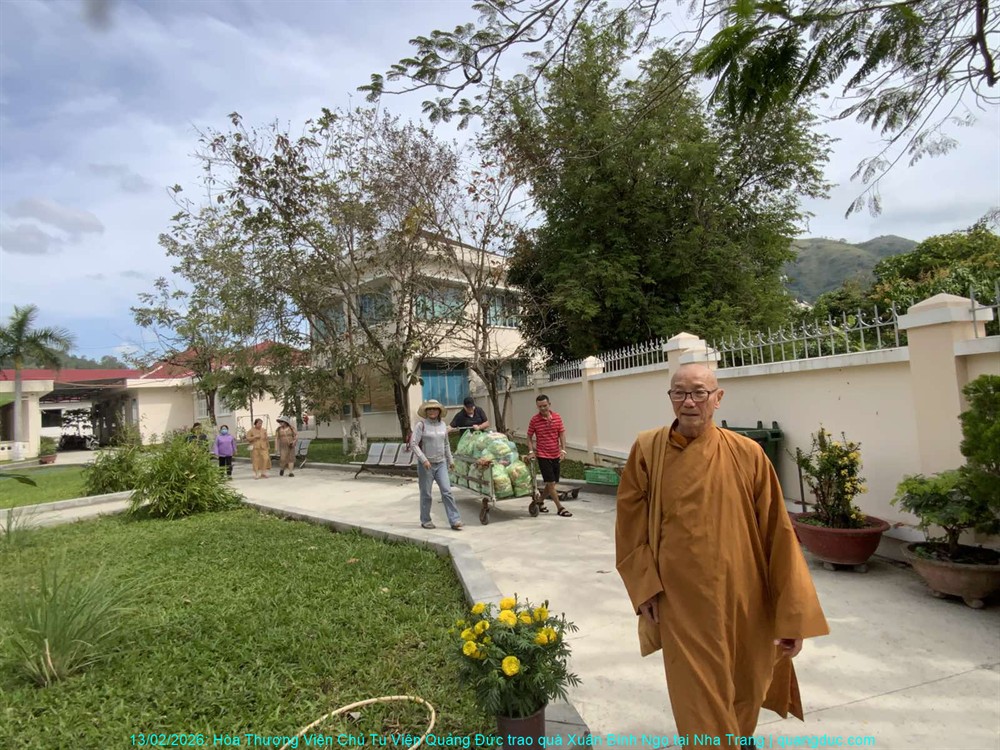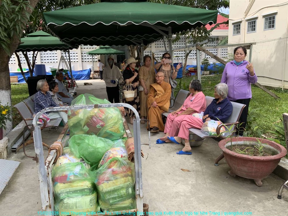 Tiếp đó, Thầy trò đã đến thăm Viện Dưỡng Lão, trao tặng những phần quà Xuân khiêm tốn do Phật tử Hà Vũ từ Hoa Kỳ về thăm và phát tâm từ thiện cùng Hòa Thượng để trao tận tay các cụ. Những món quà Xuân Bính Ngọ không chỉ là vật phẩm, mà còn là nhịp cầu yêu thương nối liền những tấm lòng từ phương xa với những mảnh đời cần được chở che. Xuân về trong tình người, trong ánh sáng từ bi và sự sẻ chia âm thầm mà ấm áp.