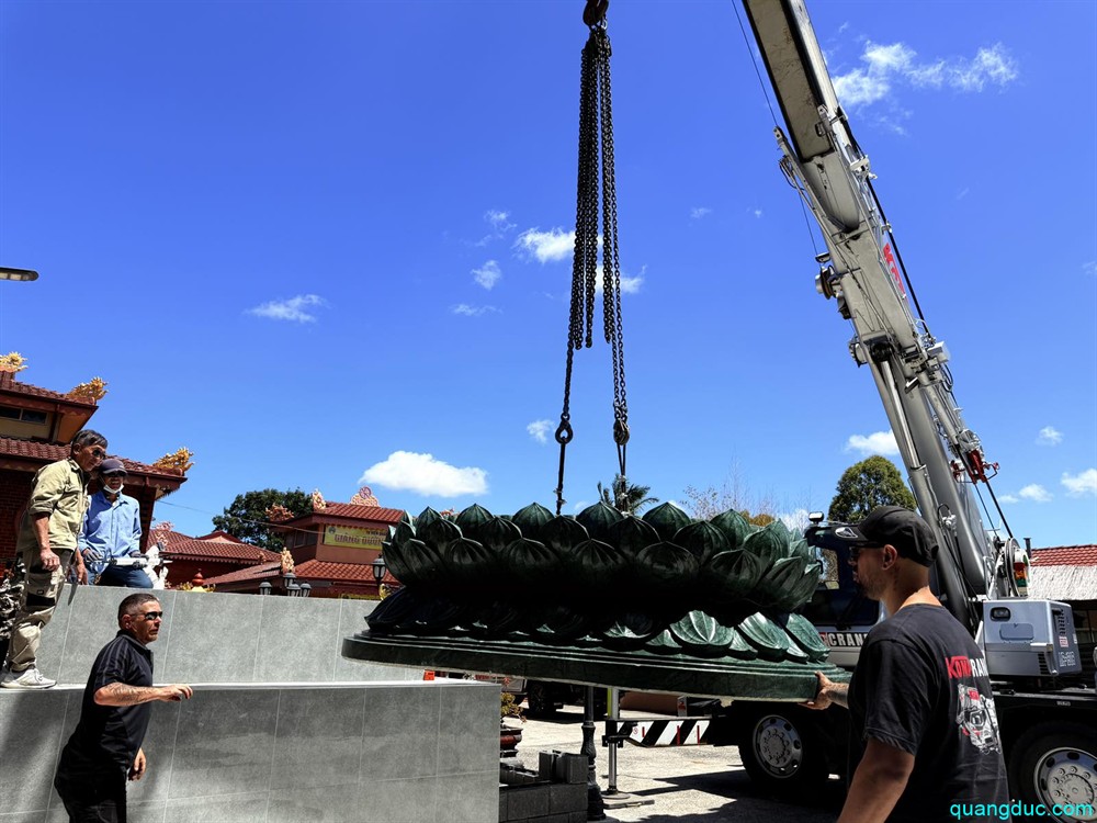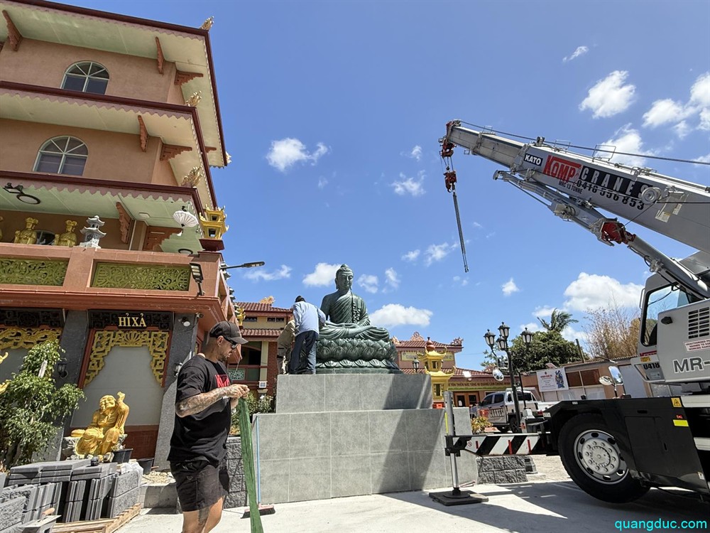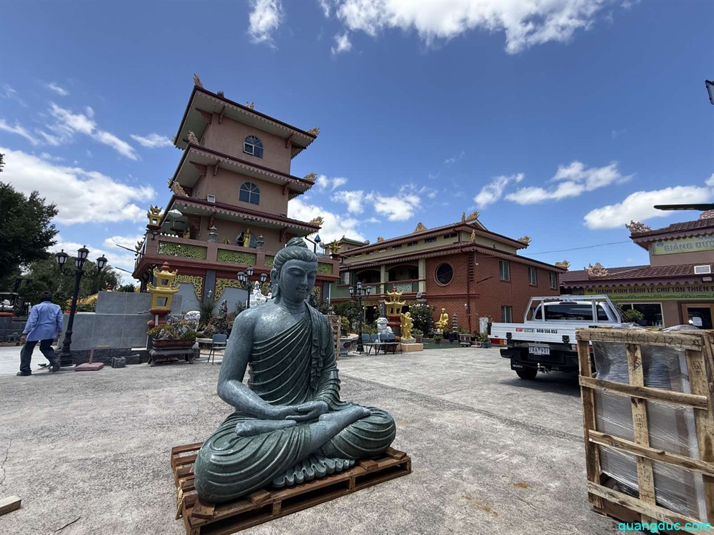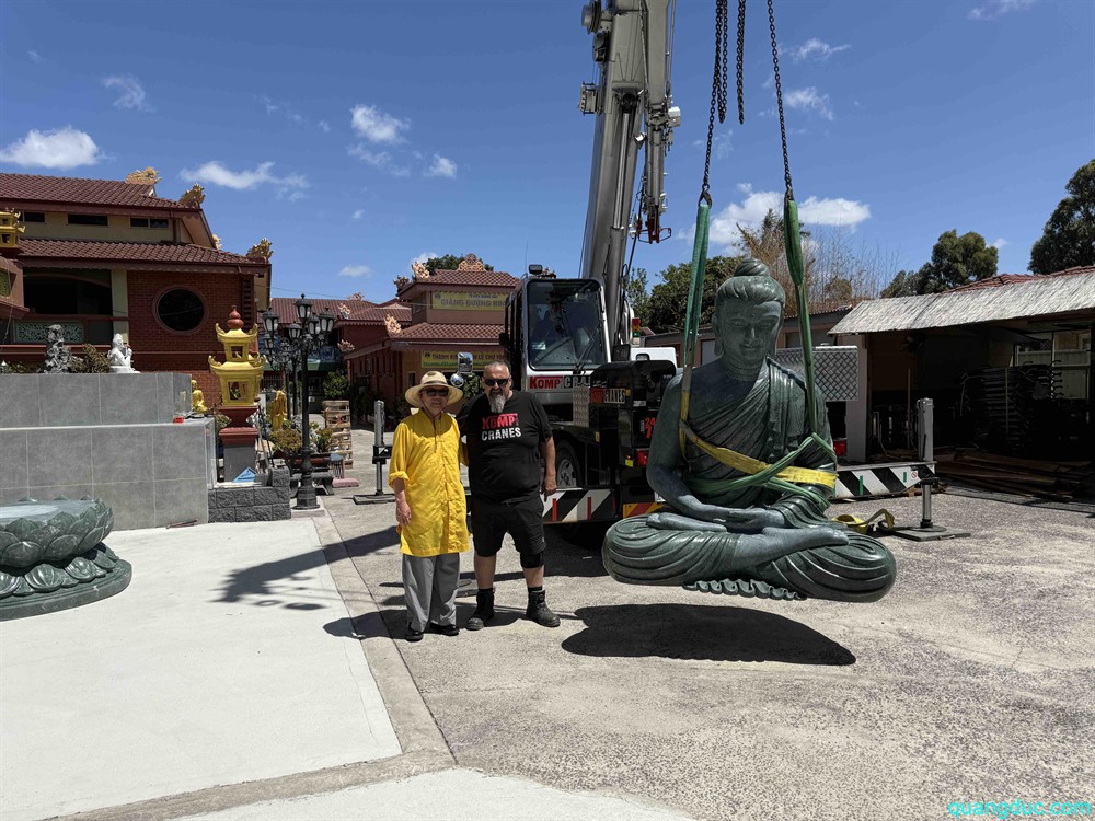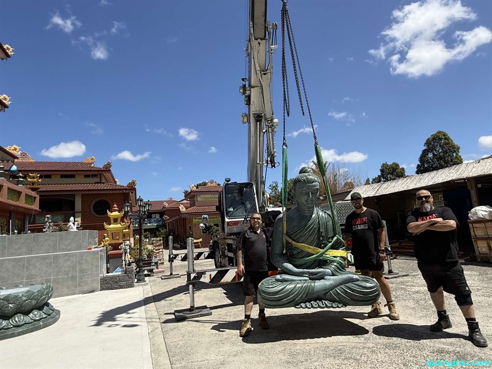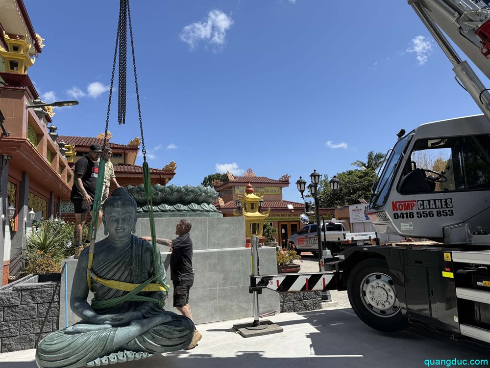 Với tất cả lòng thành kính, Đạo Tràng Tu Viện Quảng Đức xin trân trọng tán dương công đức của gia đình đệ tử Diệu Ngọc-Thanh Anh đã phát tâm cúng dường Tôn tượng Phật Ngọc vô cùng tôn quý này, vừa được xe cẩu đưa lên bục trưa nay thứ Năm 22/1/2026, bên phải của Bảo Tháp Tứ Ân. Không chỉ dừng lại ở tấm lòng hộ trì Tam Bảo, gia đình còn cùng Sư Phụ Viện Chủ Thích Thông Mẫn đích thân đến tận xưởng khắc tượng Zen Art, gặp gỡ nghệ nhân Hoàng Đức Diên, trực tiếp chọn lựa mẫu tôn tượng với tất cả sự cung kính, cẩn trọng và nhất tâm, rồi phát nguyện đặt khắc pho tượng bằng đá cẩm thạch xanh Ấn Độ, dâng trọn niềm tin và lòng thành kính lên Đức Thế Tôn.