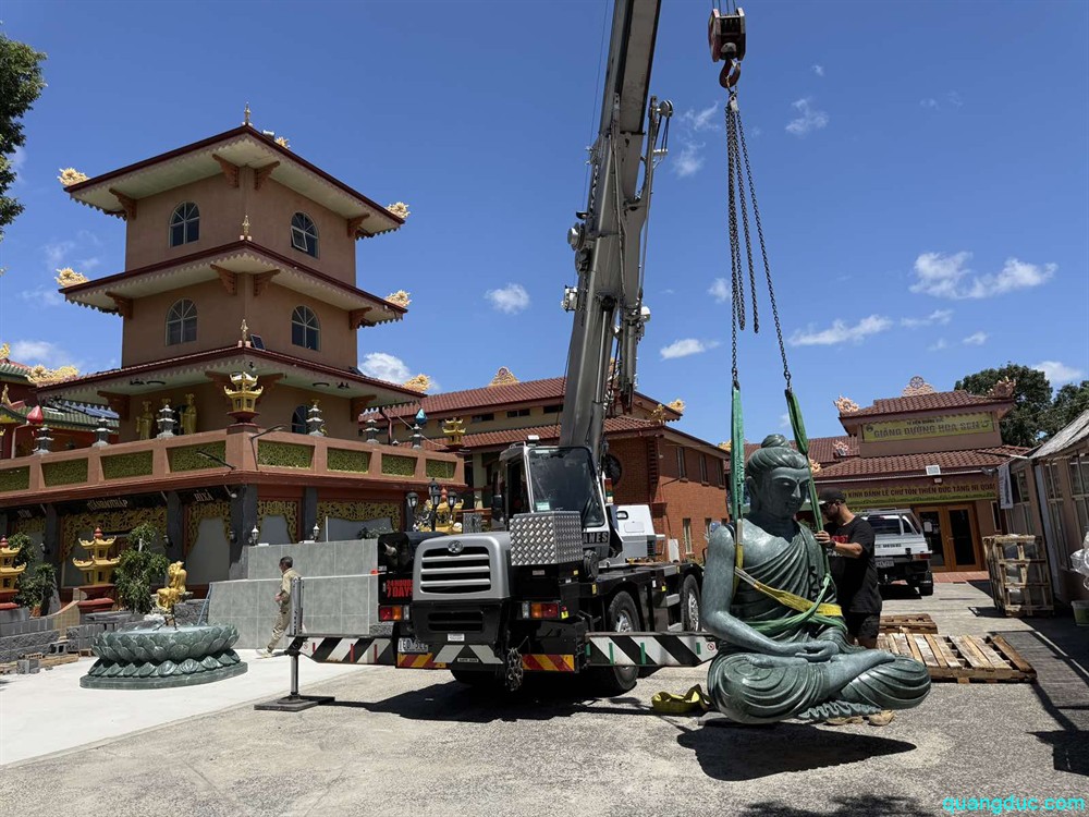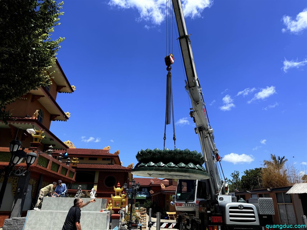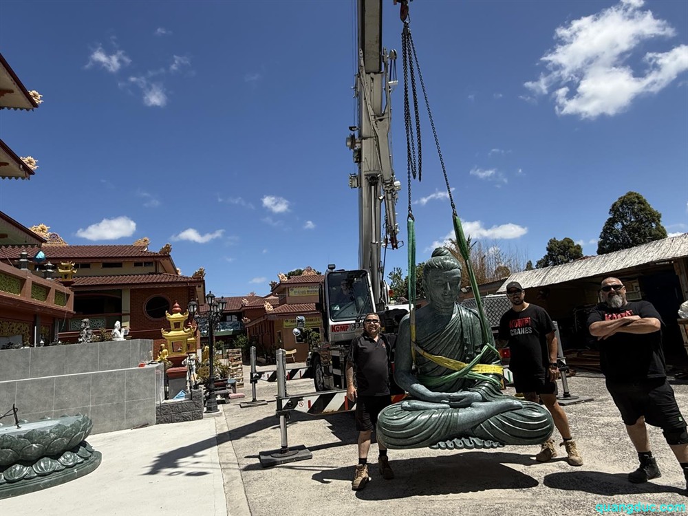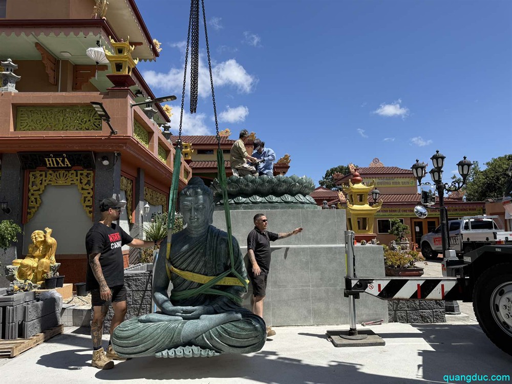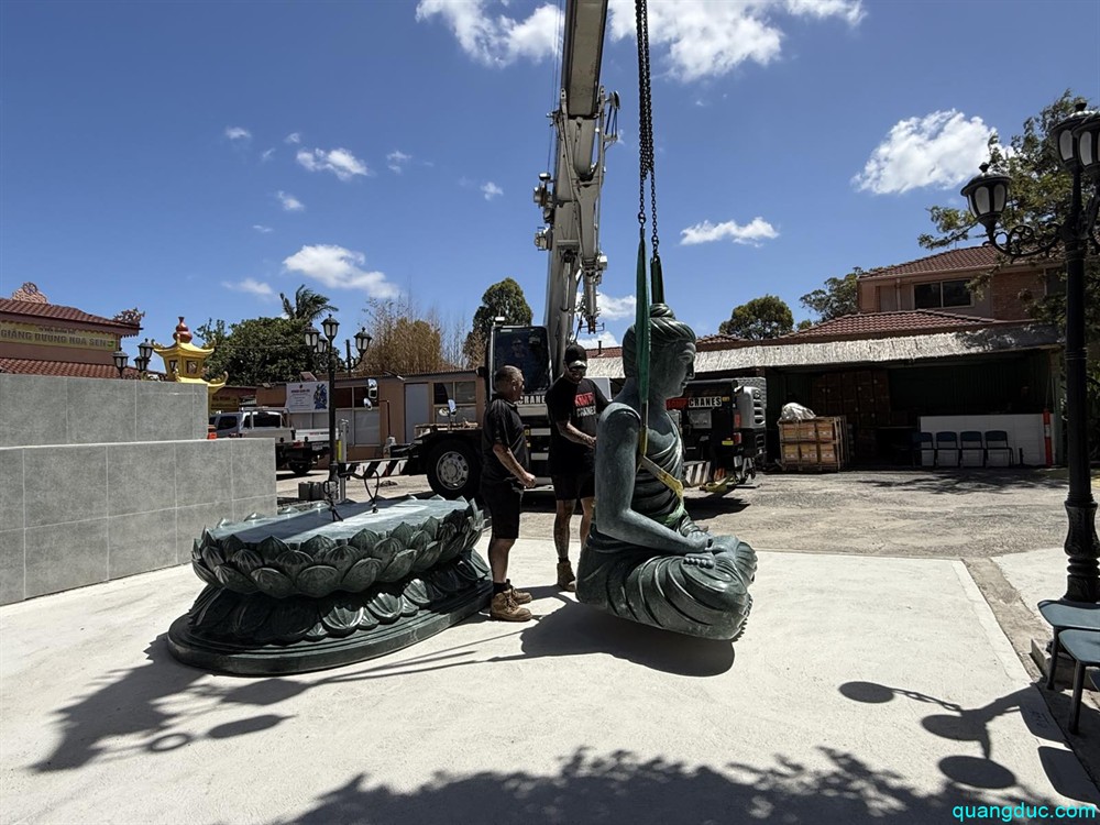 Với tất cả lòng thành kính, Đạo Tràng Tu Viện Quảng Đức xin trân trọng tán dương công đức của gia đình đệ tử Diệu Ngọc-Thanh Anh đã phát tâm cúng dường Tôn tượng Phật Ngọc vô cùng tôn quý này, vừa được xe cẩu đưa lên bục trưa nay thứ Năm 22/1/2026, bên phải của Bảo Tháp Tứ Ân. Không chỉ dừng lại ở tấm lòng hộ trì Tam Bảo, gia đình còn cùng Sư Phụ Viện Chủ Thích Thông Mẫn đích thân đến tận xưởng khắc tượng Zen Art, gặp gỡ nghệ nhân Hoàng Đức Diên, trực tiếp chọn lựa mẫu tôn tượng với tất cả sự cung kính, cẩn trọng và nhất tâm, rồi phát nguyện đặt khắc pho tượng bằng đá cẩm thạch xanh Ấn Độ, dâng trọn niềm tin và lòng thành kính lên Đức Thế Tôn.