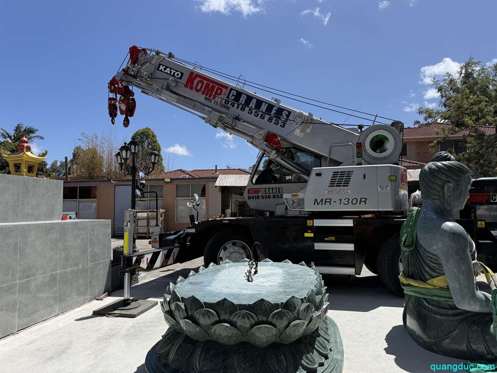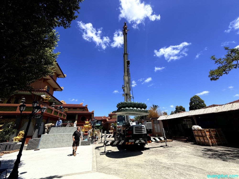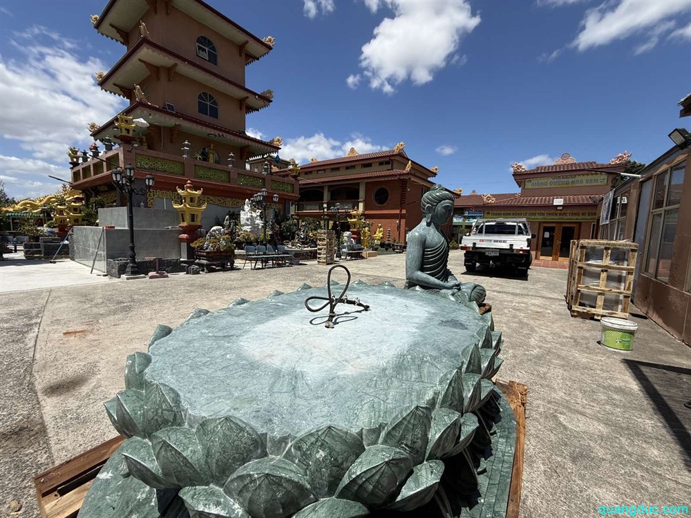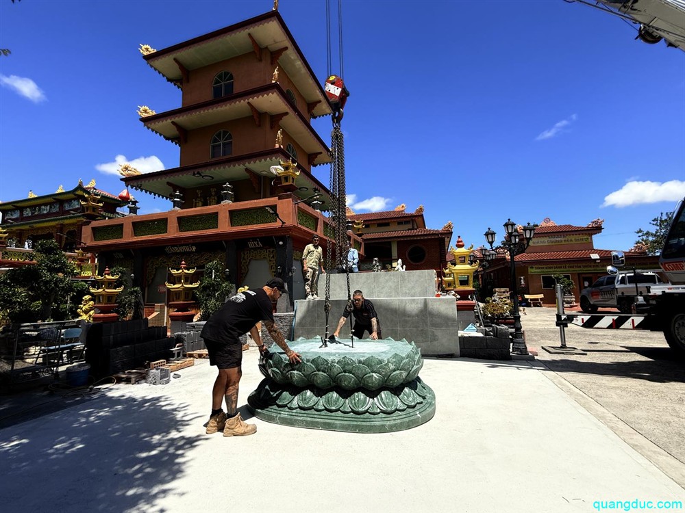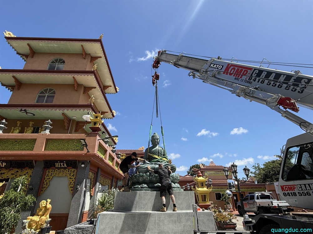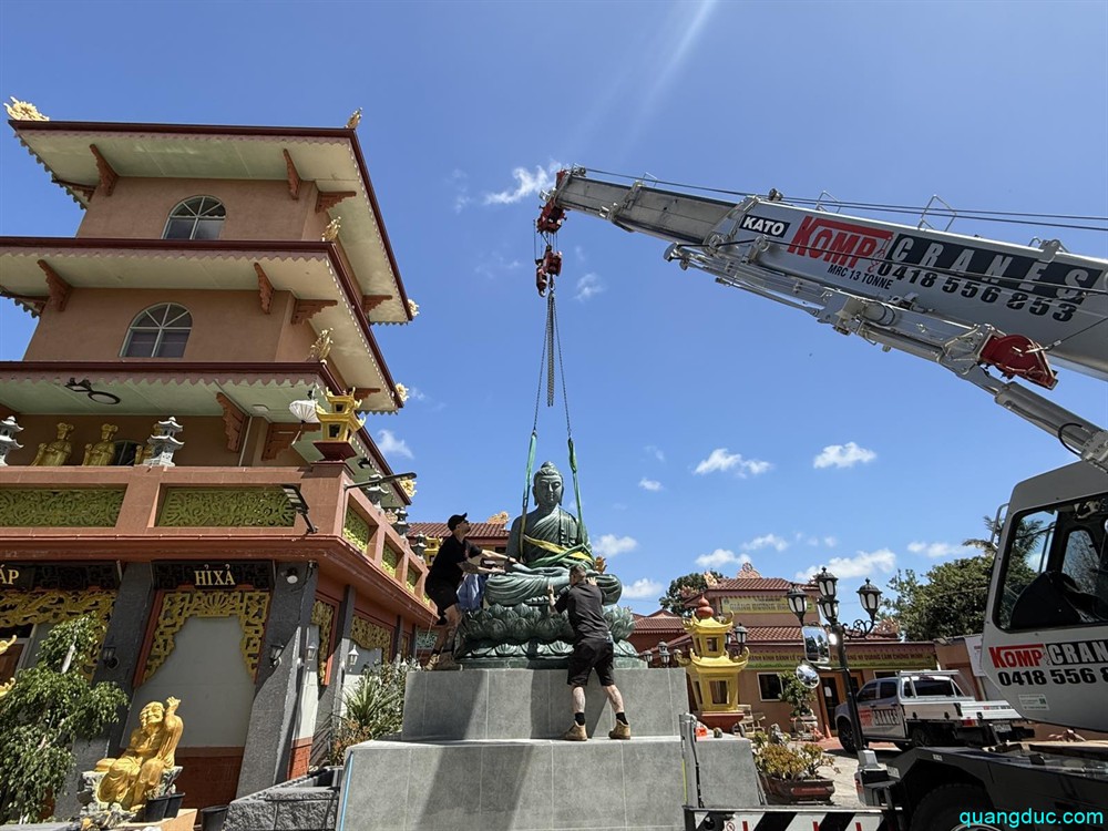Với tất cả lòng thành kính, Đạo Tràng Tu Viện Quảng Đức xin trân trọng tán dương công đức của gia đình đệ tử Diệu Ngọc-Thanh Anh đã phát tâm cúng dường Tôn tượng Phật Ngọc vô cùng tôn quý này, vừa được xe cẩu đưa lên bục trưa nay thứ Năm 22/1/2026, bên phải của Bảo Tháp Tứ Ân. Không chỉ dừng lại ở tấm lòng hộ trì Tam Bảo, gia đình còn cùng Sư Phụ Viện Chủ Thích Thông Mẫn đích thân đến tận xưởng khắc tượng Zen Art, gặp gỡ nghệ nhân Hoàng Đức Diên, trực tiếp chọn lựa mẫu tôn tượng với tất cả sự cung kính, cẩn trọng và nhất tâm, rồi phát nguyện đặt khắc pho tượng bằng đá cẩm thạch xanh Ấn Độ, dâng trọn niềm tin và lòng thành kính lên Đức Thế Tôn.