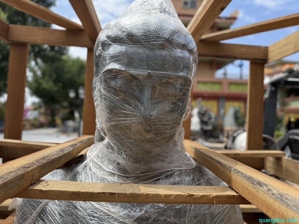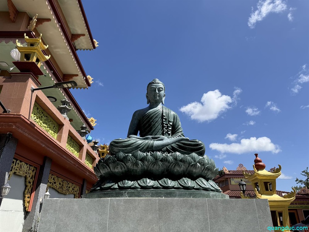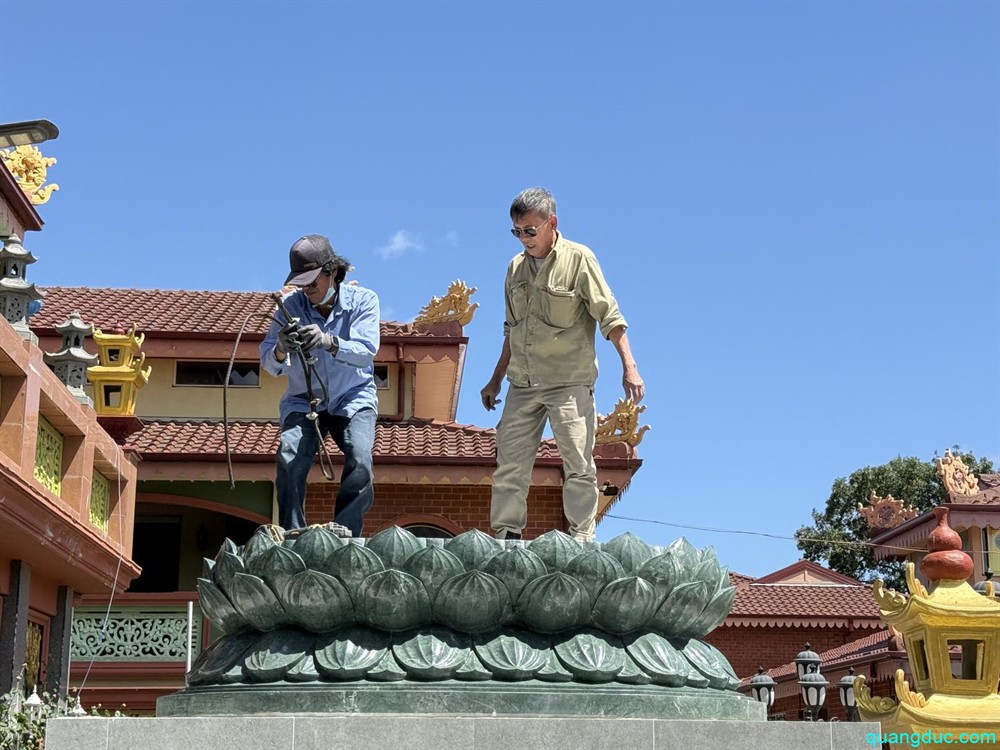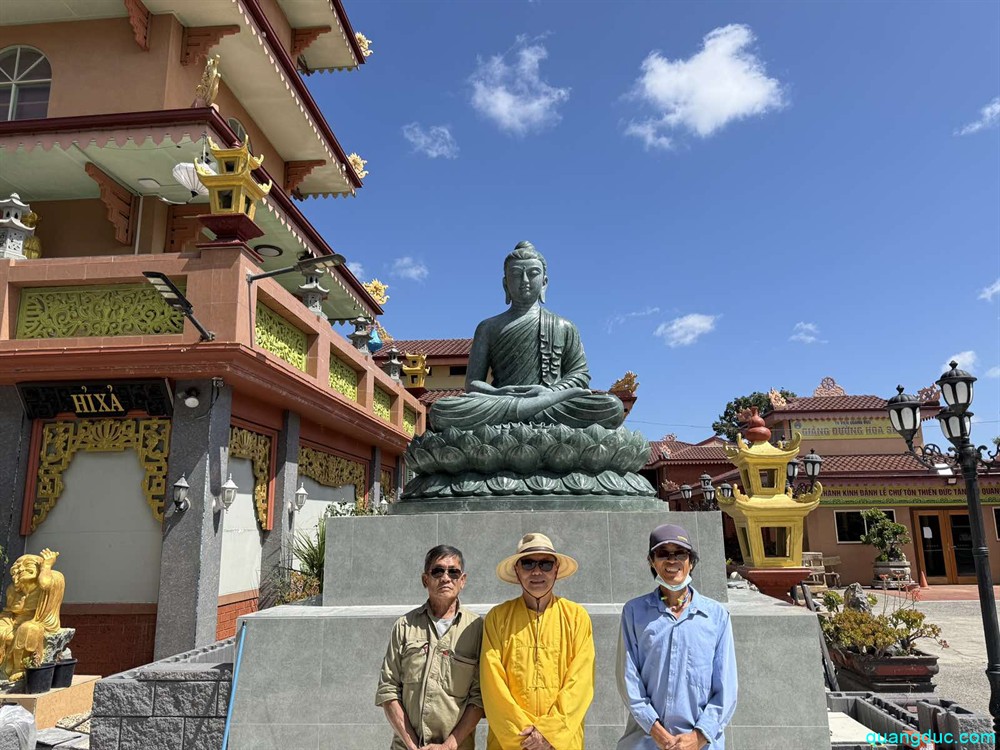 Nhân đây, Tu Viện Quảng Đức xin tán dương công đức của nghệ nhân Phật tử Hoàng Đức Diên, cùng toàn thể nhân viên xưởng Zen Art, những người đã dốc trọn tâm huyết, tài năng và lòng kính ngưỡng Tam Bảo để tạo nên một tuyệt tác mới, góp phần làm rạng rỡ và trang nghiêm thêm cảnh già lam tại Tu Viện Quảng Đức. Với đôi tay tài hoa hòa quyện cùng trái tim thành tín, nghệ nhân Hoàng Đức Diên không chỉ khắc họa hình tướng trang nghiêm, từ ái của chư Phật, Bồ Tát, mà còn thổi vào từng đường nét hơi thở của Chánh Pháp, để mỗi pho tượng không đơn thuần là một tác phẩm nghệ thuật, mà trở thành pháp thân biểu tượng, mang đến niềm tin và hoan hỷ của hàng Phật tử khi chiêm bái. Trước đây, nhiều tôn tượng trang nghiêm tại Tu Viện Quảng Đức cũng đã được chính nghệ nhân Hoàng Đức Diên chế tác, tiêu biểu như tượng đồng Bồ Tát Thích Quảng Đức và hai pho tượng Quan Âm lộ thiên, đã và đang hiện hữu như những dấu ấn sống động của nghệ thuật Phật giáo kết hợp cùng tâm nguyện phụng sự đạo pháp. Qua năm tháng, các tôn tượng ấy vẫn lặng lẽ tỏa chiếu năng lượng từ bi, trở thành điểm nương tựa tâm linh cho biết bao Phật tử và thiện tín gần xa. Công trình tôn tạo pho tượng lần này tiếp tục là minh chứng cho nhân duyên thù thắng giữa người nghệ nhân và đạo tràng, giữa nghệ thuật và tâm linh, giữa tài năng thế gian và chí nguyện phụng sự Tam Bảo. Nguyện đem công đức lành này hồi hướng khắp pháp giới chúng sanh; cầu chúc nghệ nhân Hoàng Đức Diên cùng toàn thể nhân viên xưởng Zen Art thân tâm thường an lạc, đạo tâm kiên cố, phước huệ song tu, để tiếp tục tạo tác thêm nhiều tôn tượng nhiệm mầu, làm lợi lạc cho Đạo pháp và chúng sanh.