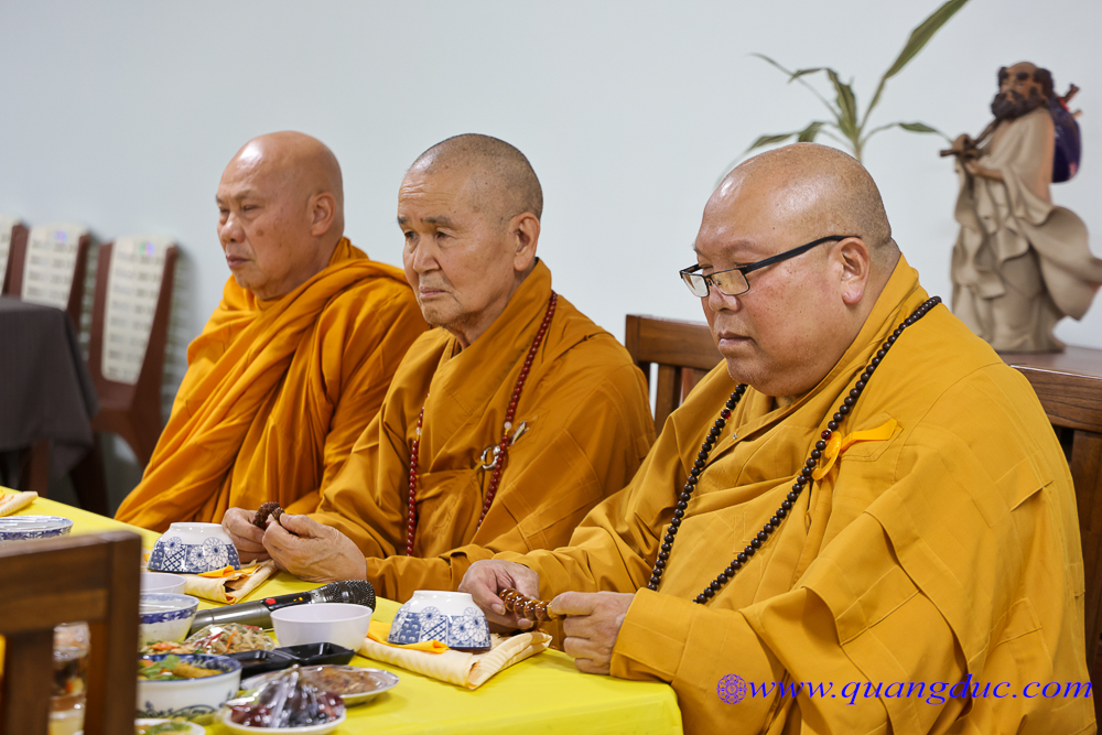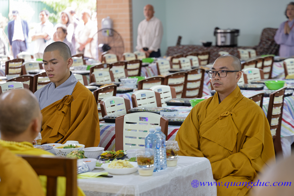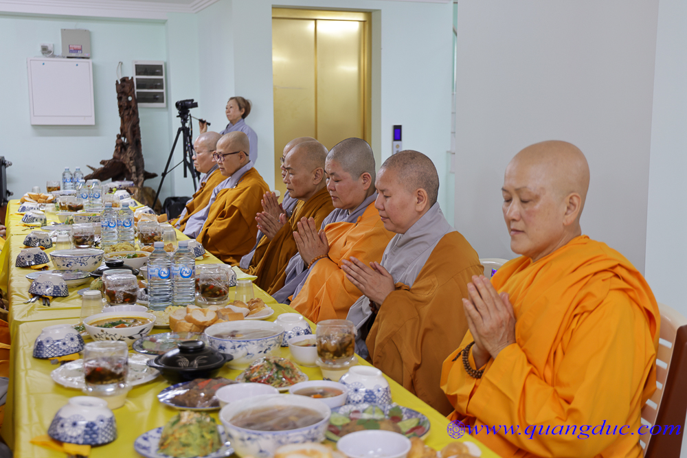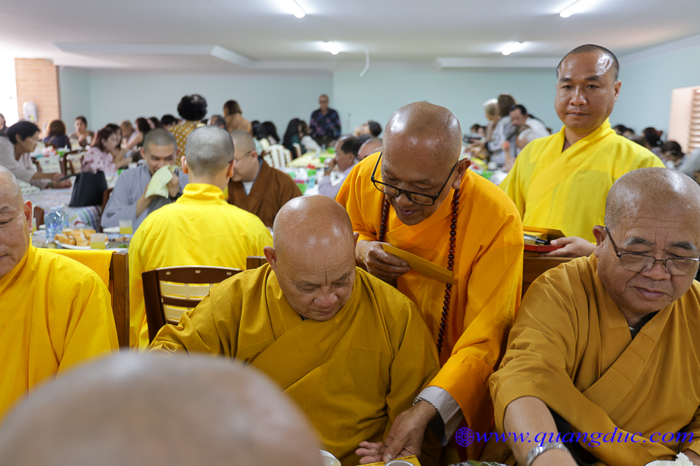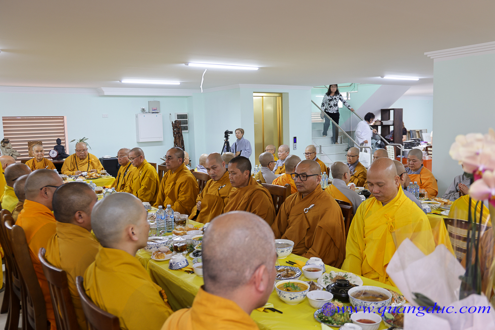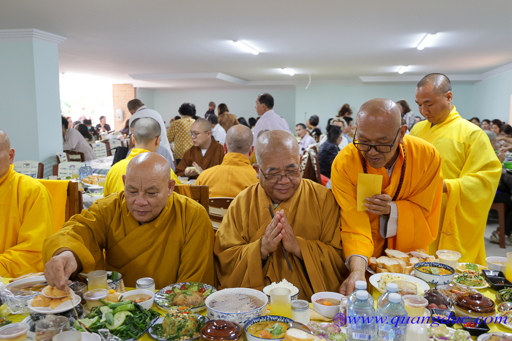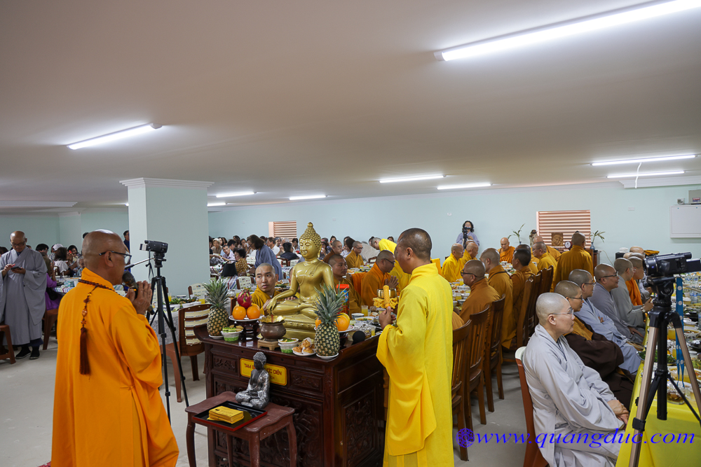Hoàn mãn phần nghi lễ buổi sáng, Ban Tổ Chức cung thỉnh chư Tôn Đức quang lâm trai đường thọ trai, hồi hướng công đức trong niềm hoan hỷ thanh lương.