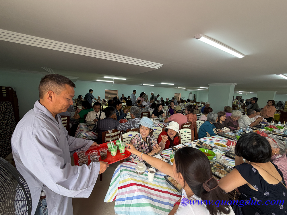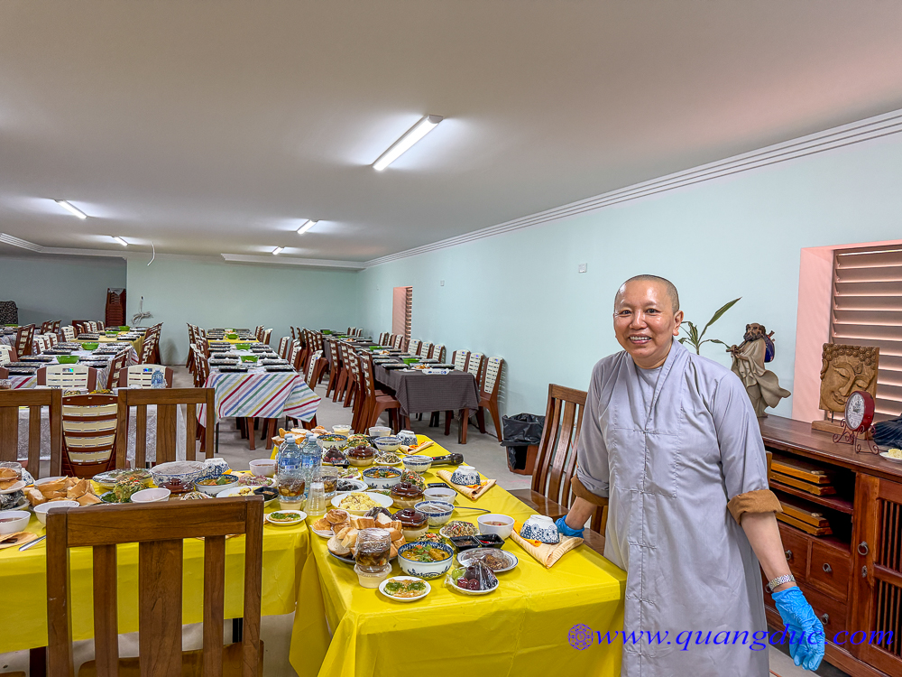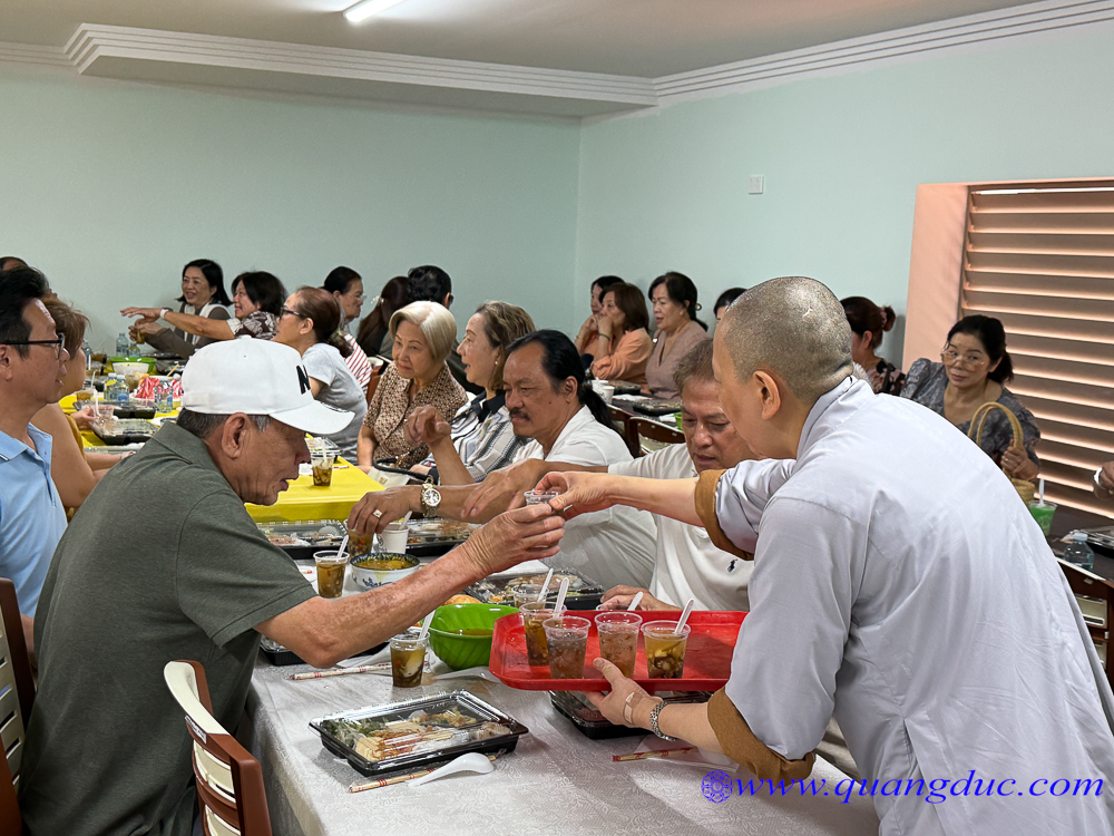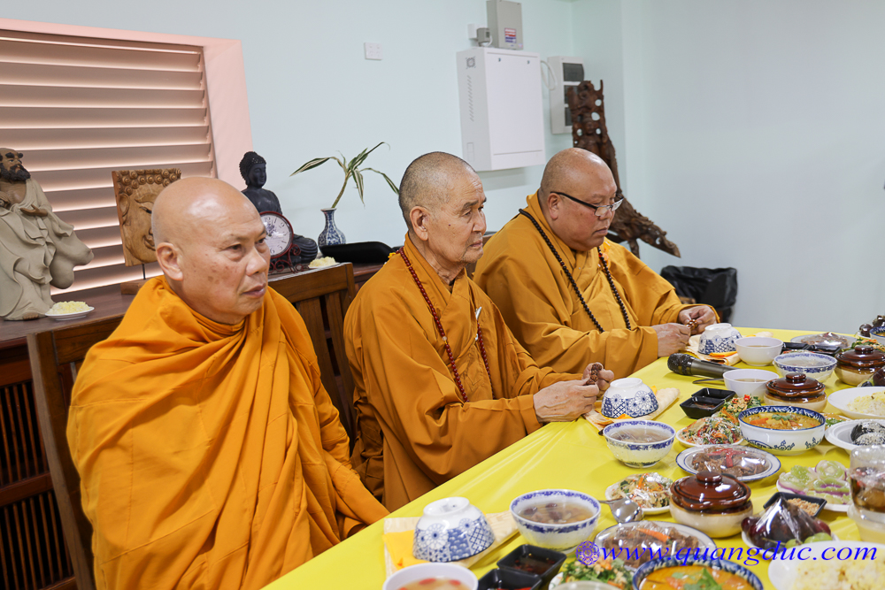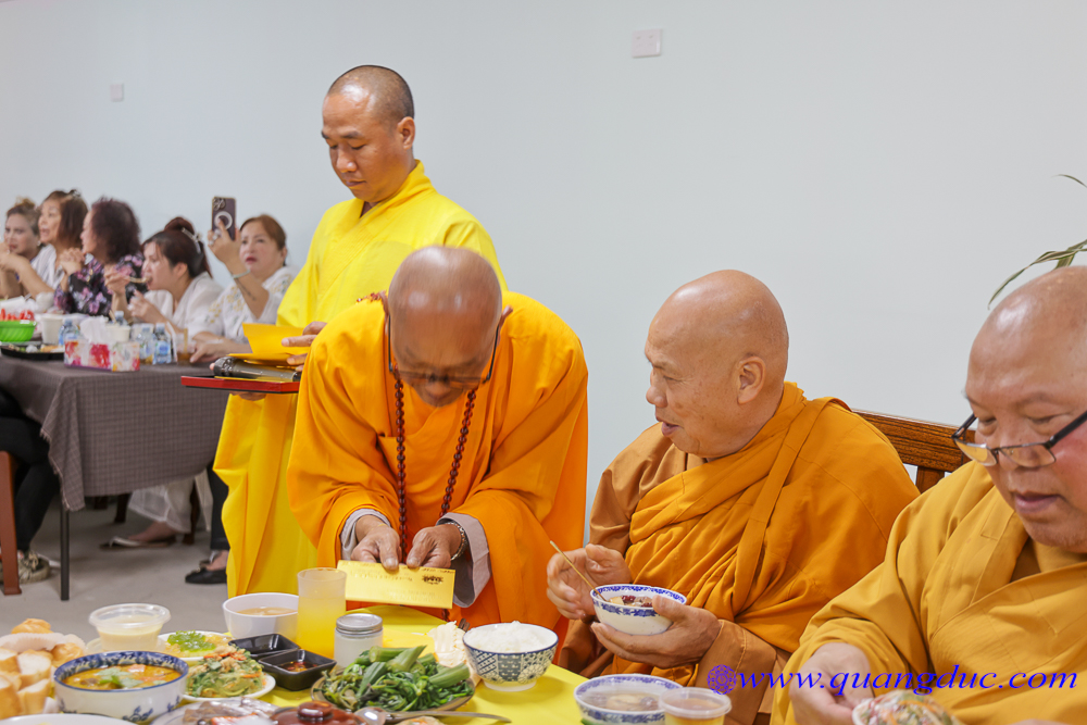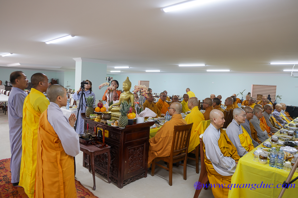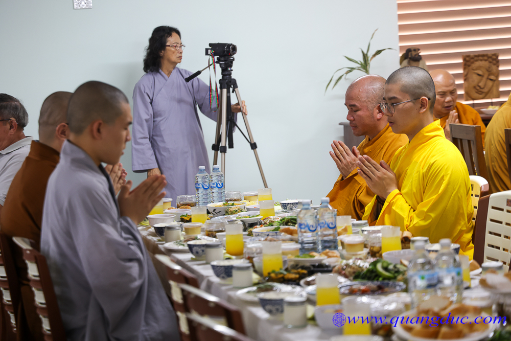 Hoàn mãn phần nghi lễ buổi sáng, Ban Tổ Chức cung thỉnh chư Tôn Đức quang lâm trai đường thọ trai, hồi hướng công đức trong niềm hoan hỷ thanh lương.
