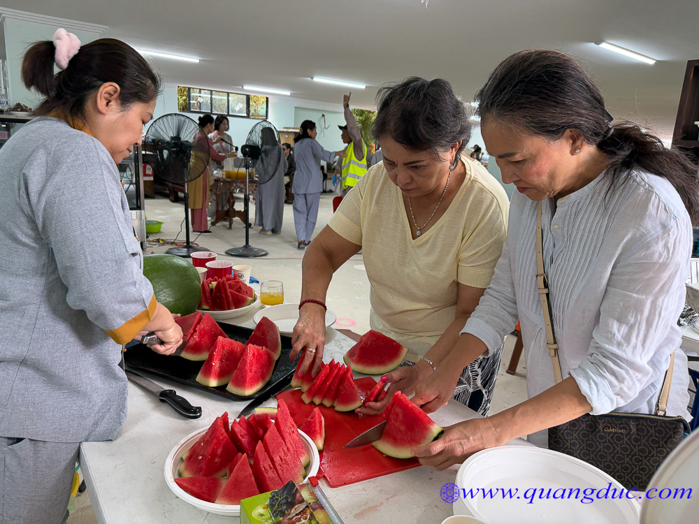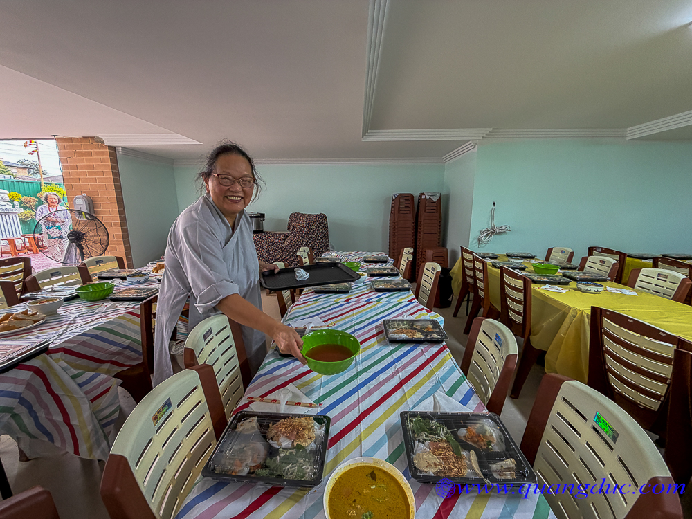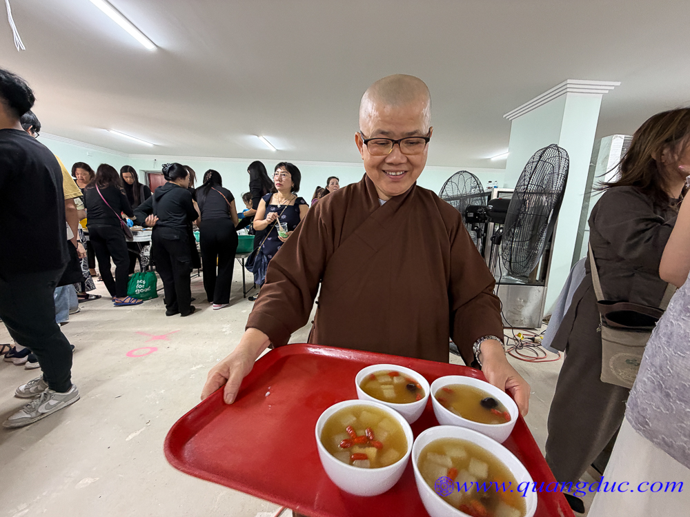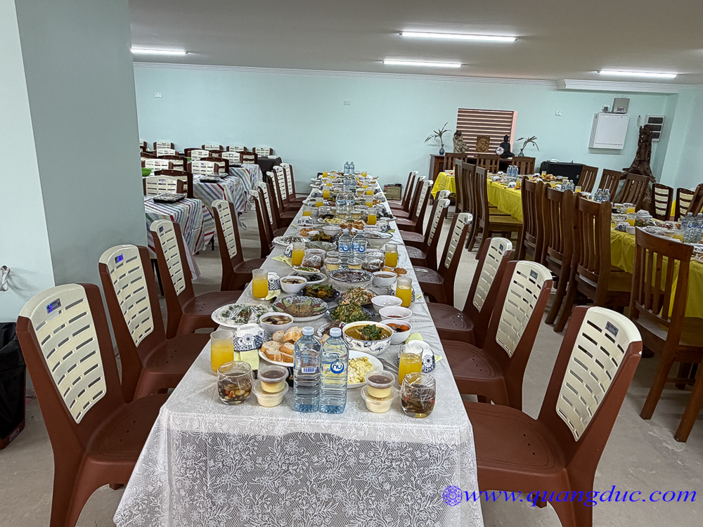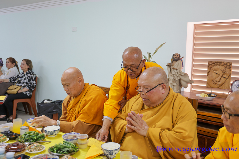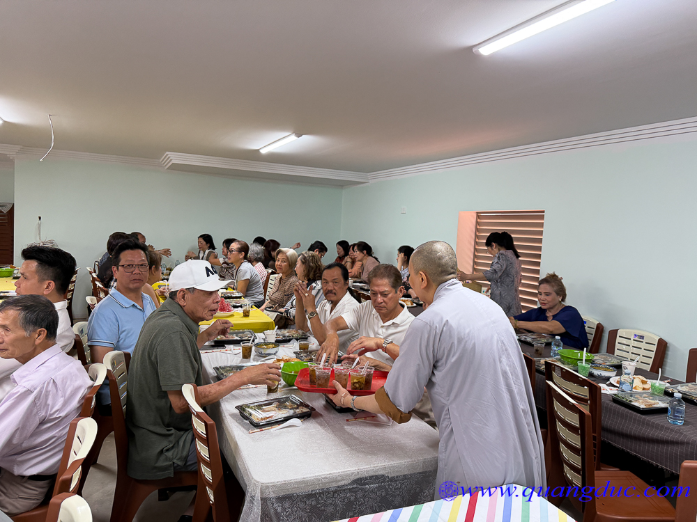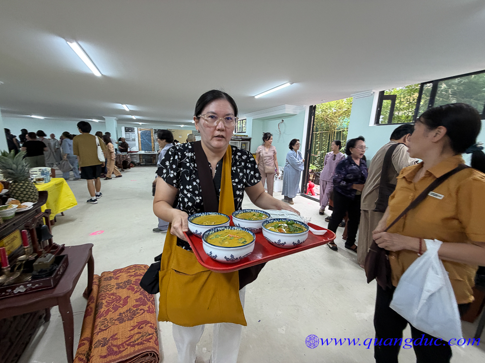 Hoàn mãn phần nghi lễ buổi sáng, Ban Tổ Chức cung thỉnh chư Tôn Đức quang lâm trai đường thọ trai, hồi hướng công đức trong niềm hoan hỷ thanh lương.