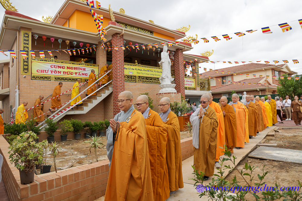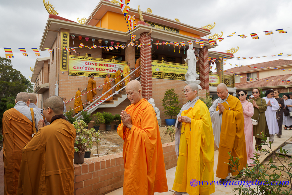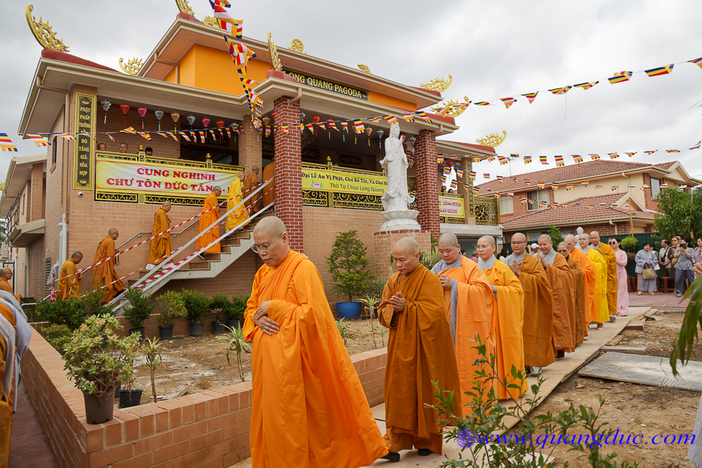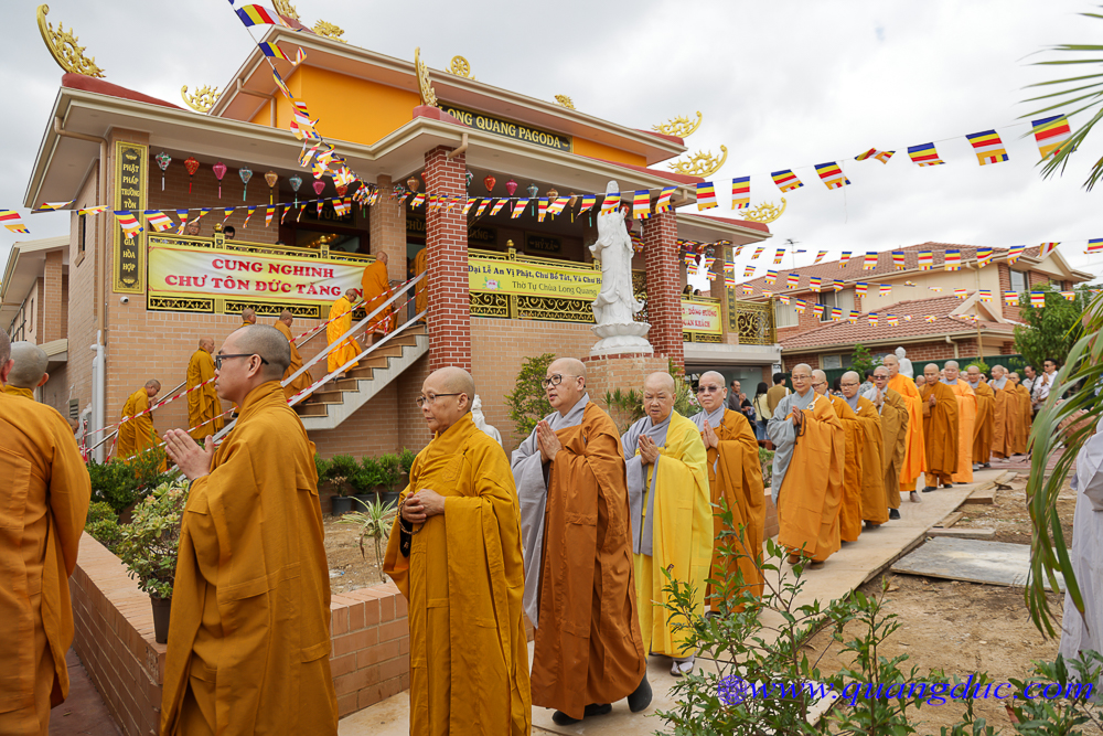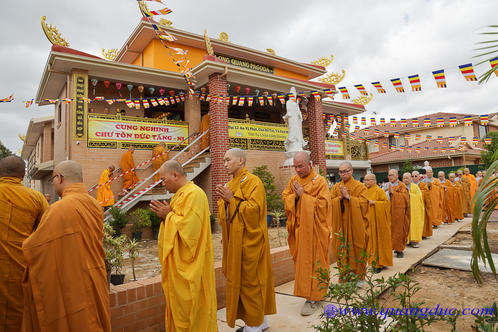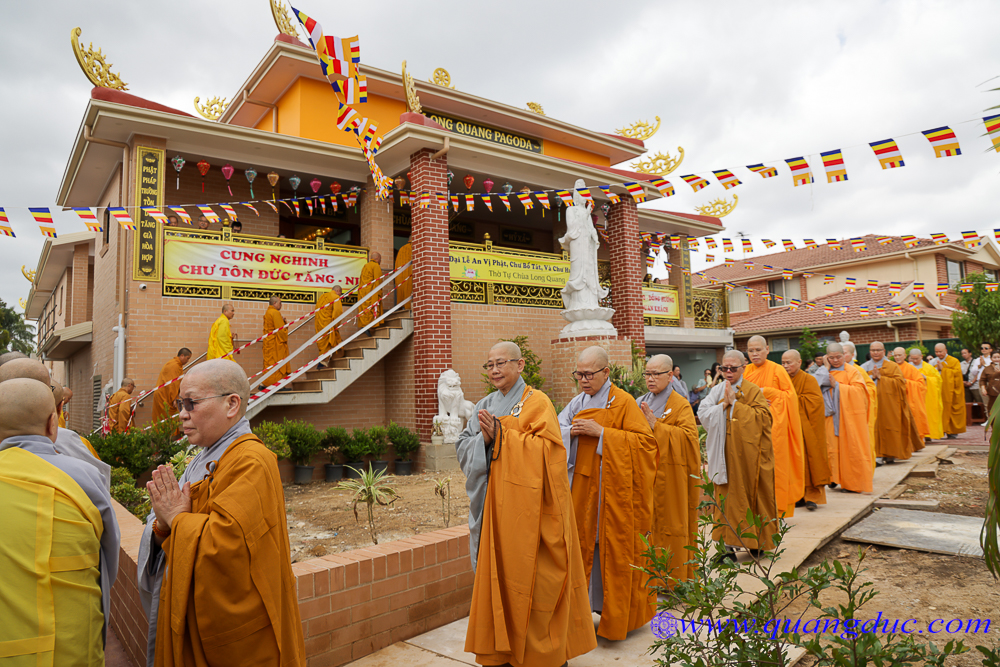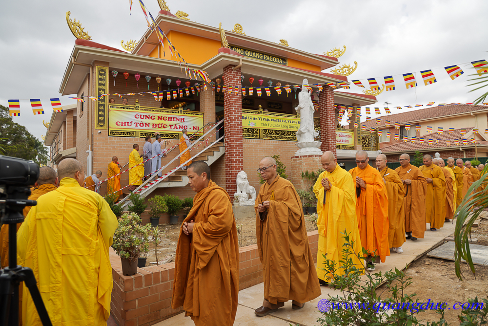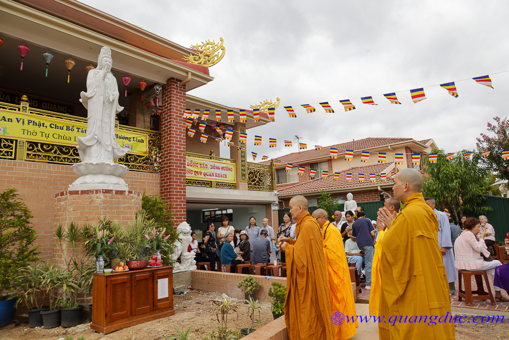 Và nghi lễ cúng thí thực Âm linh Cô hồn đã trang nghiêm khép lại Đại lễ An Vị Phật hôm nay trong bầu không khí thanh tịnh và sâu lắng. Dẫu cơ sở vật chất của đạo tràng Chùa Long Quang vẫn còn đang tiếp tục hoàn thiện 20% còn lại, nhưng đạo tâm đã viên thành, niềm tin đã an trú, và Đức Phật đã thật sự an vị trong lòng người con Phật. Lễ An Vị Phật tại Chùa Long Quang hôm nay không chỉ là sự hoàn mãn của một nghi lễ truyền thống, mà còn là biểu tượng sống động của tinh thần kiên trì, hy sinh và niềm tin bất hoại nơi Tam Bảo của TT Trụ Trì và quý toàn thể Phật tử bổn tự trong suốt hơn ba năm gian nan kiến lập đạo tràng nơi xứ người. Nguyện đem công đức lành này hồi hướng mười phương pháp giới, kính cầu hồng ân Tam Bảo gia hộ cho Chùa Long Quang sớm được hoàn thành viên mãn, trở thành mái nhà tâm linh vững chãi, nơi nương tựa tu học và gieo trồng phước trí cho bao thế hệ Phật  trên đất Úc Châu, để ánh sáng Chánh Pháp được lưu truyền mãi mãi không cùng.