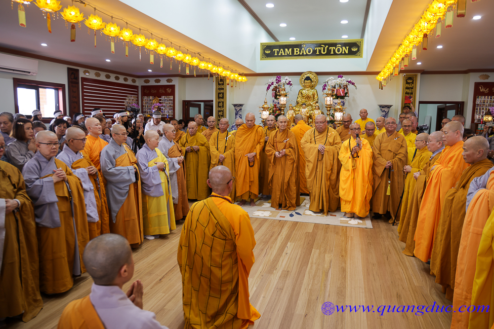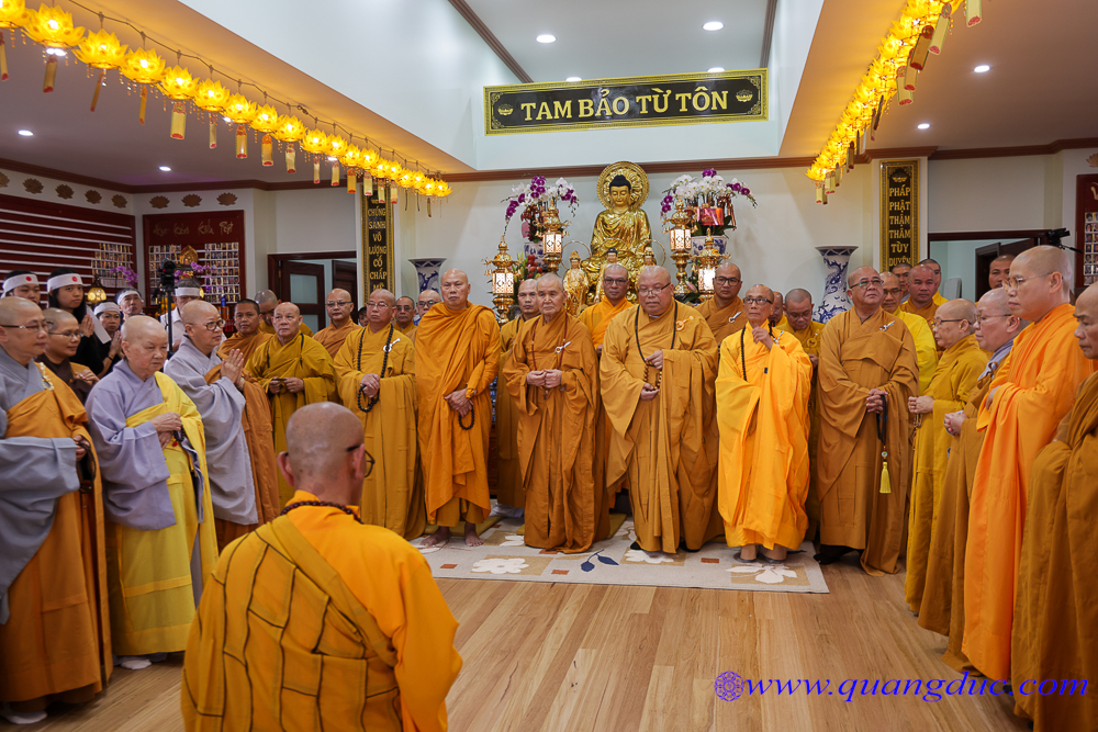 Đúng 9 giờ 30 phút, Chư Tôn Hòa Thượng, Chư Thượng Tọa, Đại Đức Tăng, chư Ni Trưởng, Ni Sư, Sư Cô đã quang lâm chứng minh Đại lễ trong niềm hân hoan vô biên của toàn thể đại chúng.