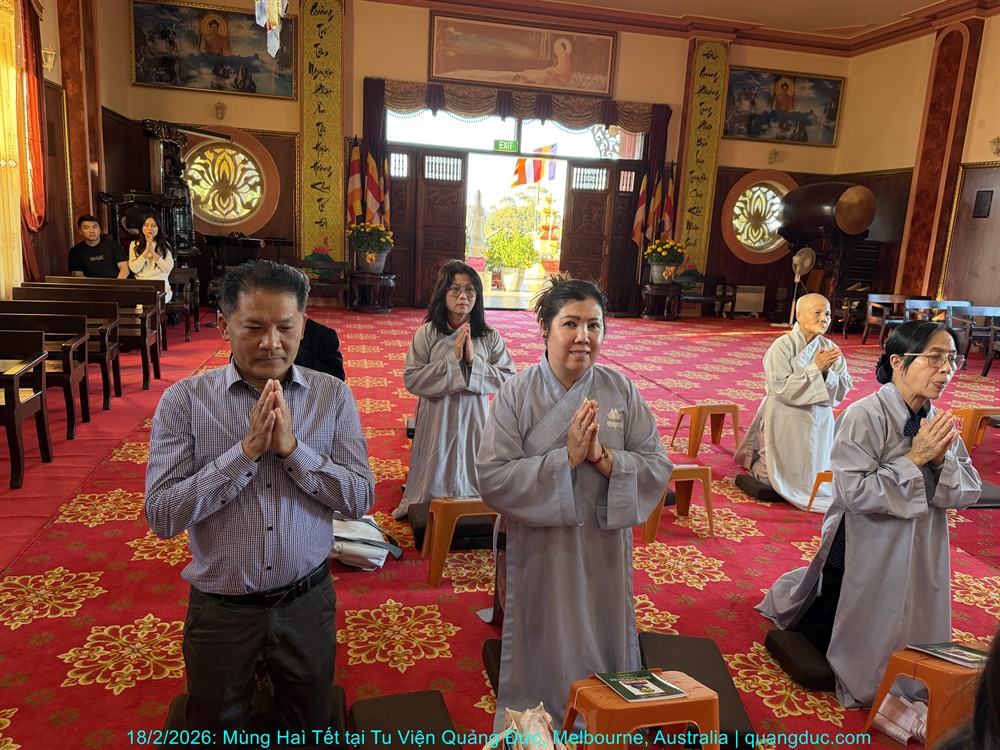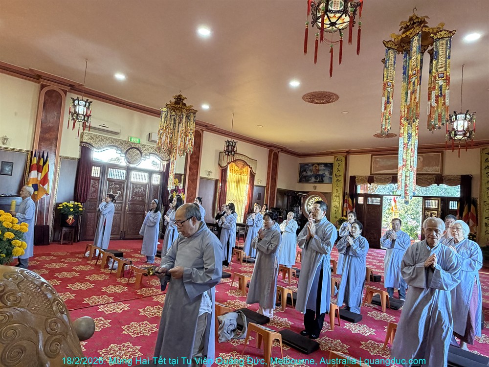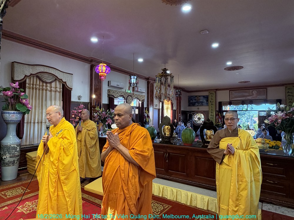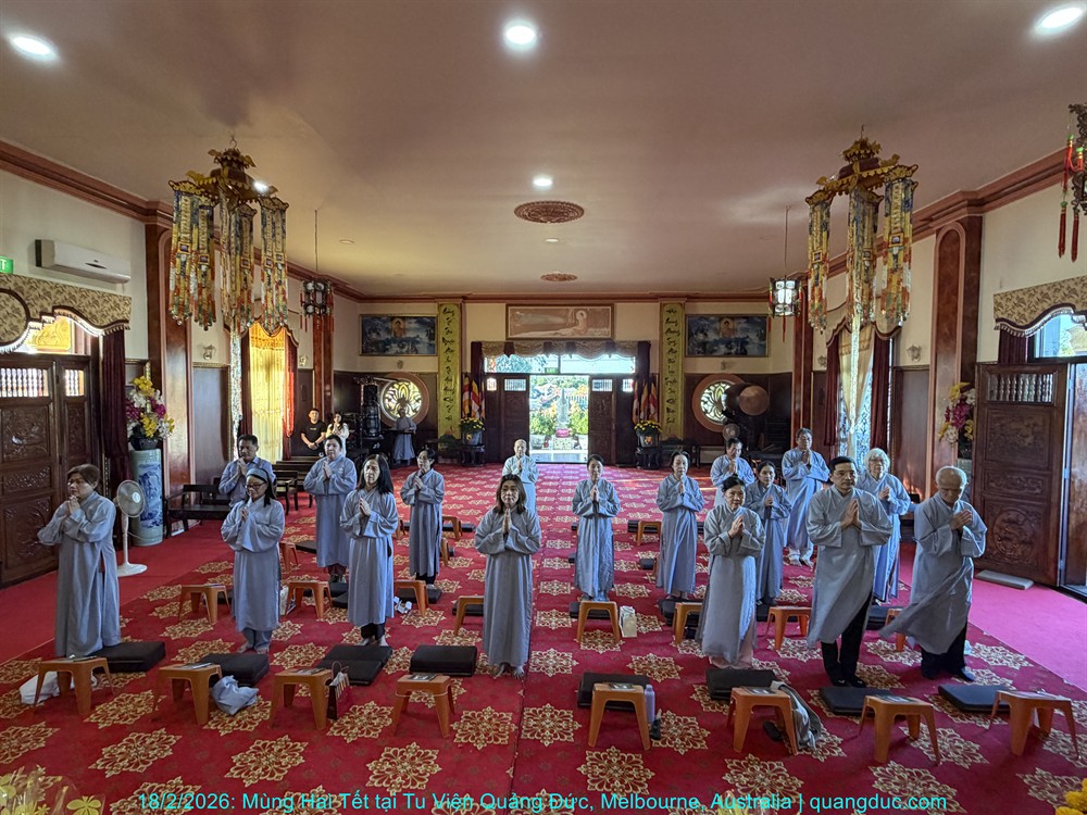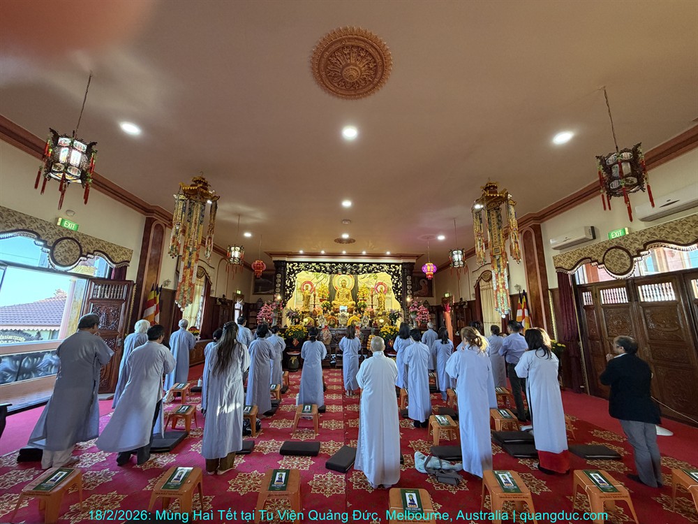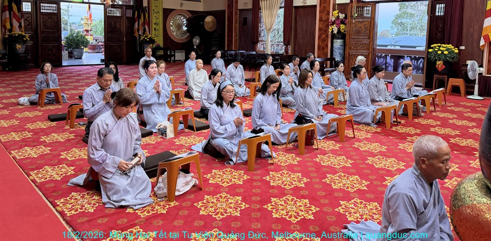 Vào lúc 5 giờ chiều, Thứ Năm ngày 29 tháng 01 năm 2026, trong không khí trang nghiêm và thanh tịnh, Thượng Tọa Trụ Trì Tu Viện Quảng Đức Thích Nguyên Tạng, cùng Đại Đức Tri Sự Thích Đăng Từ và khoảng 50 Phật tử thuộc đạo tràng Tu Viện Quảng Đức, đã vân tập về chánh điện Chùa Quang Minh (Braybrook, Victoria) để tụng kinh và thành kính chiêm bái Xá Lợi Đức Phật.