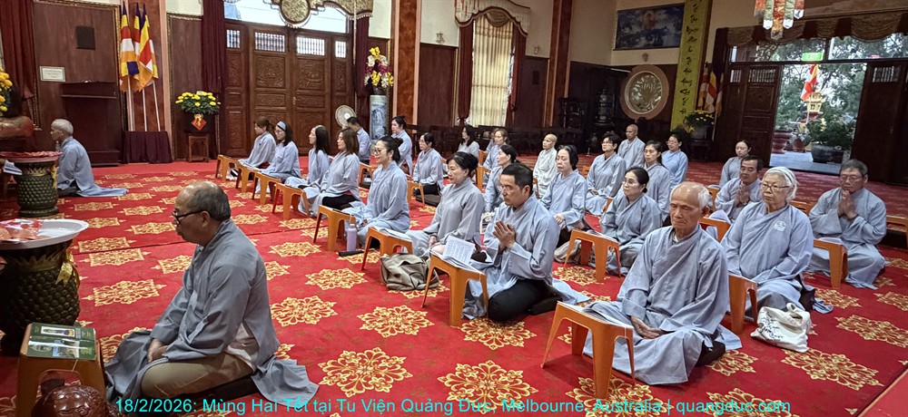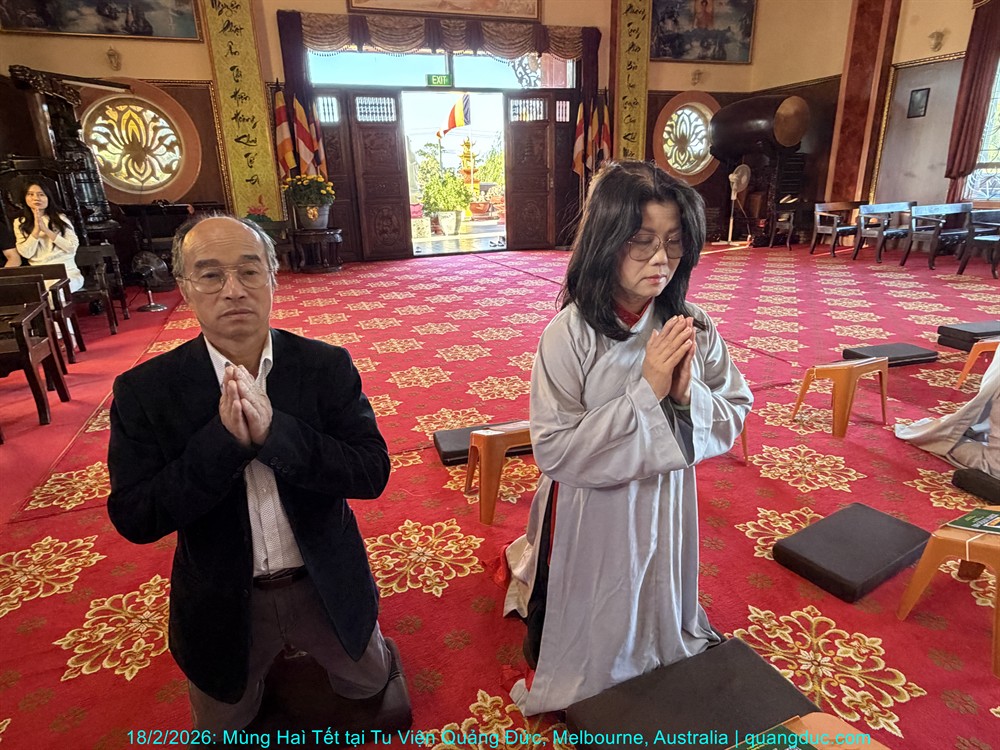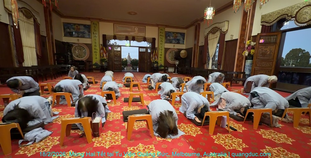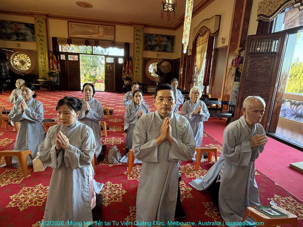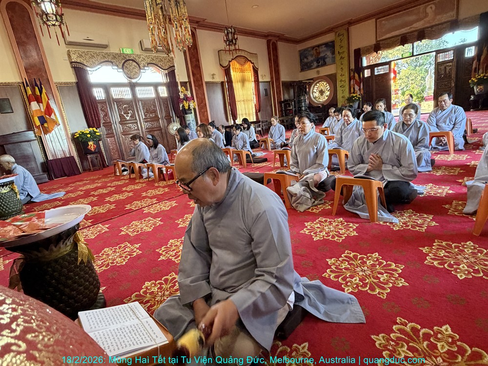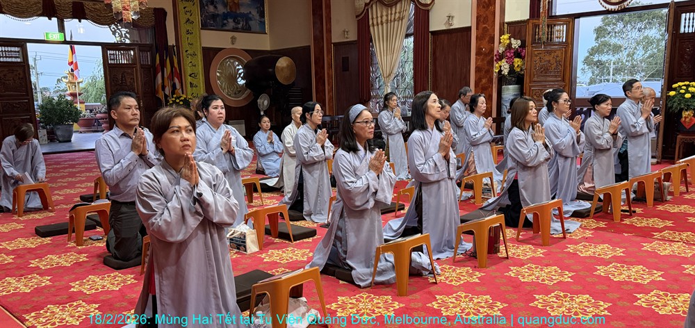 Vào lúc 5 giờ chiều, Thứ Năm ngày 29 tháng 01 năm 2026, trong không khí trang nghiêm và thanh tịnh, Thượng Tọa Trụ Trì Tu Viện Quảng Đức Thích Nguyên Tạng, cùng Đại Đức Tri Sự Thích Đăng Từ và khoảng 50 Phật tử thuộc đạo tràng Tu Viện Quảng Đức, đã vân tập về chánh điện Chùa Quang Minh (Braybrook, Victoria) để tụng kinh và thành kính chiêm bái Xá Lợi Đức Phật.