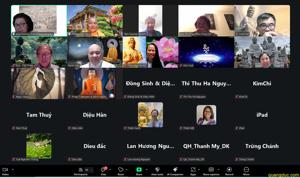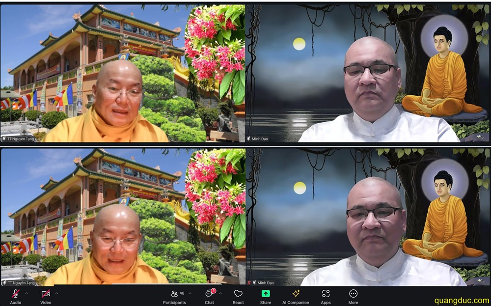 Quảng Đức từ quang chiếu cõi thiền, Tăng Ni đạo hạnh sáng tâm nguyên. Phật tử tinh chuyên bền chí nguyện, Nương theo ân đức bậc cao hiền. Ngưỡng mộ đức - tài Thầy Nguyên Tạng Chí nguyện độ sinh khắp mọi miền Lời kinh nhẹ rót như mưa pháp, Từng bước khoan thai ấm cửa thiền
