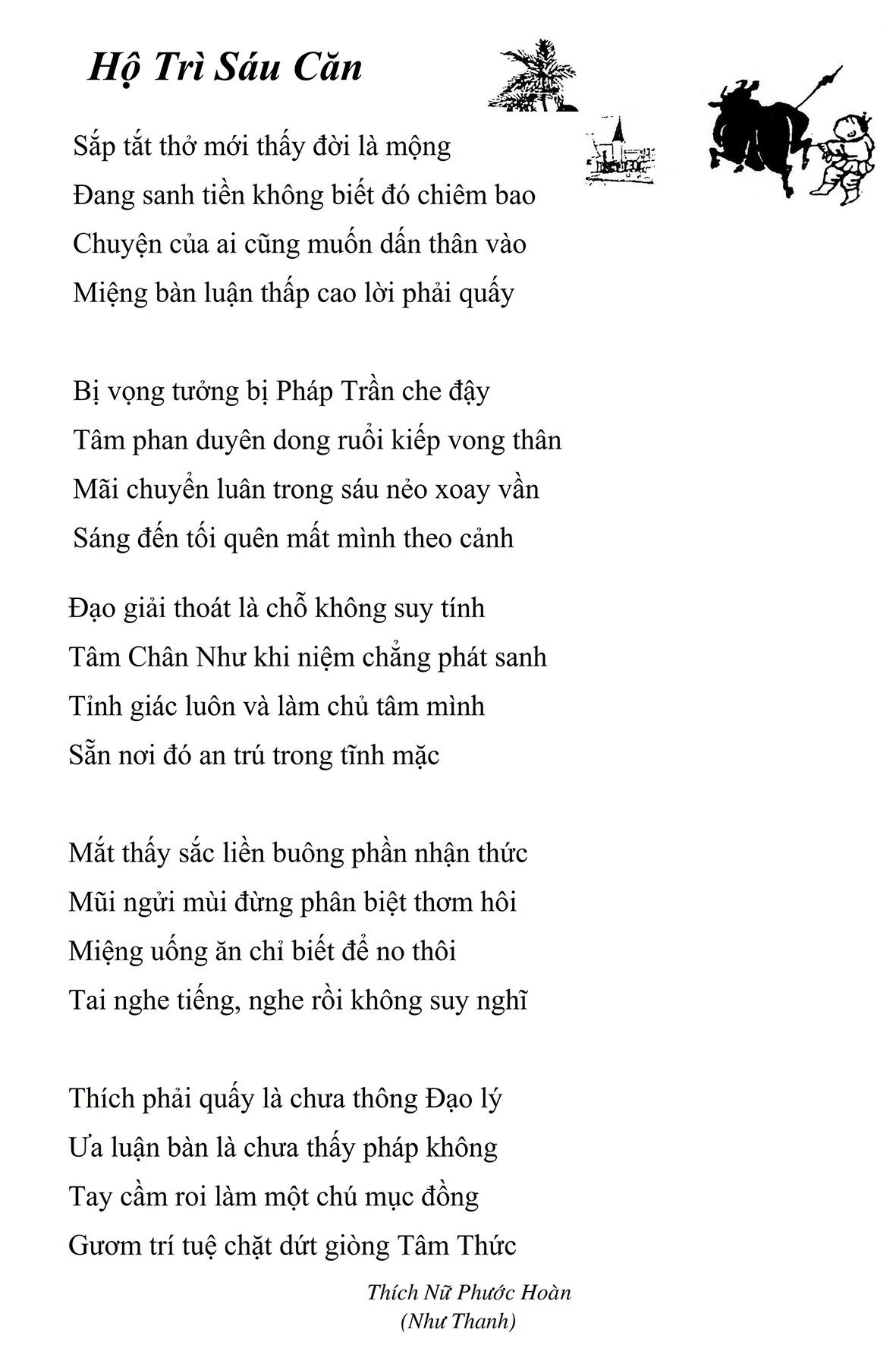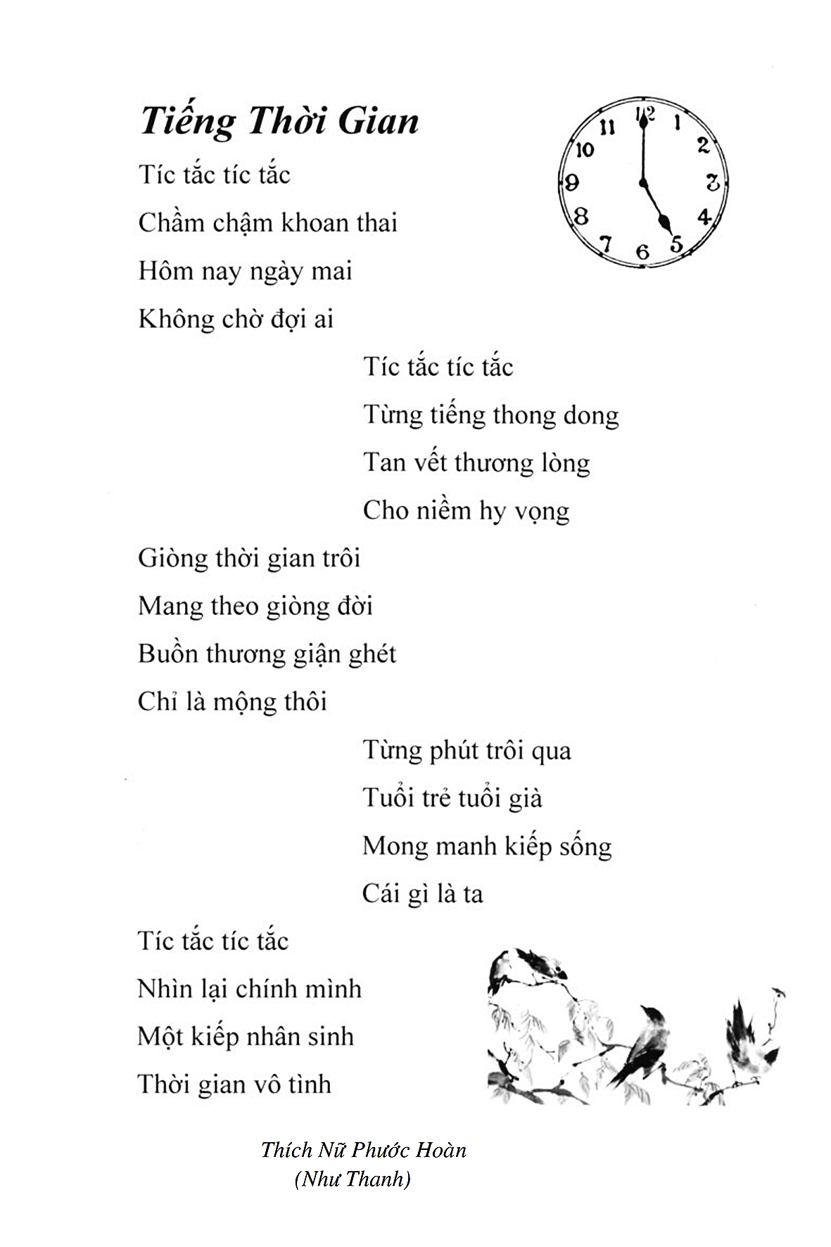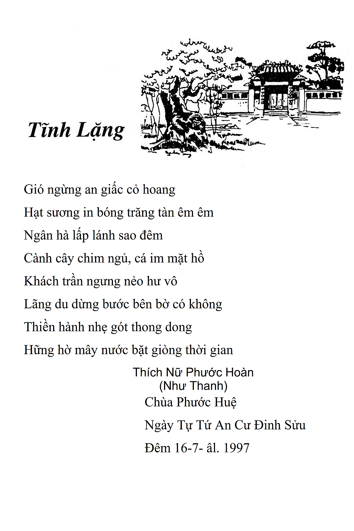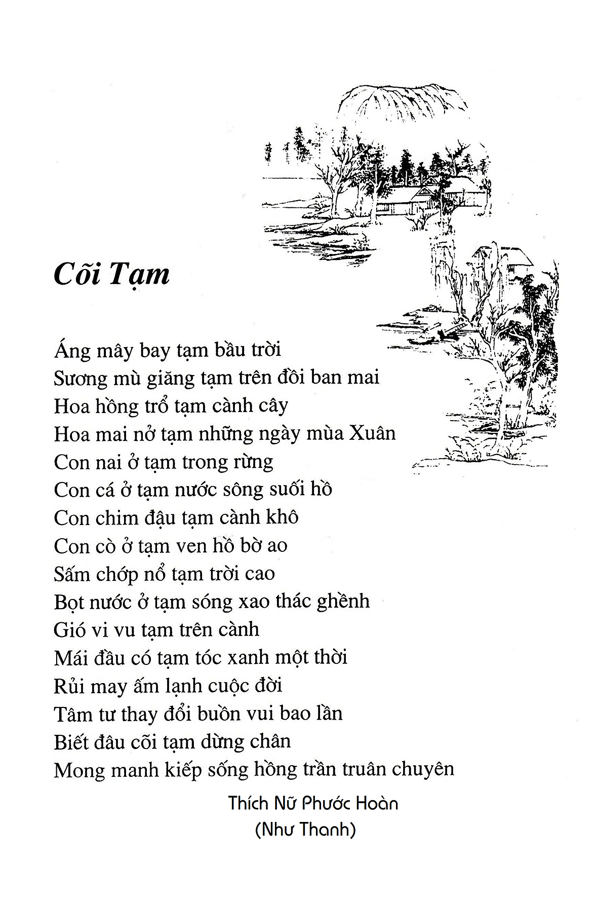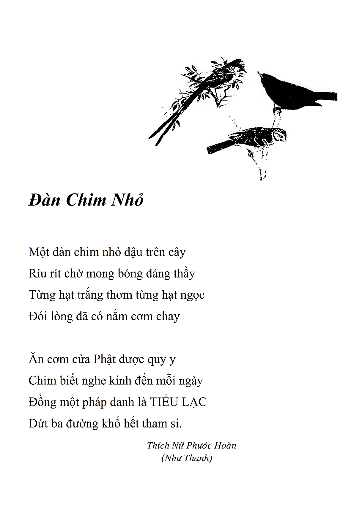 Là một nữ tu sĩ chân yếu tay mềm, Phật sự đa đoan, lòng tôi vẫn cảm thấy tràn đầy nguồn an ủi vô biên trong những lúc mệt nhọc. Những ngày gần đây, các bài thơ trong tập thơ Hoa Thiền, mang tâm ý Phật Pháp, được Cô Đặng Lan và các thi sĩ ngâm vịnh, được Phật tử Tâm Nghiêm đọc vào đĩa, được Nhạc sĩ Nguyễn Nhật Tân phổ nhạc… với những niềm khích lệ đó, khiến tôi cố gắng sáng tác thêm những vần thơ mới. Và hôm nay, tập thơ Hoa Thiền tái bản, mang vóc dáng trang trọng, gói trọn một nội dung hồn thơ và ý nhạc, khiến cho lời thơ nhẹ nhàng bay vút khắp nơi và tuôn chảy vào tận cõi lòng người. Tôi xin chân thành cảm nhận tất cả và trân trọng khắc ghi vào lòng một kỷ niệm đẹp trong suốt hành trình dấn thân vì Đạo.