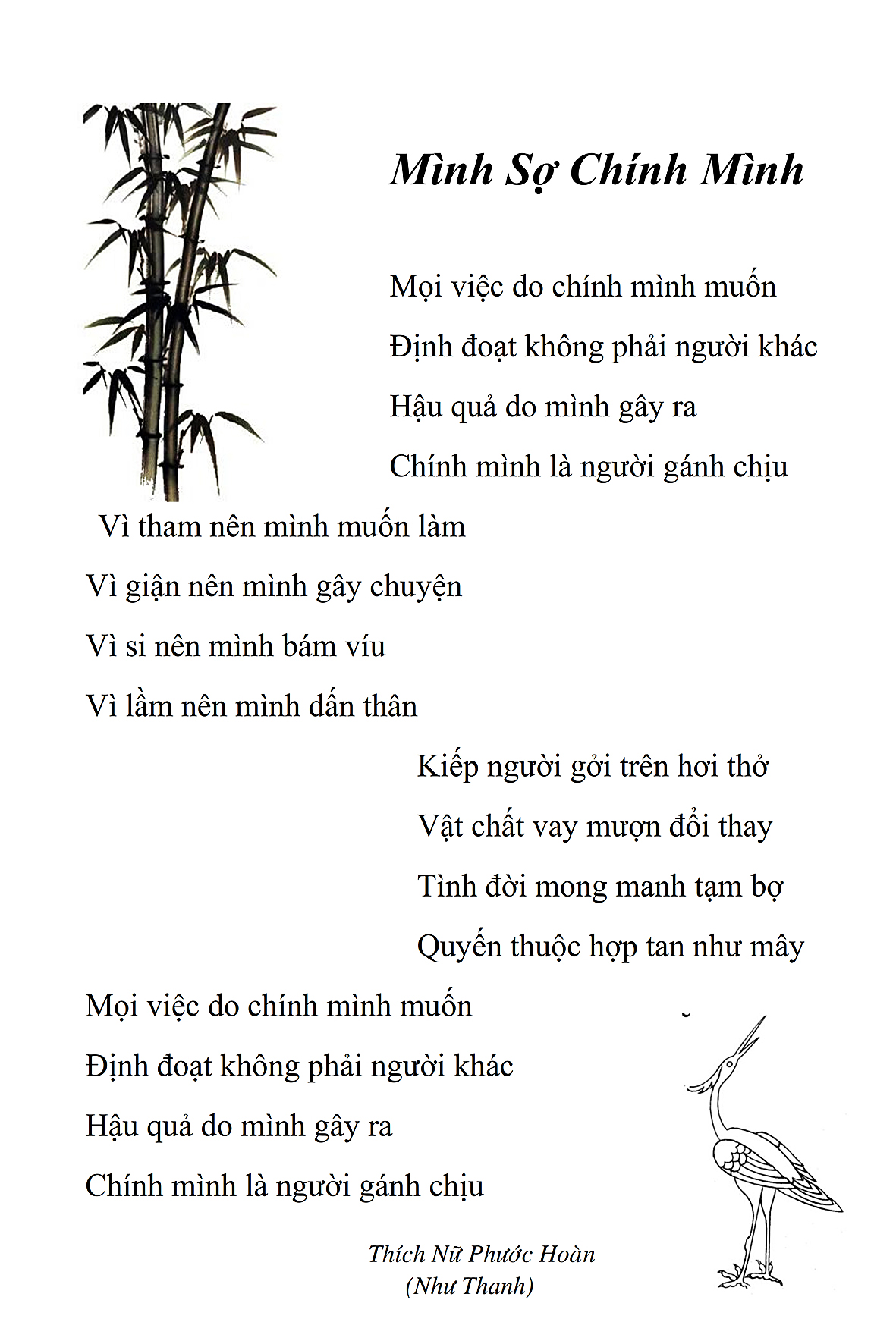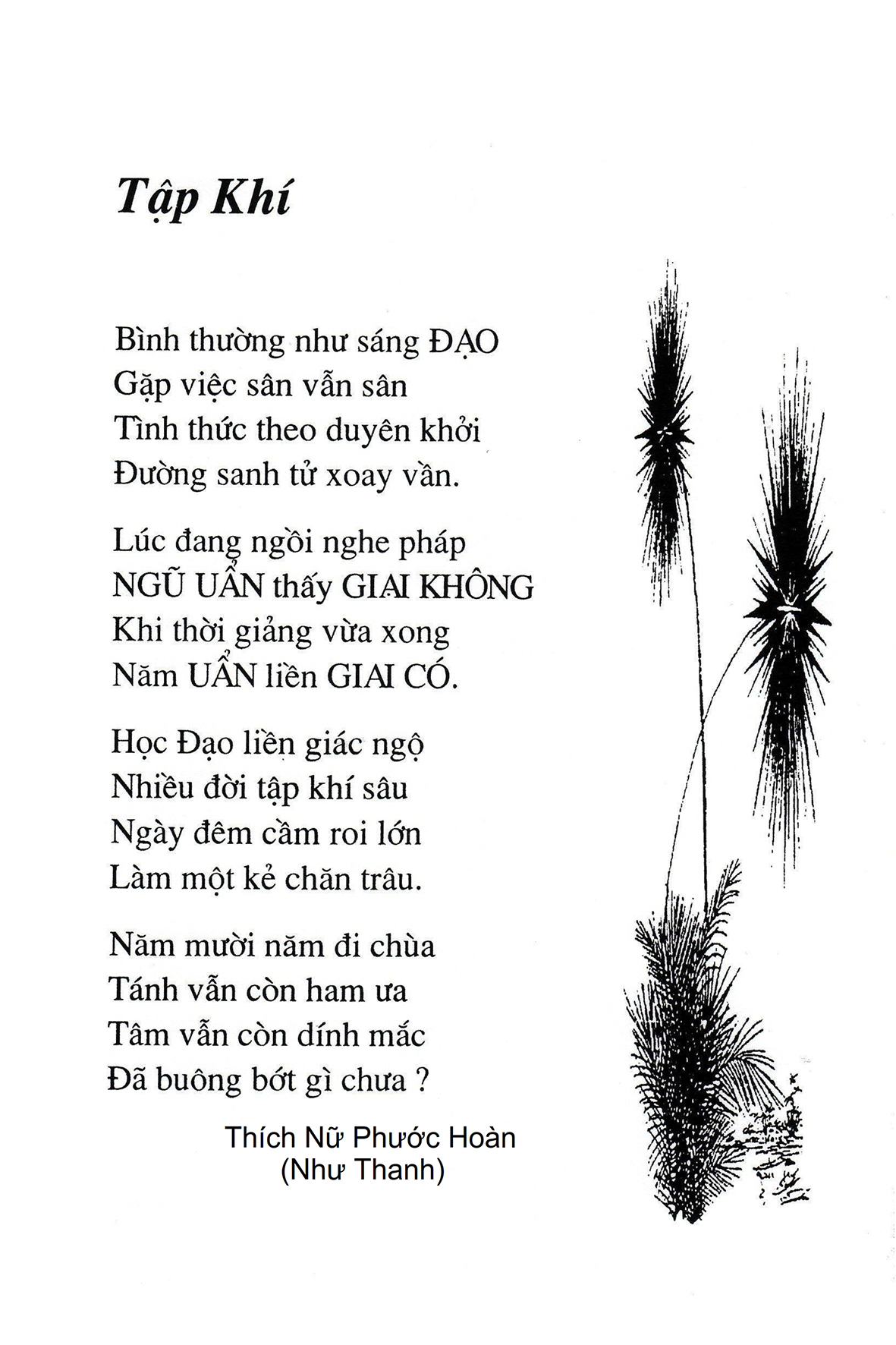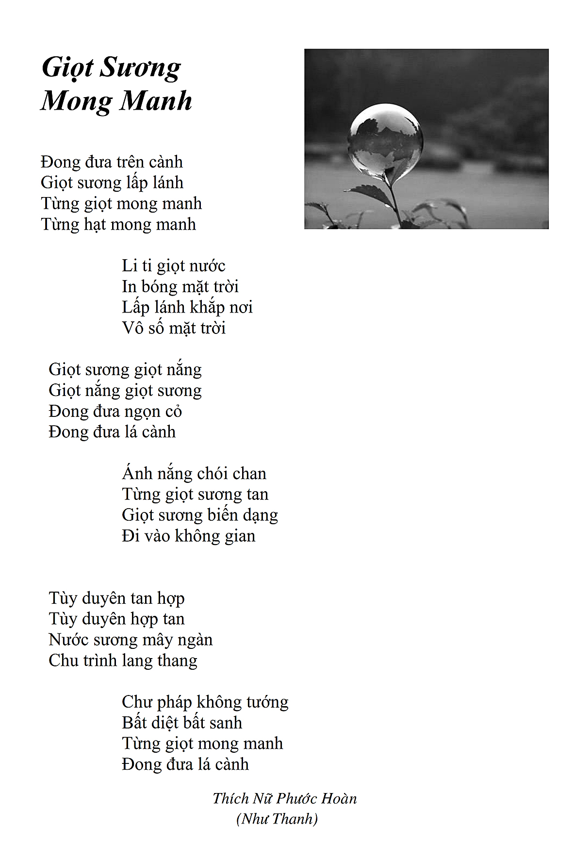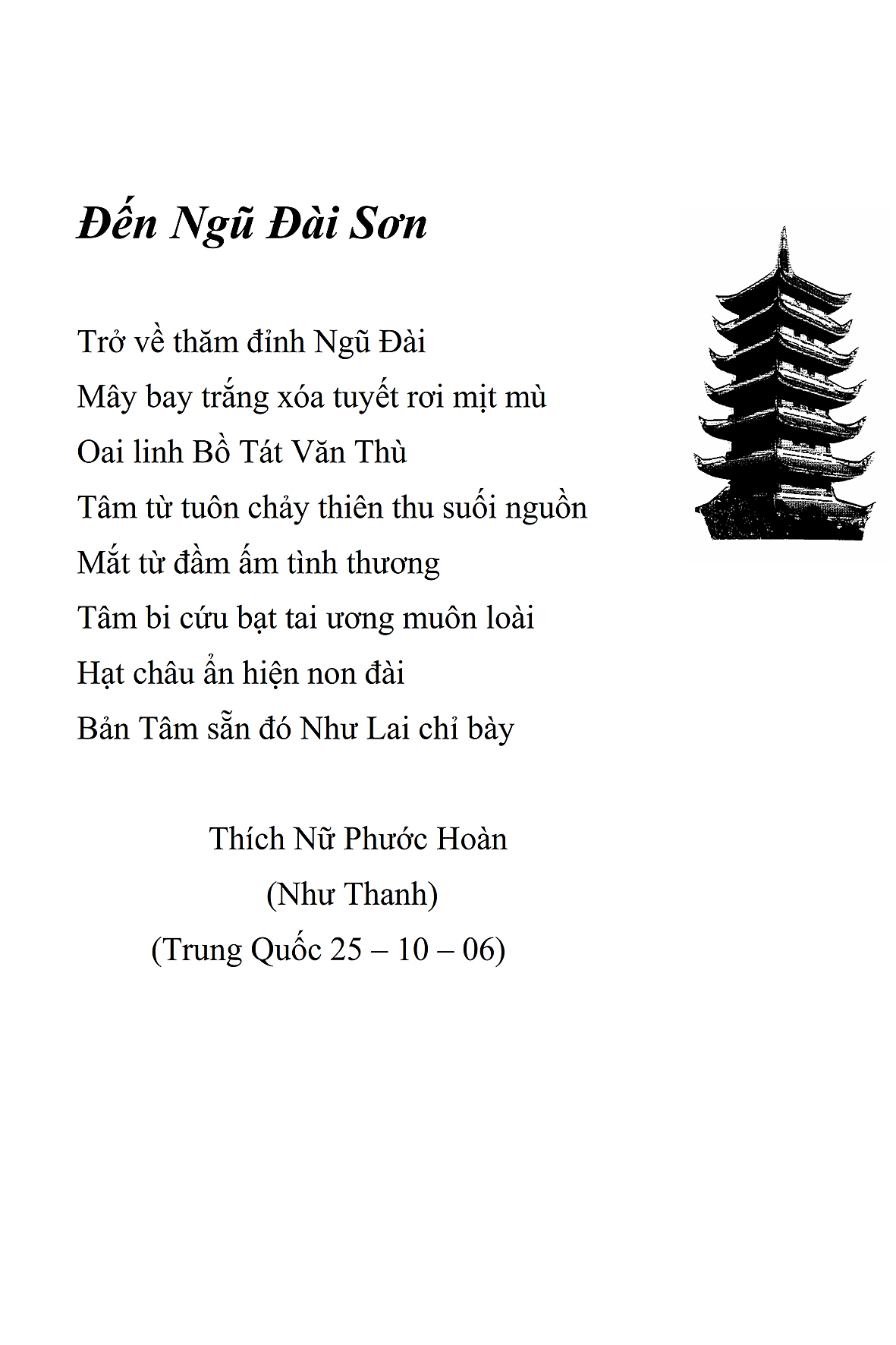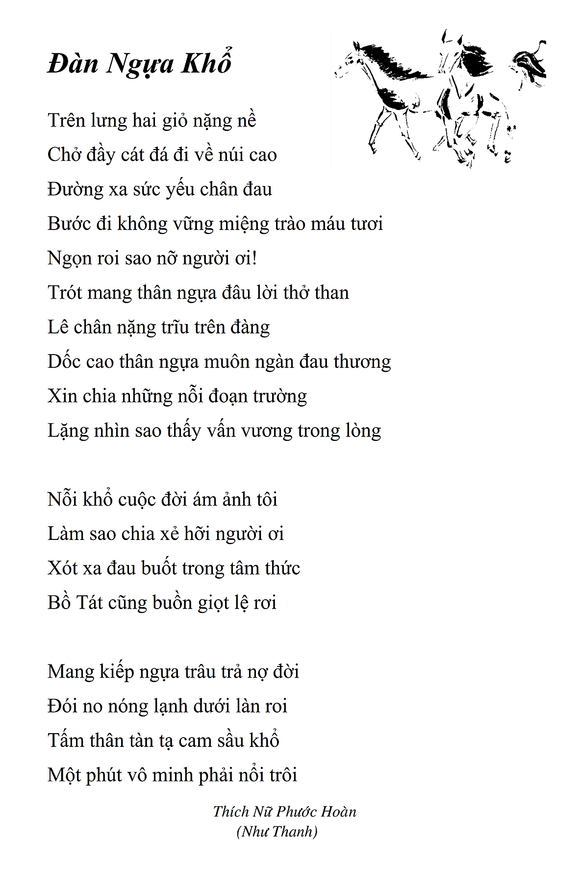Là một nữ tu sĩ chân yếu tay mềm, Phật sự đa đoan, lòng tôi vẫn cảm thấy tràn đầy nguồn an ủi vô biên trong những lúc mệt nhọc. Những ngày gần đây, các bài thơ trong tập thơ Hoa Thiền, mang tâm ý Phật Pháp, được Cô Đặng Lan và các thi sĩ ngâm vịnh, được Phật tử Tâm Nghiêm đọc vào đĩa, được Nhạc sĩ Nguyễn Nhật Tân phổ nhạc… với những niềm khích lệ đó, khiến tôi cố gắng sáng tác thêm những vần thơ mới. Và hôm nay, tập thơ Hoa Thiền tái bản, mang vóc dáng trang trọng, gói trọn một nội dung hồn thơ và ý nhạc, khiến cho lời thơ nhẹ nhàng bay vút khắp nơi và tuôn chảy vào tận cõi lòng người. Tôi xin chân thành cảm nhận tất cả và trân trọng khắc ghi vào lòng một kỷ niệm đẹp trong suốt hành trình dấn thân vì Đạo.