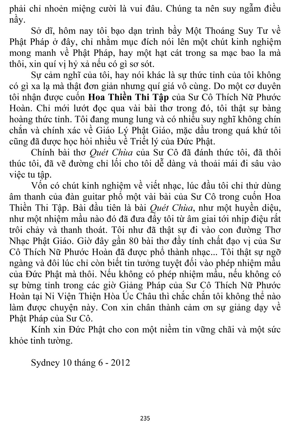 Tôi có thói quen, sau khi tụng kinh buổi sáng xong, thường ngồi uống một ly trà trước khi dùng điểm tâm. Vừa uống trà, tôi vừa lướt qua trang Thắng Hoan Thi Tập và tình cờ đọc được bài thơ Thiền Trà của Hòa thượng. Tôi cảm thấy thú vị và bỗng dưng nhớ Hòa thượng. Tôi nhớ không phải vì sự bịn rịn của thế gian, mà nhớ cái đức, cái tài và cái tính hào sảng của Ngài.
