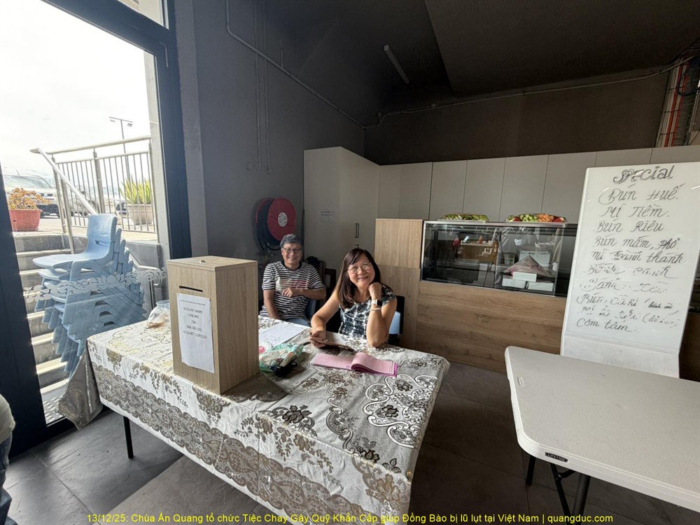 Trưa hôm nay Thứ Bảy, ngày 13/12/2025, tại Chùa Ấn Quang, vùng Cairlea, tiểu bang Victoria, đã long trọng diễn ra Tiệc Chay Gây Quỹ Khẩn Cấp nhằm hỗ trợ đồng bào miền Trung Việt Nam bị thiệt hại nặng nề do đợt lũ quét nghiêm trọng vừa qua.