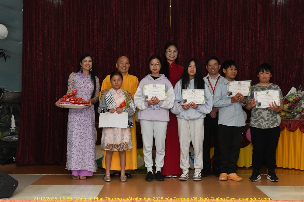 Lễ Tổng Kết & Phát Thưởng Năm Học 2025 của Trường Việt Ngữ Quảng Đức đã diễn ra thành công tốt đẹp, để lại nhiều kỷ niệm đẹp trong lòng người tham dự.
