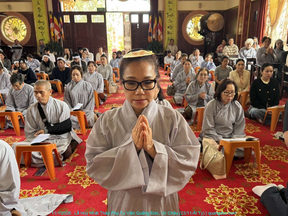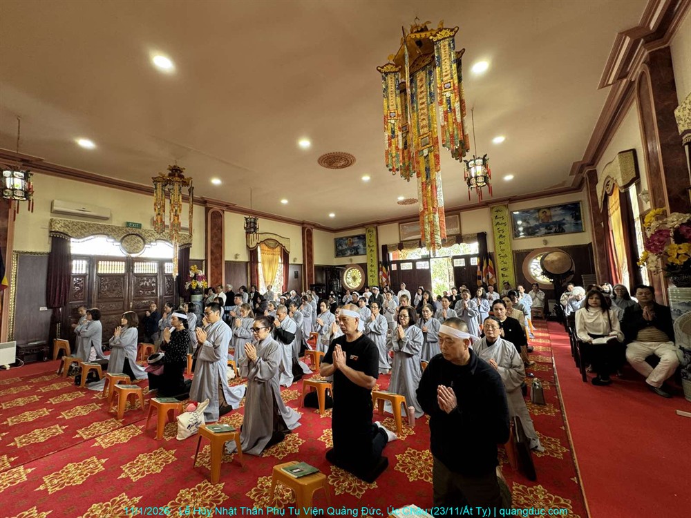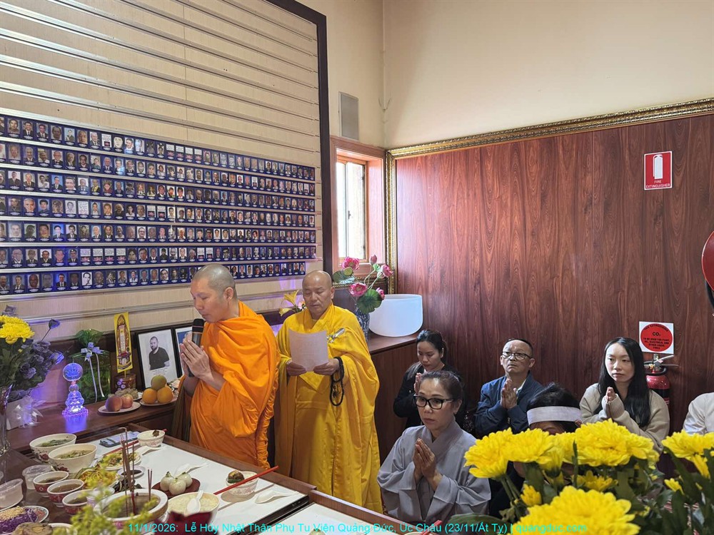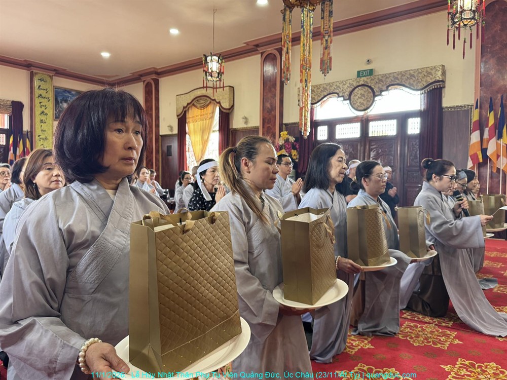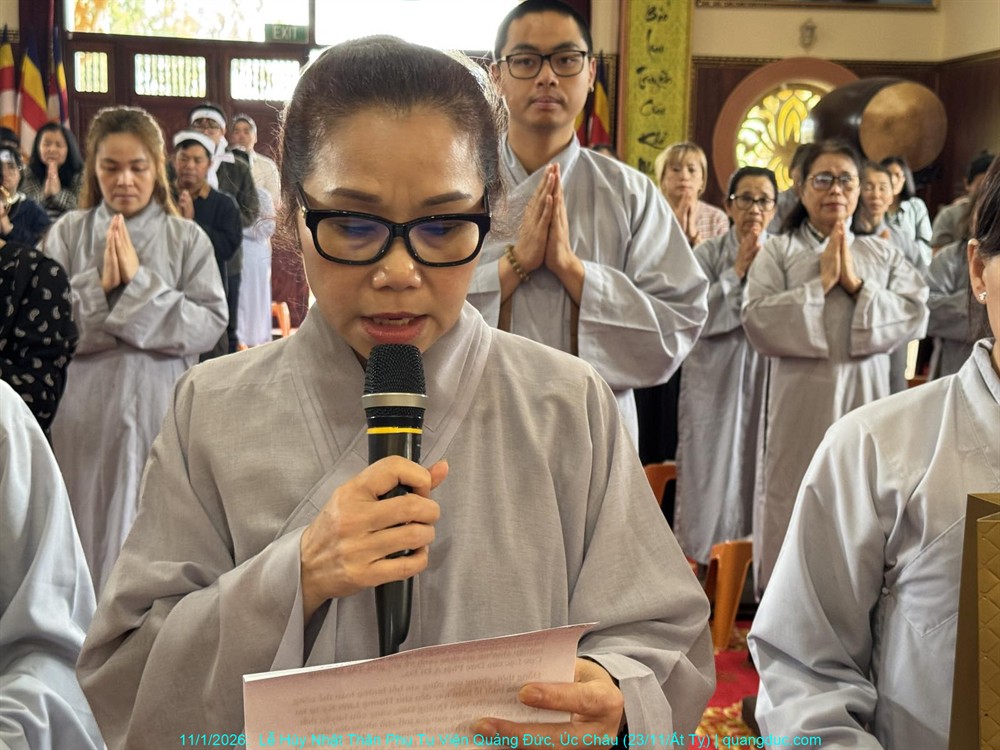 Đồng thời, chúng con cũng xin hồi hướng toàn thể công đức của buổi lễ hôm nay đến chư Hương Linh Ký tự tại Linh Đường Tu Viện Quảng Đức, cùng cửu huyền thất tổ, đa sanh phụ mẫu, oan gia trái chủ nhiều đời nhiều kiếp, cùng tất cả pháp giới chúng sanh, đồng được thấm nhuần Phật pháp, kết duyên Bồ-đề, xa lìa khổ não, hướng về an vui giải thoát.