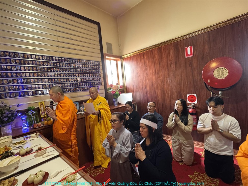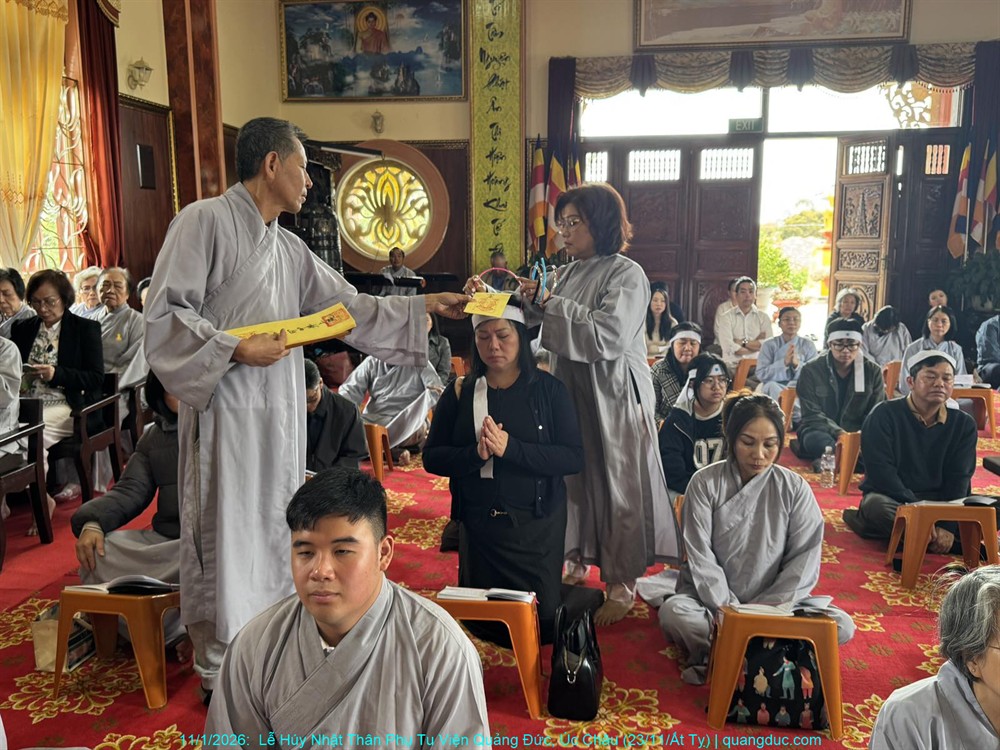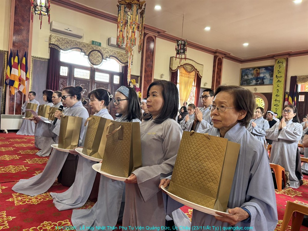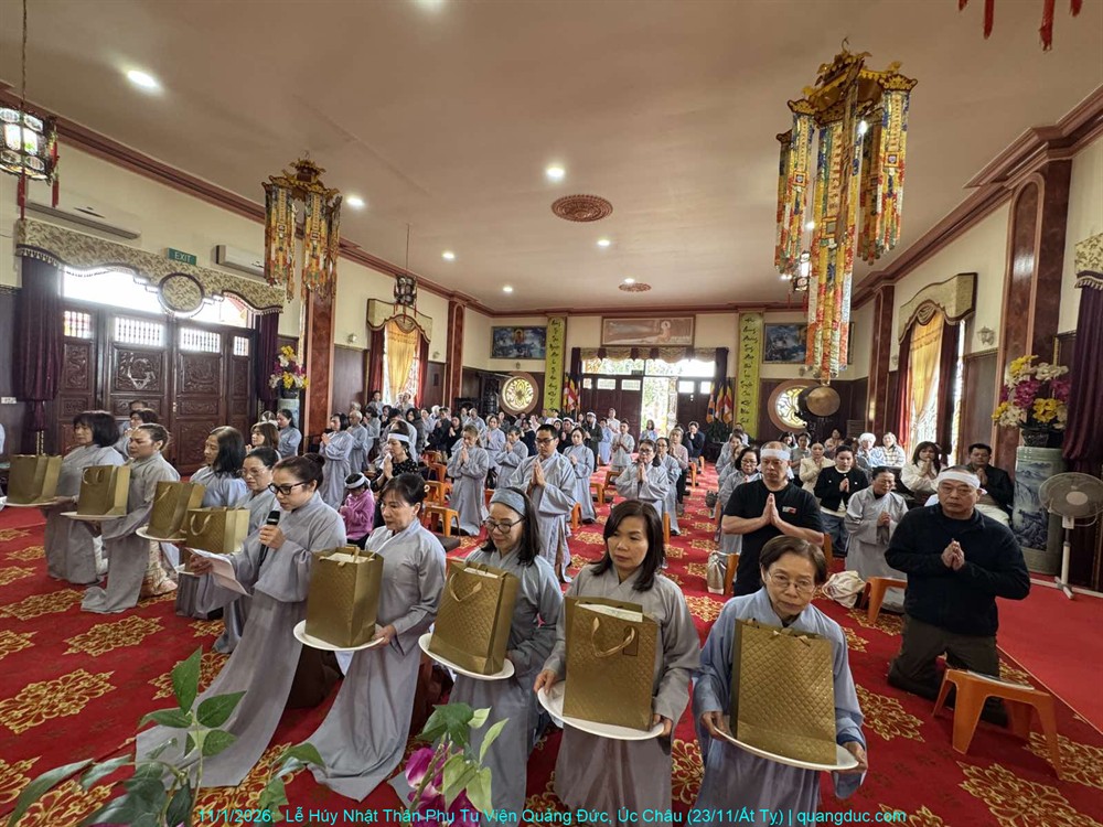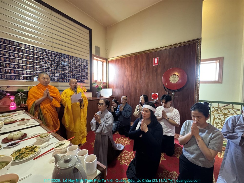 Đồng thời, chúng con cũng xin hồi hướng toàn thể công đức của buổi lễ hôm nay đến chư Hương Linh Ký tự tại Linh Đường Tu Viện Quảng Đức, cùng cửu huyền thất tổ, đa sanh phụ mẫu, oan gia trái chủ nhiều đời nhiều kiếp, cùng tất cả pháp giới chúng sanh, đồng được thấm nhuần Phật pháp, kết duyên Bồ-đề, xa lìa khổ não, hướng về an vui giải thoát.