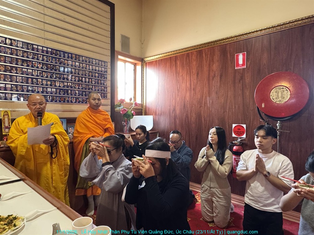 Hôm nay, trong giờ phút trang nghiêm thanh tịnh nơi đạo tràng Tu Viện Quảng Đức, nhằm ngày Chủ Nhật 11 tháng 01 năm 2026, gia đình chúng con thành tâm thiết lễ cầu siêu Húy Nhật lần thứ 50 của Thân Phụ: Hương linh Cụ Ông VÕ THỐNG, Pháp danh: TÂM THẮNG, Sinh năm Nhâm Thân 1932; đã mãn phần vào ngày 21 tháng 11 năm Nhâm Tý 1972. Hưởng dương trần thế 42 tuổi.