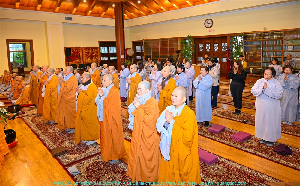 Vào lúc 09g30 sáng chủ nhật 04 tháng 01 năm 2026, chùa Đức Viên tọa lạc tại số 2420 McLaughlin Avenue, thành phố San Jose, tiểu bang California đã trang nghiêm tổ chức Lễ Khánh đản Đức Phật A Di Đà, vị Phật Giáo chủ cảnh giới Tây Phương Cực Lạc.