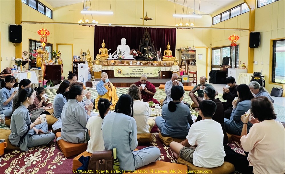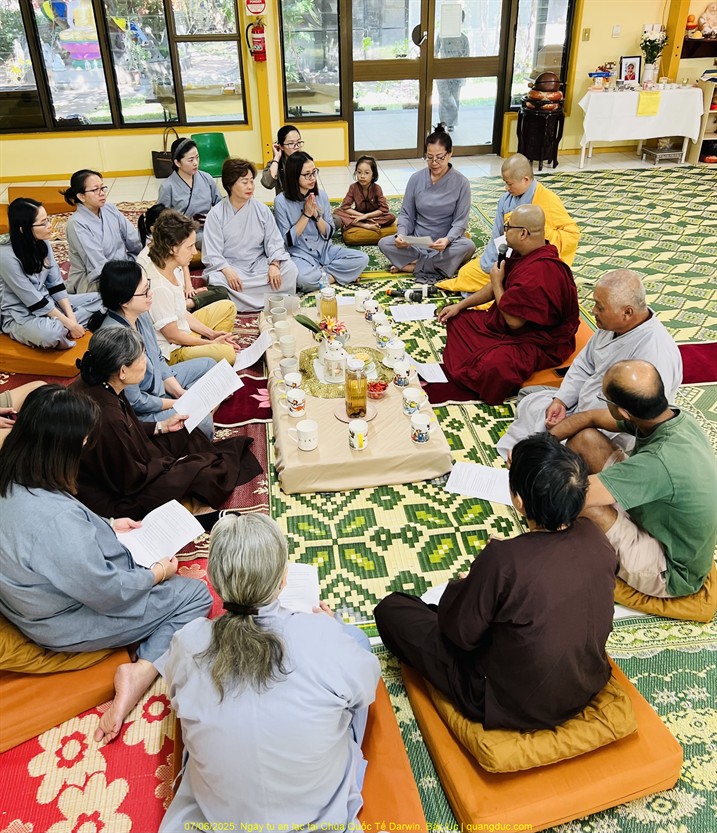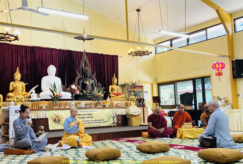 Sau 5 năm, kể từ Covid 2019, thêm bận chuyện gia đình, tôi mới trở lại khóa tu Âu Châu tâm trạng như người con đi xa trở về thăm gia đình. Với lòng rộn ràng hân hoan vui sướng, tôi bước vào khóa tu, gặp lại bạn bè, Thầy, Cô chắp tay chào nhau, nụ cười ai nấy rạng rỡ. Đây là khóa tu thứ 36 nhưng là khóa thứ 4 tại Neuss. Neuss không xa lạ gì với tôi, vì ba lần qua tôi từng tham dự tại đây. Gặp lại bạn cũ cũng nhiều mà làm quen bạn mới cũng lắm. Cái cảnh ăn chay nằm đất (mỗi người có một nệm hơi) phân chia cho trên mười người trong một lớp học, nhưng cùng là con Phật và có lòng cầu đạo nên sinh hoạt thế nào cũng hoan hỉ chấp nhận, dễ cảm thông và dễ xích lại gần nhau. Các khóa tu bên Úc hay Mỹ, Phật tử ngủ phòng khách sạn, nệm chăn tươm tất đàng hoàng, tụng kinh, học đạo...tất tất đều có ghế ngồi. Không ngồi dưới sàn nhà như Phật Tử Âu Châu. Đây cũng là phước phần của mỗi nước, mỗi người, không kêu ca, than phiền gì được.