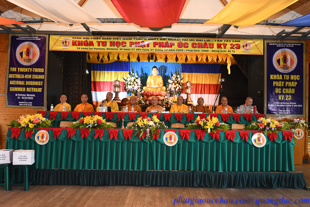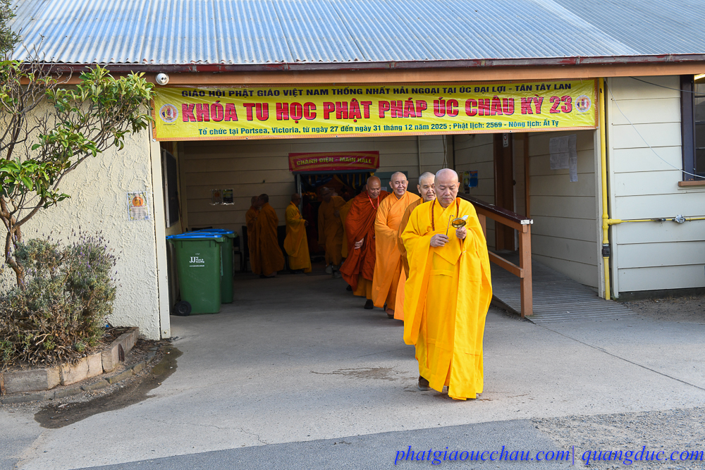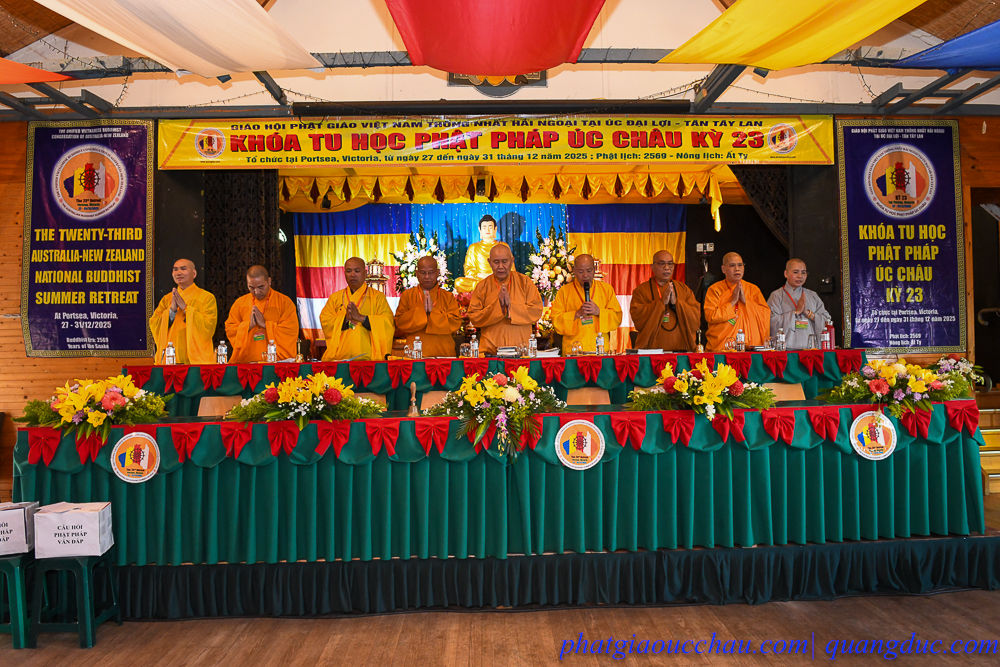 Buổi sáng: Công phu & Phật pháp vấn đáp tại Khóa Tu HọcPPUC kỳ 23 tại Portsea