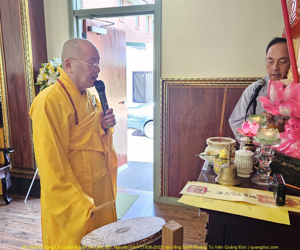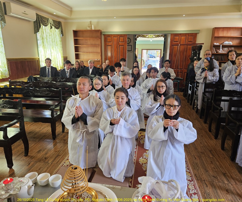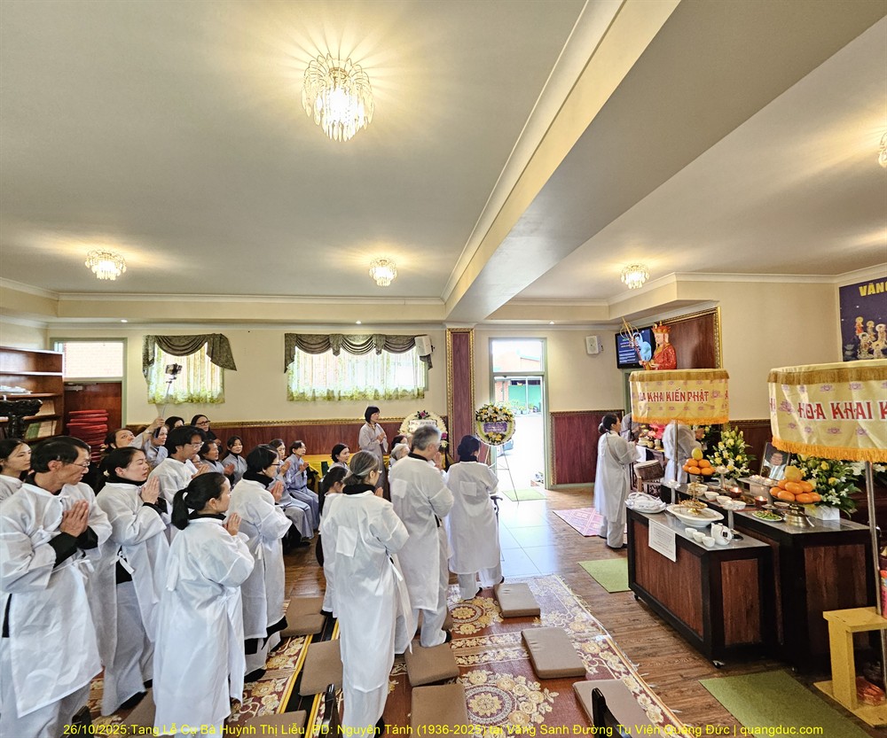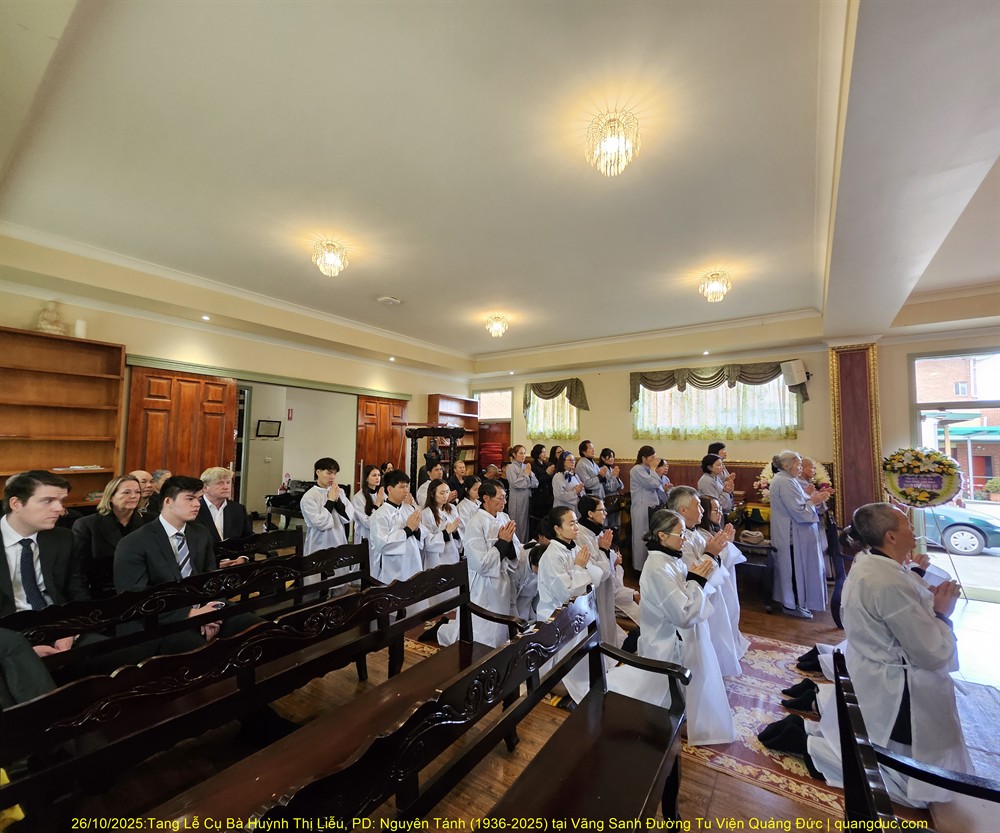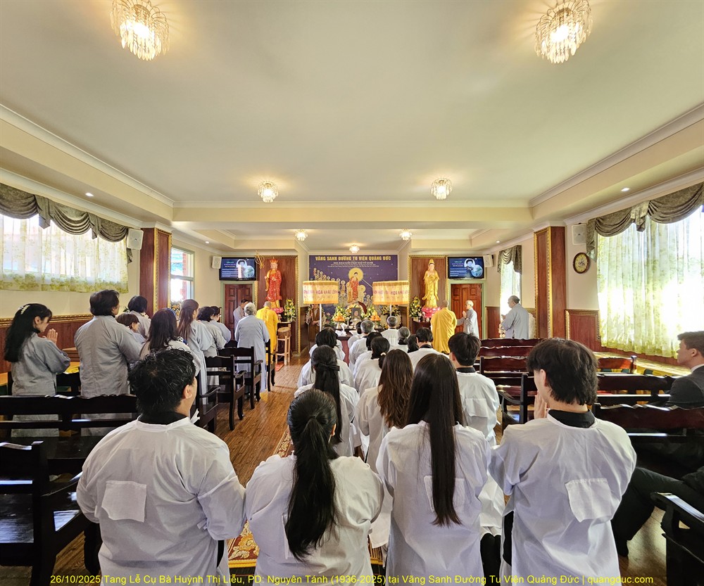 Hôm nay Chủ Nhật, ngày 04/01/2026 (nhằm 16/10 năm Ất Tỵ), vào lúc 10:30am, Tu Viện Quảng Đức đã trang nghiêm cử hành Lễ Kỳ Siêu hằng tuần, cầu nguyện cho Đại Tường Cụ Ông Chơn Lâm Trịnh Nhàn (1931–2024) và Chung Thất Phật tử Diệu Đức Lê Ngọc Hạnh.